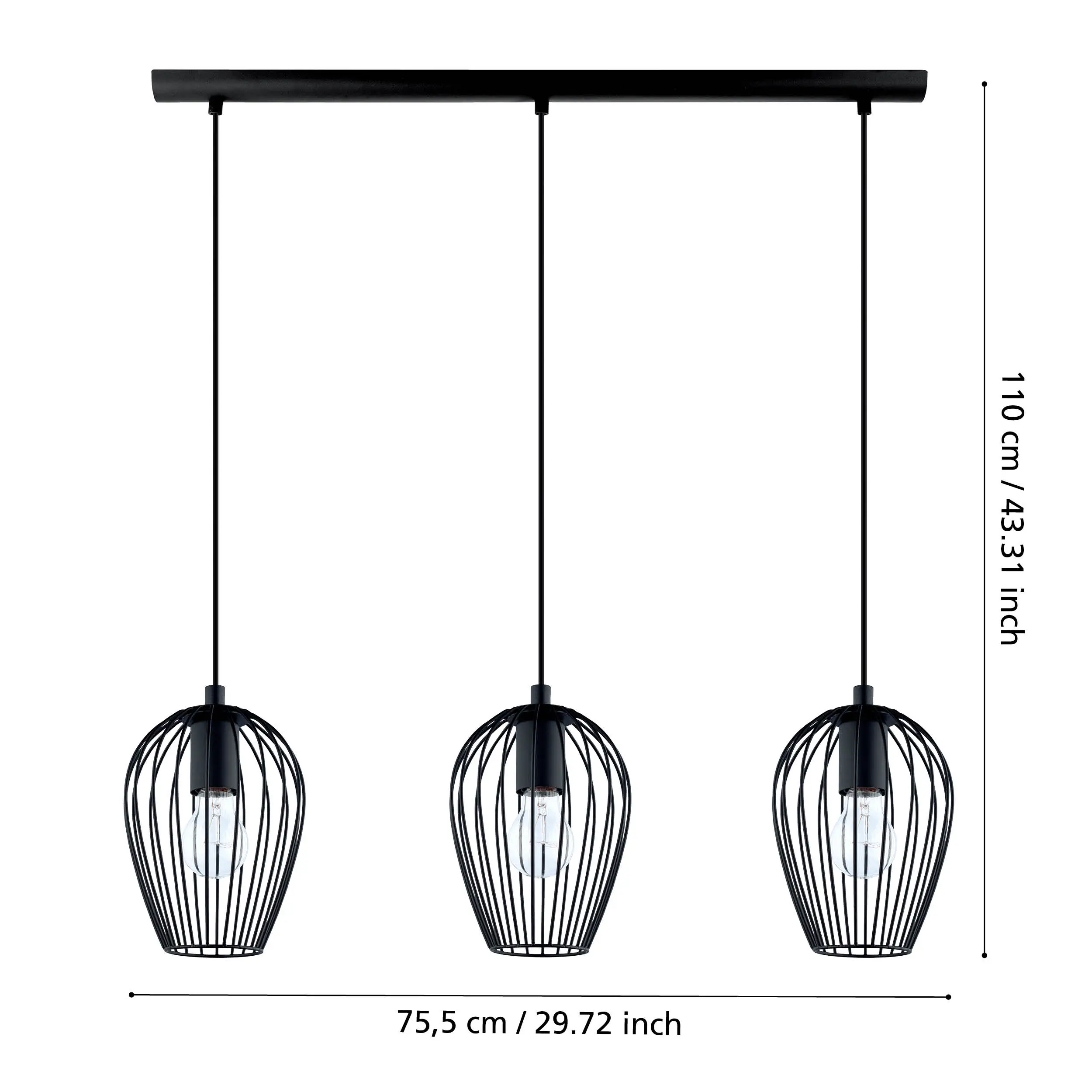 NEWTOWN Pendant Light – Black Steel Mesh Shade & Matte Black Suspension – E27 Socket – 59″ Adjustable Cord – Modern Industrial Accent Lighting – 2‑Year Warranty