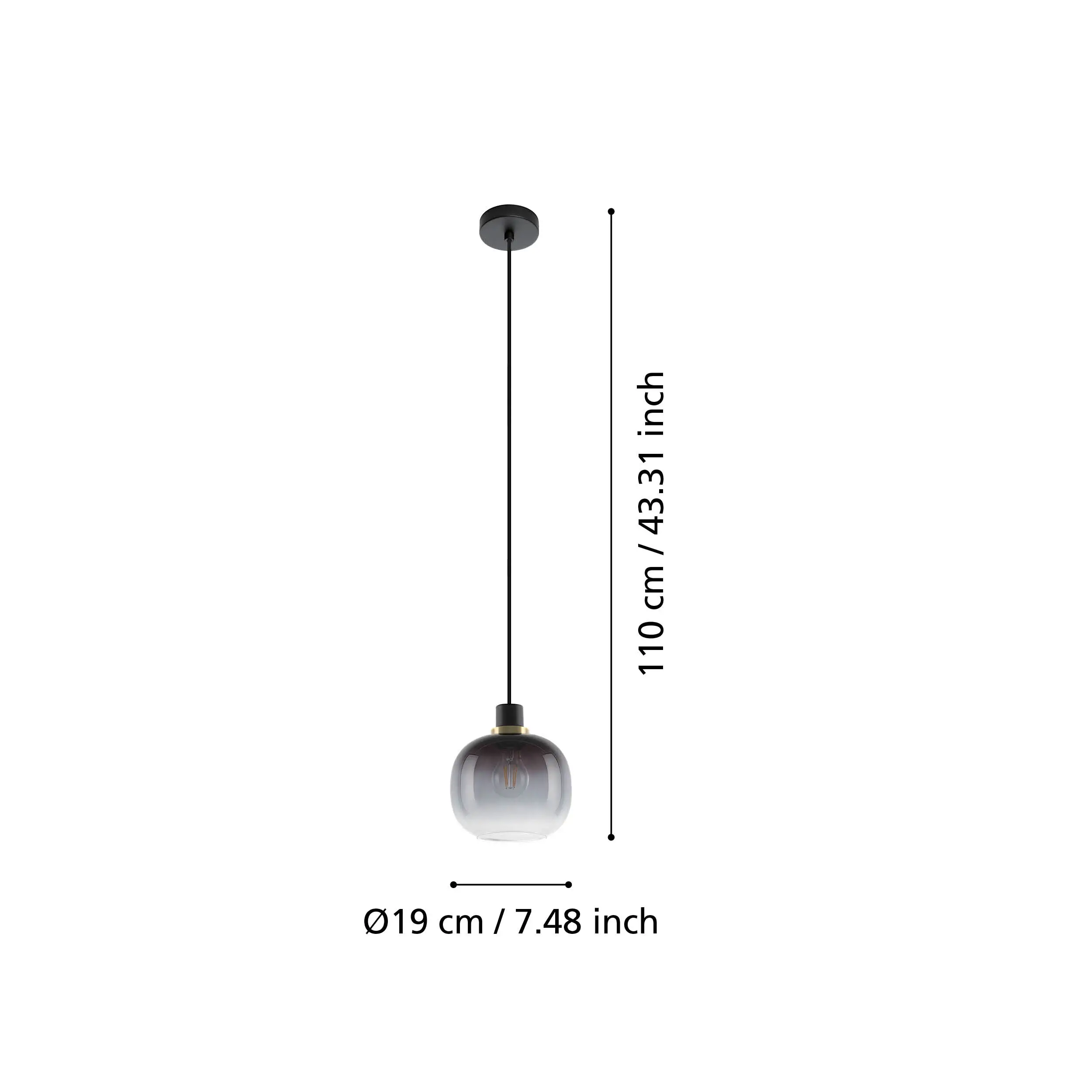 Elegant Gradient Glass Shade: Features a spherical glass lampshade with a captivating gradient transitioning from black to gray to clear, creating a warm and inviting ambiance.