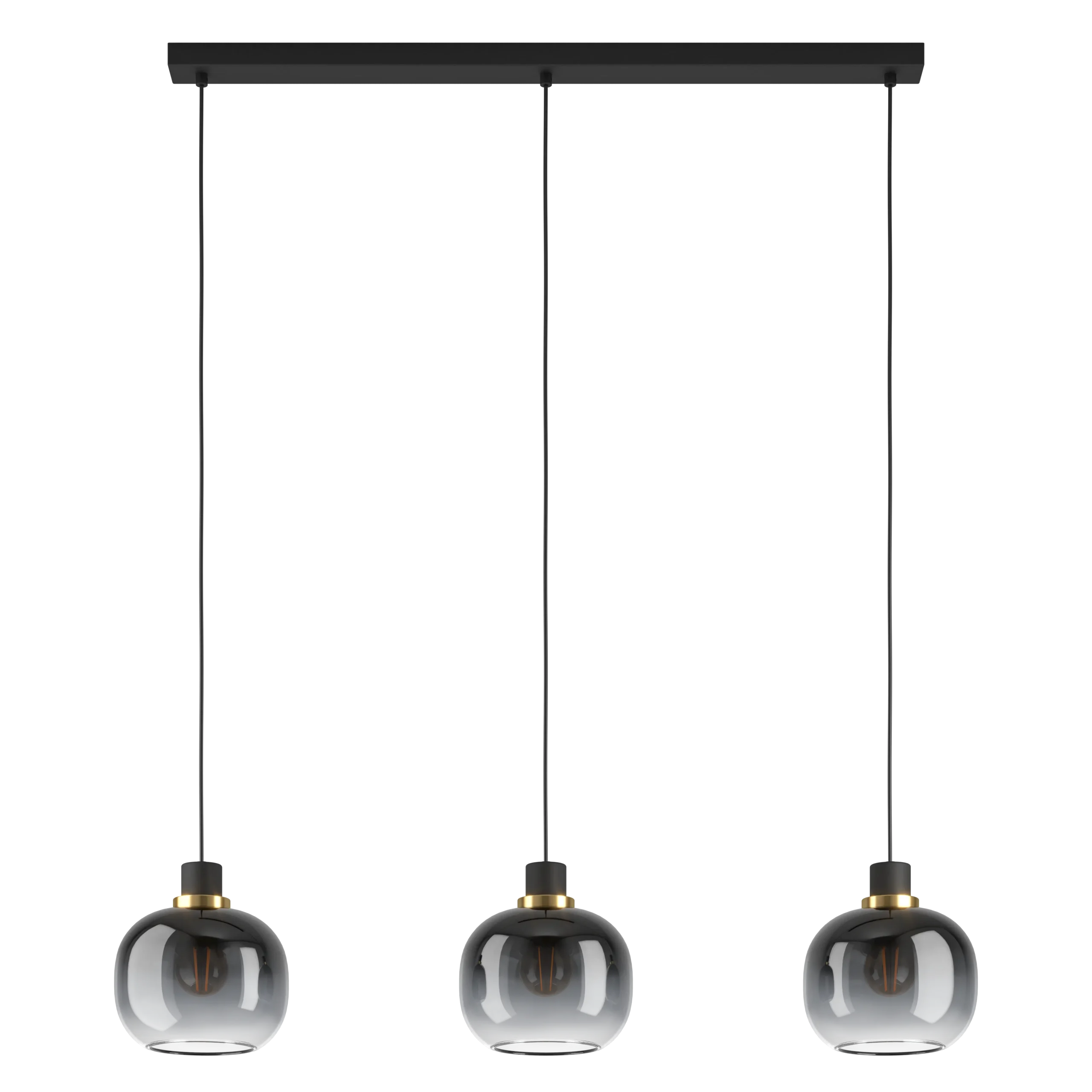 Contemporary Design: Features a sleek black and brushed brass steel frame complemented by vaporized black-grey-transparent glass shades, offering a modern aesthetic suitable for various interiors.