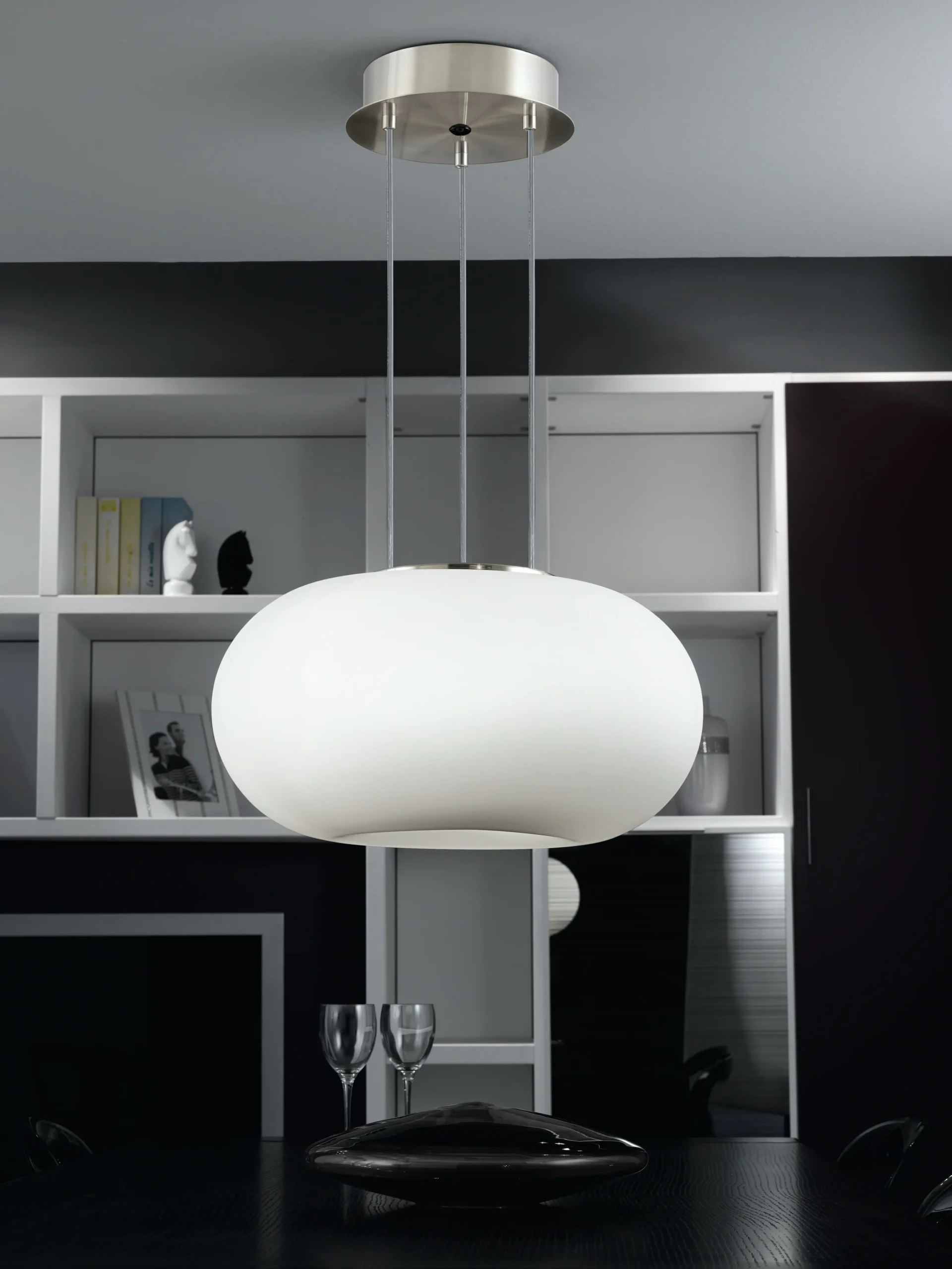 OPTICA 86813 Pendant Lamp – Satin Nickel Finish, Matte Opal Glass, E27 Socket, Modern Hanging Ceiling Fixture