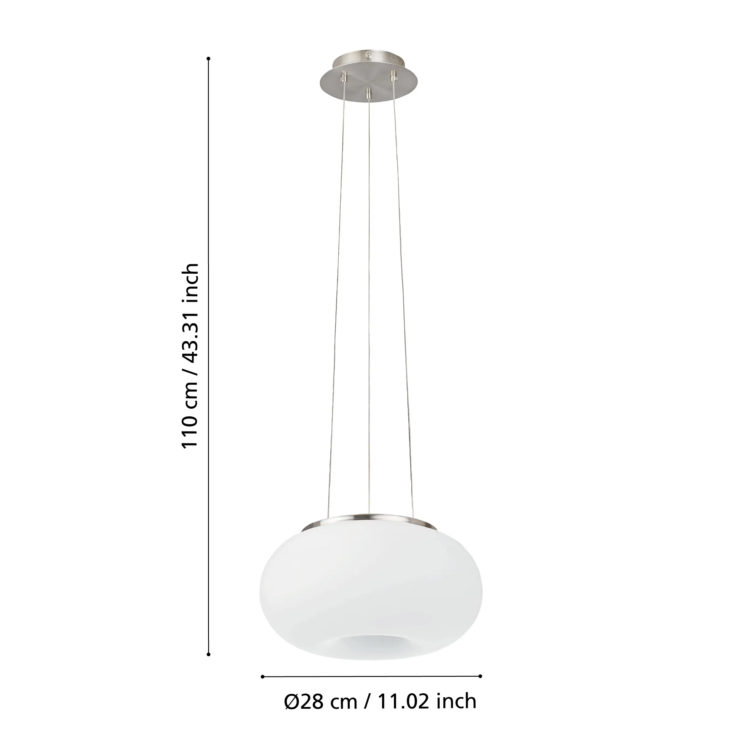 Dimensions & weight – Shade diameter: 28cm (11″); maximum height (including cables): 110cm (43″); canopy: Ø9.7cm (3.8″), weight: approx. 1.8kg .