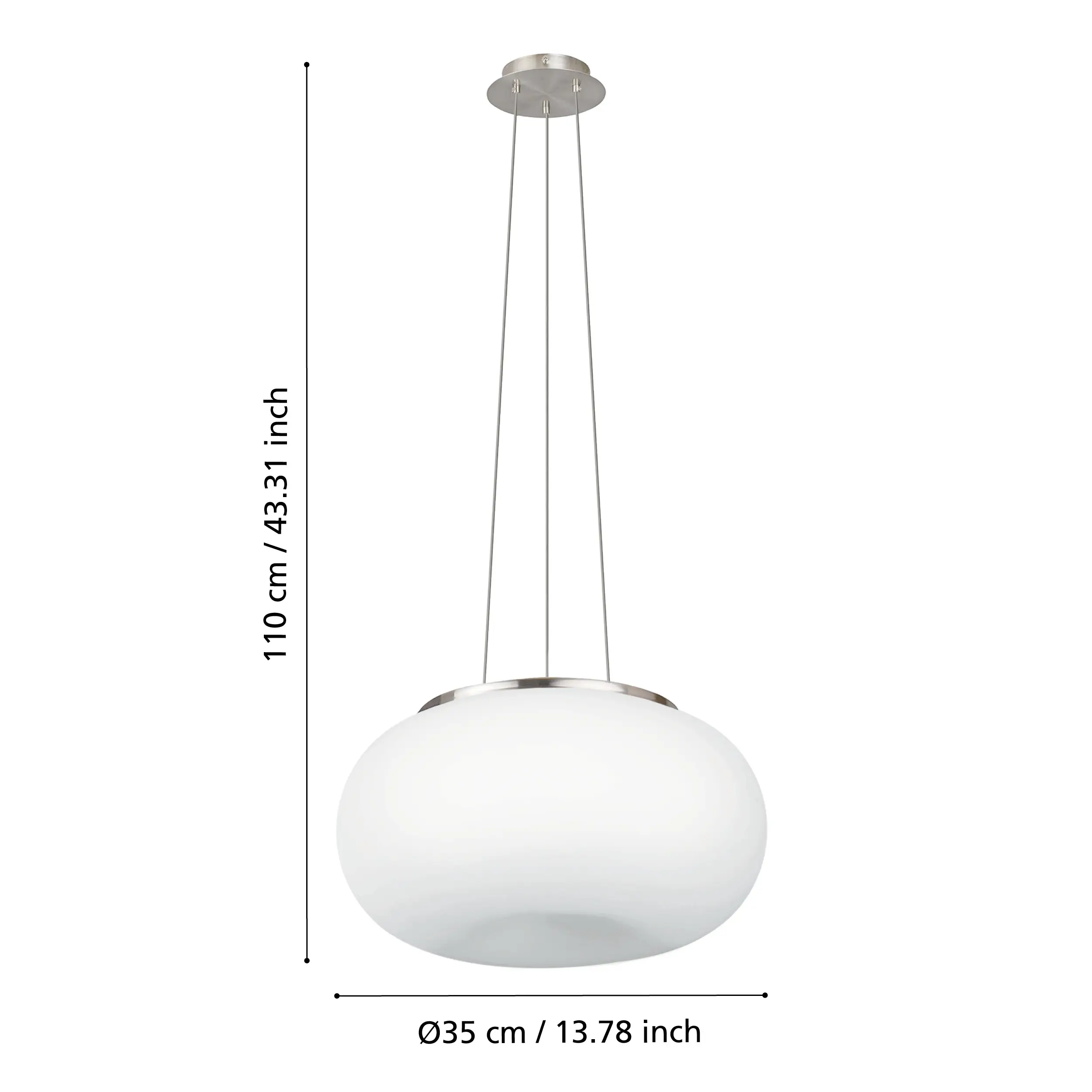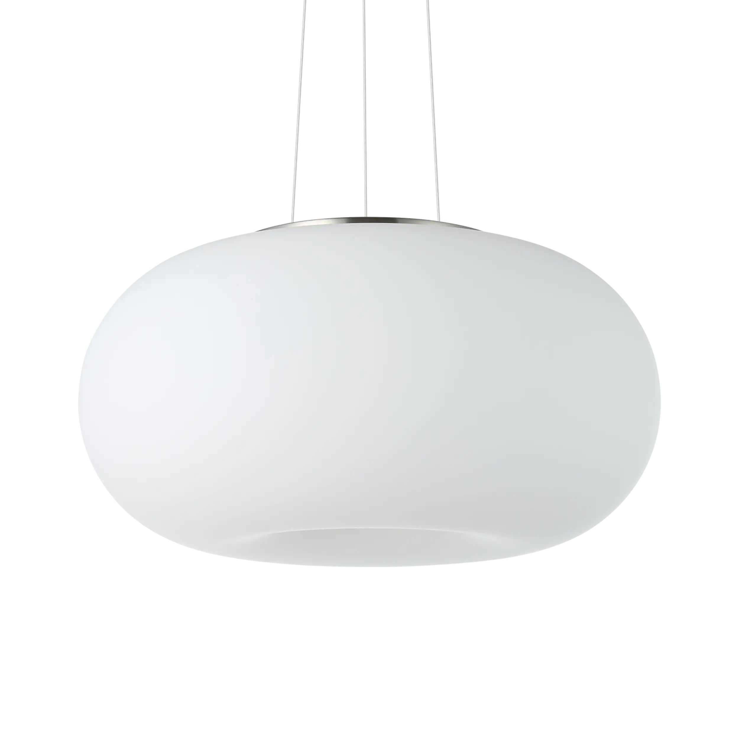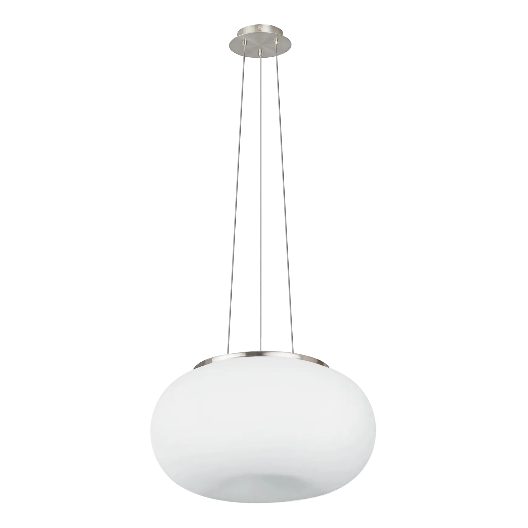 Modern OPTICA pendant light with satin nickel steel finish and matte opal glass shade, featuring an E27 socket for versatile indoor lighting.