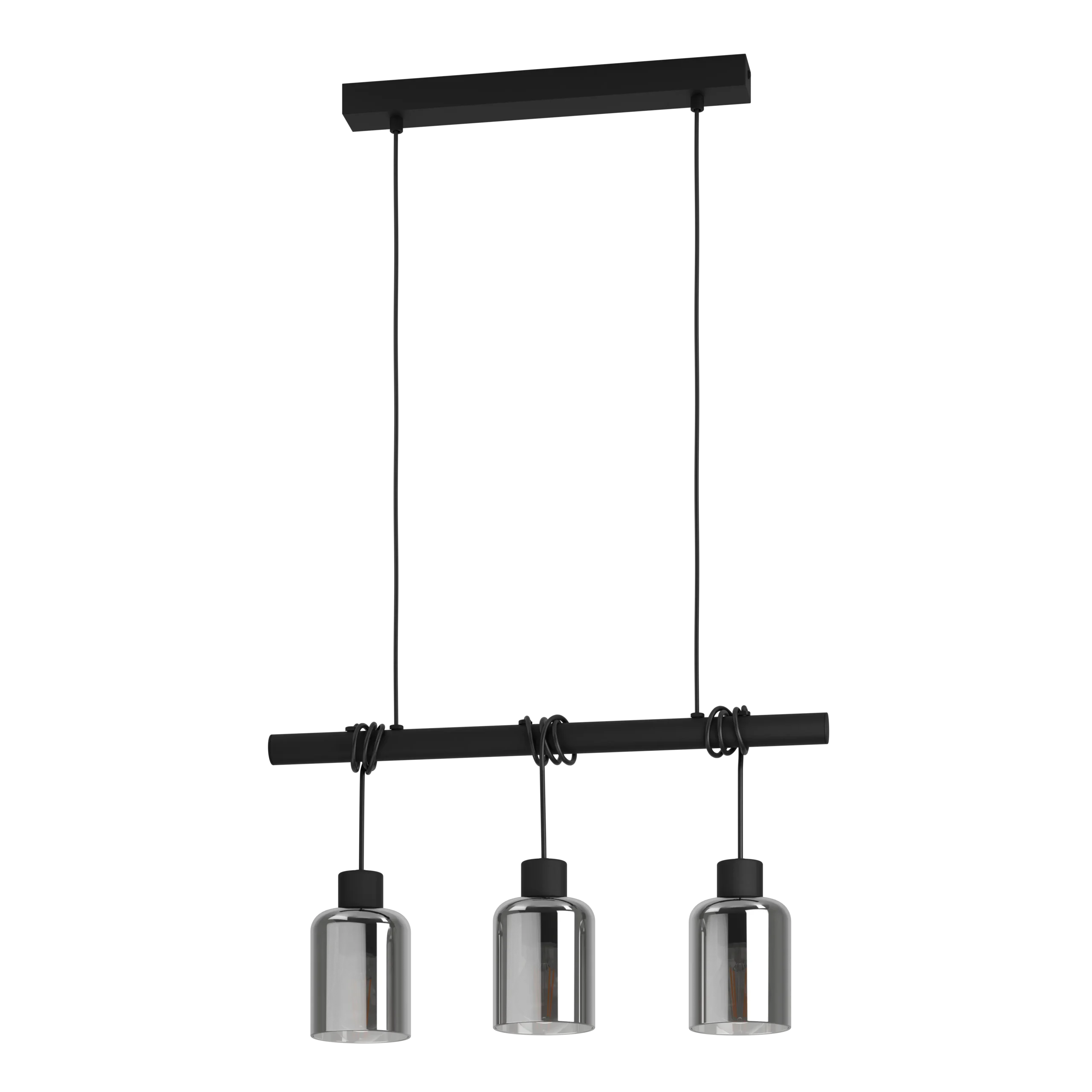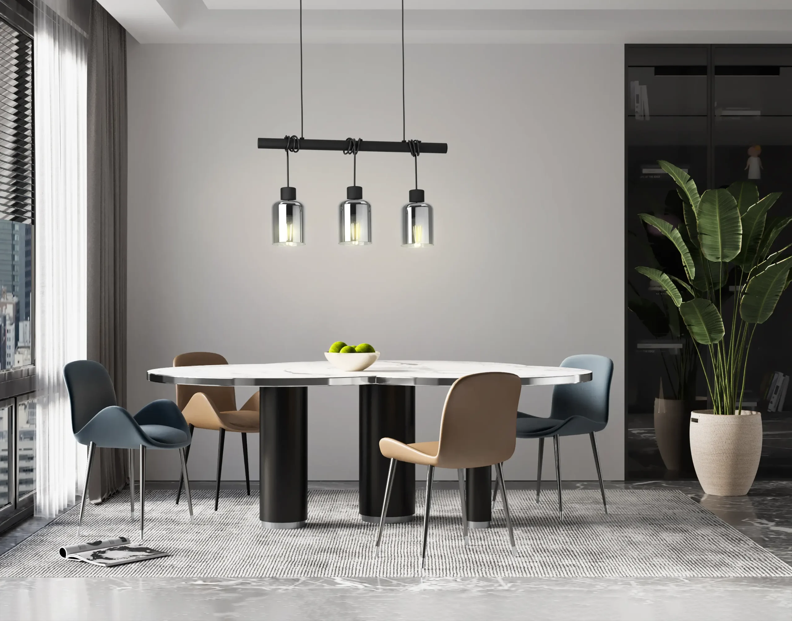 Modern Industrial Design: Features a sleek black steel frame and black-transparent vaporized glass shade—adds a bold statement to dining, kitchen, or loft interiors.