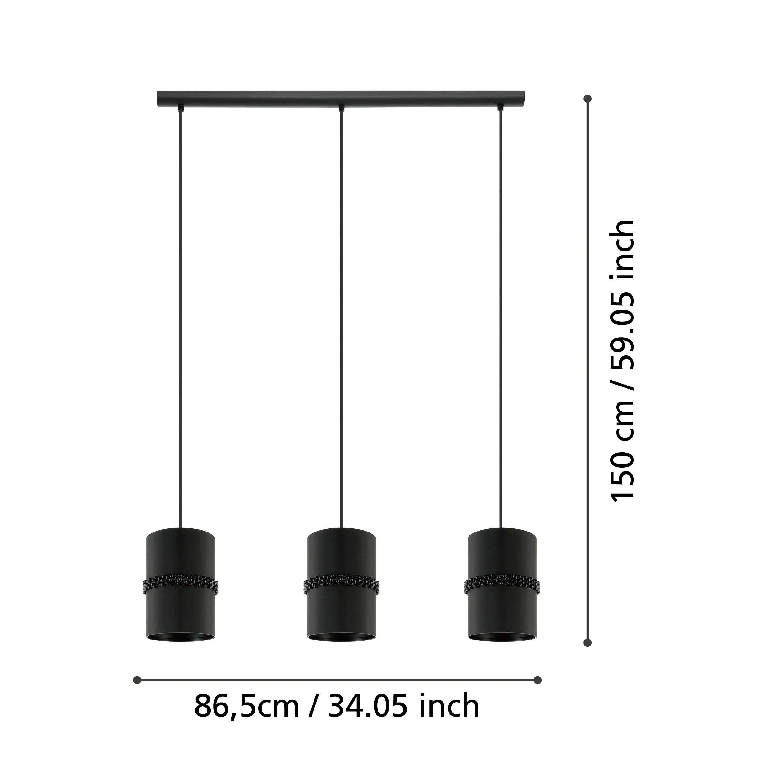 Adjustable Suspension – Three independent cables extend up to 1.5m with an 850mm bar span, perfect for aligning lights over islands, dining tables, or counters .