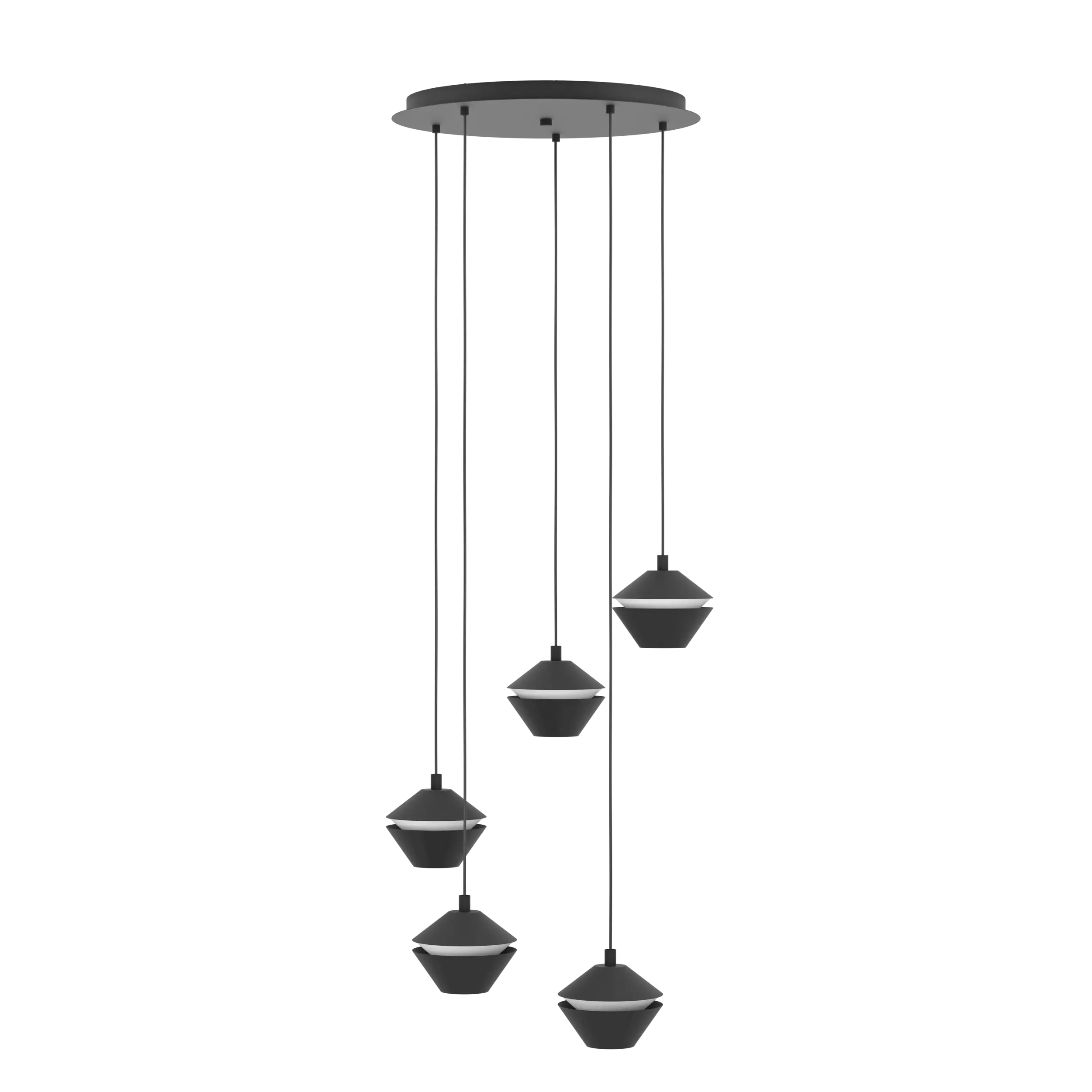 Modern PERPIGO pendant light in sleek black steel with warm white LED compatibility. Ideal for contemporary interiors, providing stylish and ambient lighting.
