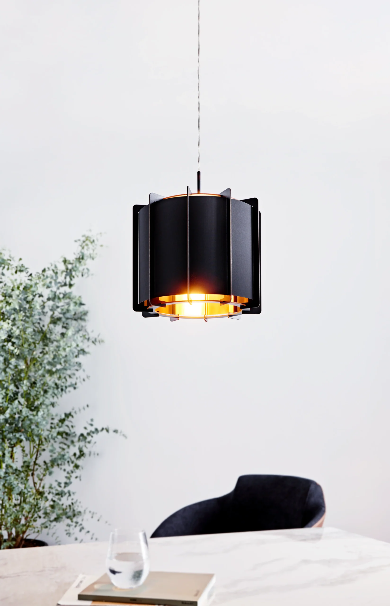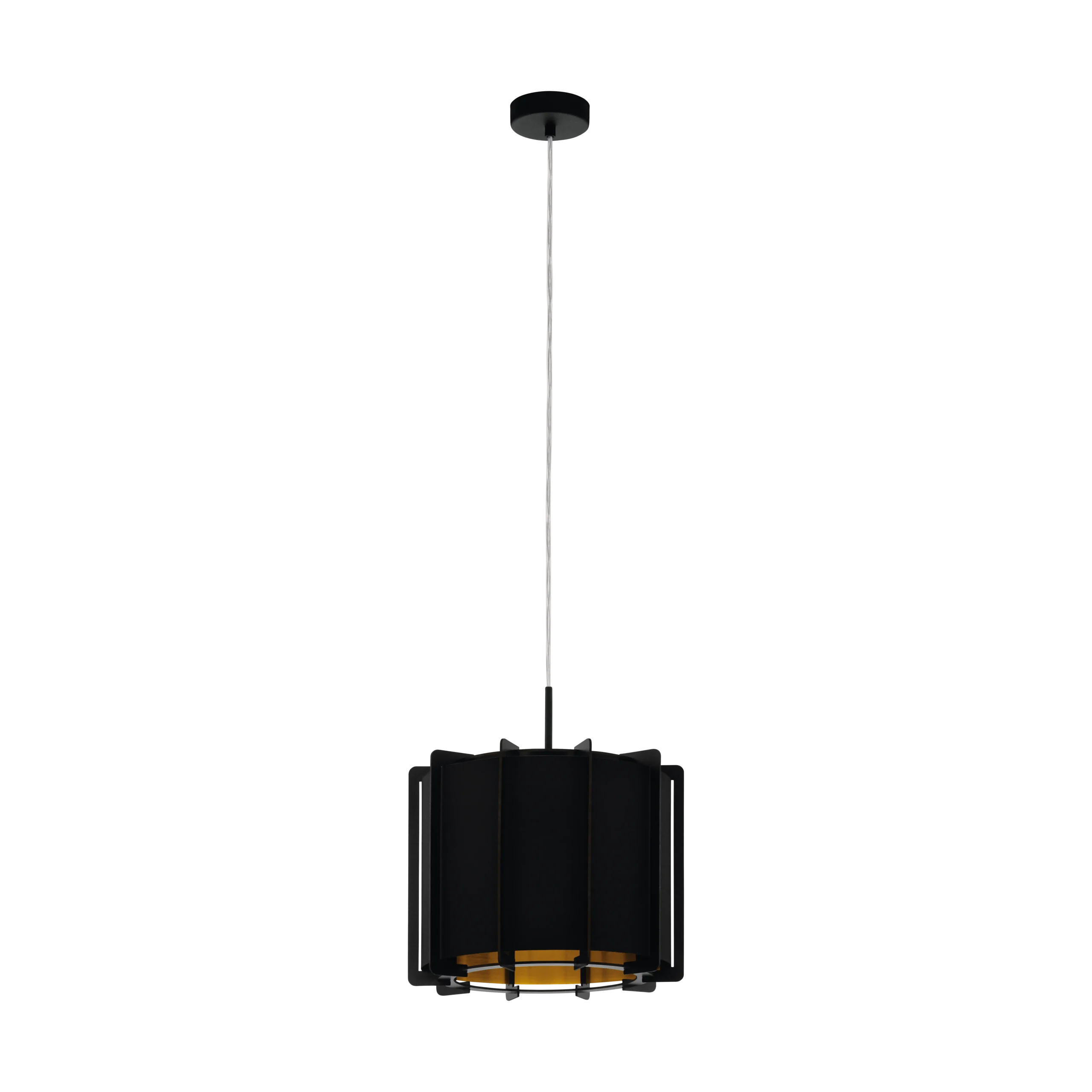Elegant Wood & Metal Design – Features a sleek black steel canopy (33cm Ø) and a cylindrical wooden/foil shade in black with a warm gold inner finish, adding a stylish and natural accent to any modern interior.