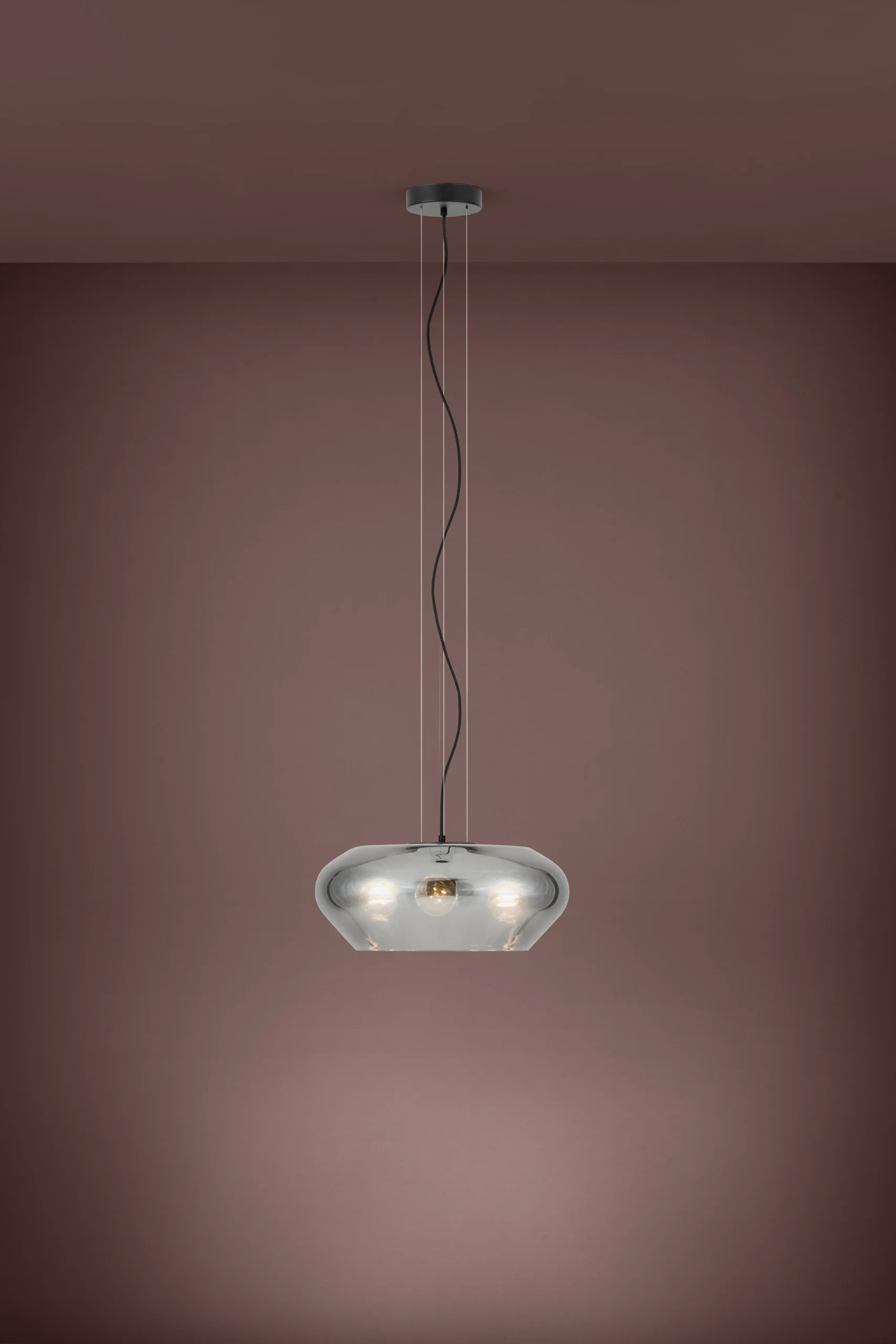PRIORAT 1‑Lamp Pendant – Black Steel with Smoked Vaporized Glass Dome – Adjustable 1.5m Suspension, E27 Base LED Compatible – Modern Indoor Ceiling Fixture