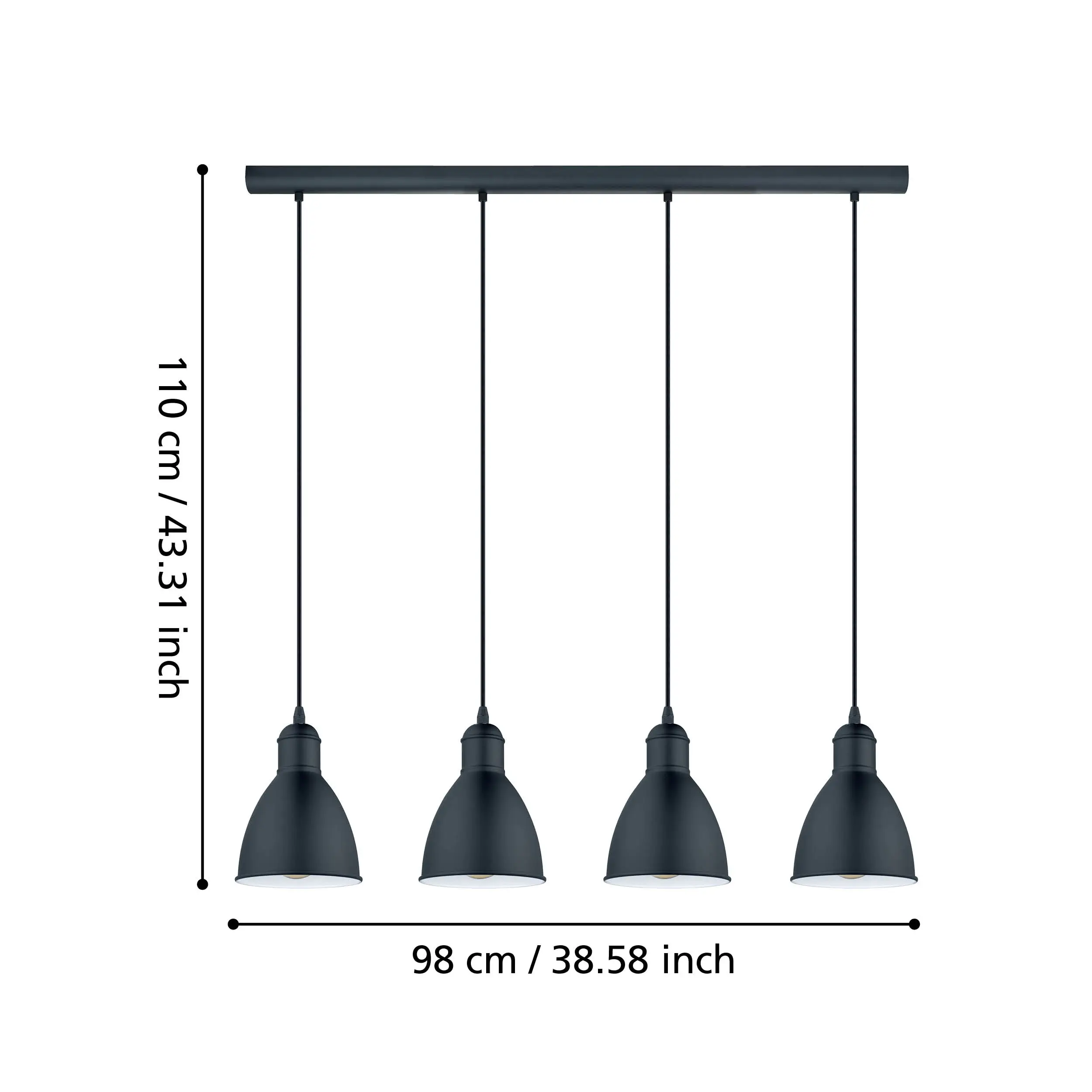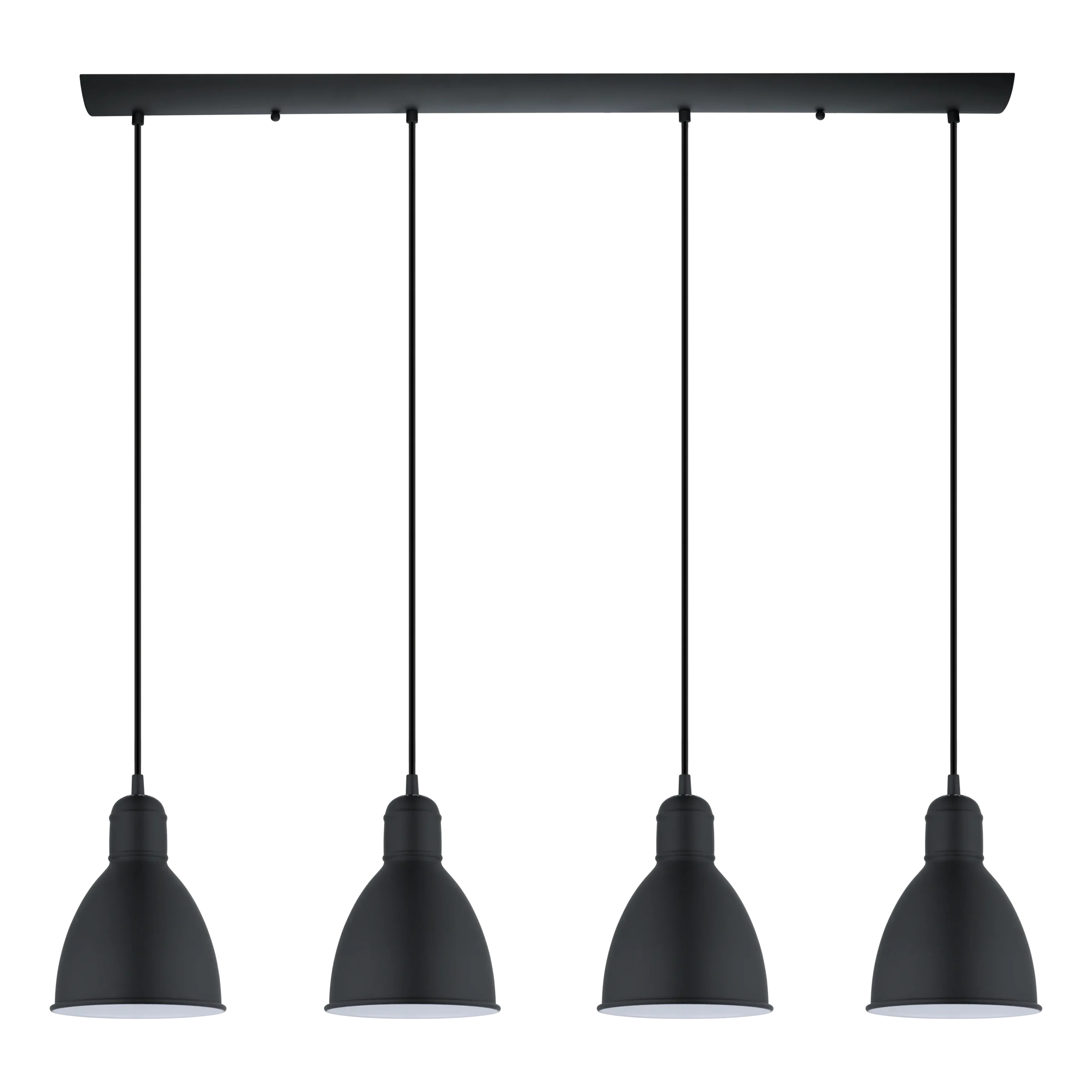 PRODDY 49466 4‑Light Linear Pendant, E27 Sockets, Black Steel Candlestick Shades – 975mm Ceiling Bar, 1.1m Drop, Vintage Industrial Design