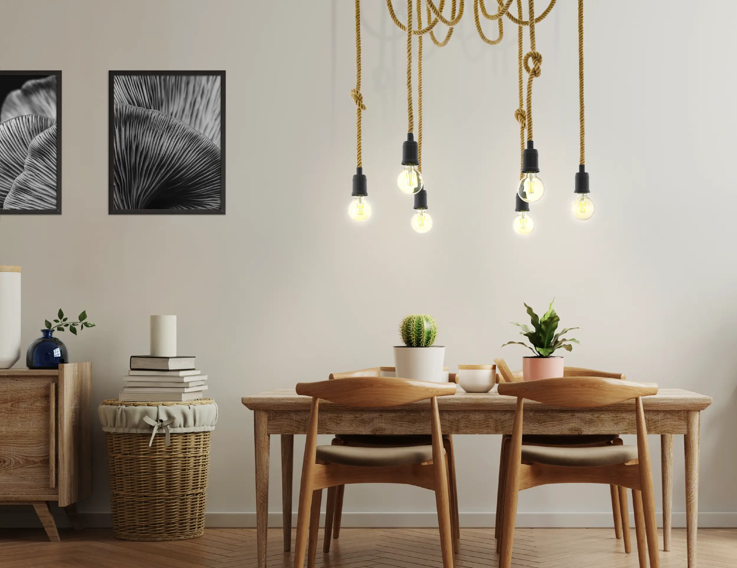 Versatile lighting statement – perfect over dining tables, kitchen islands, or open‑plan areas; rope accents add warmth to any contemporary, boho, or industrial space .