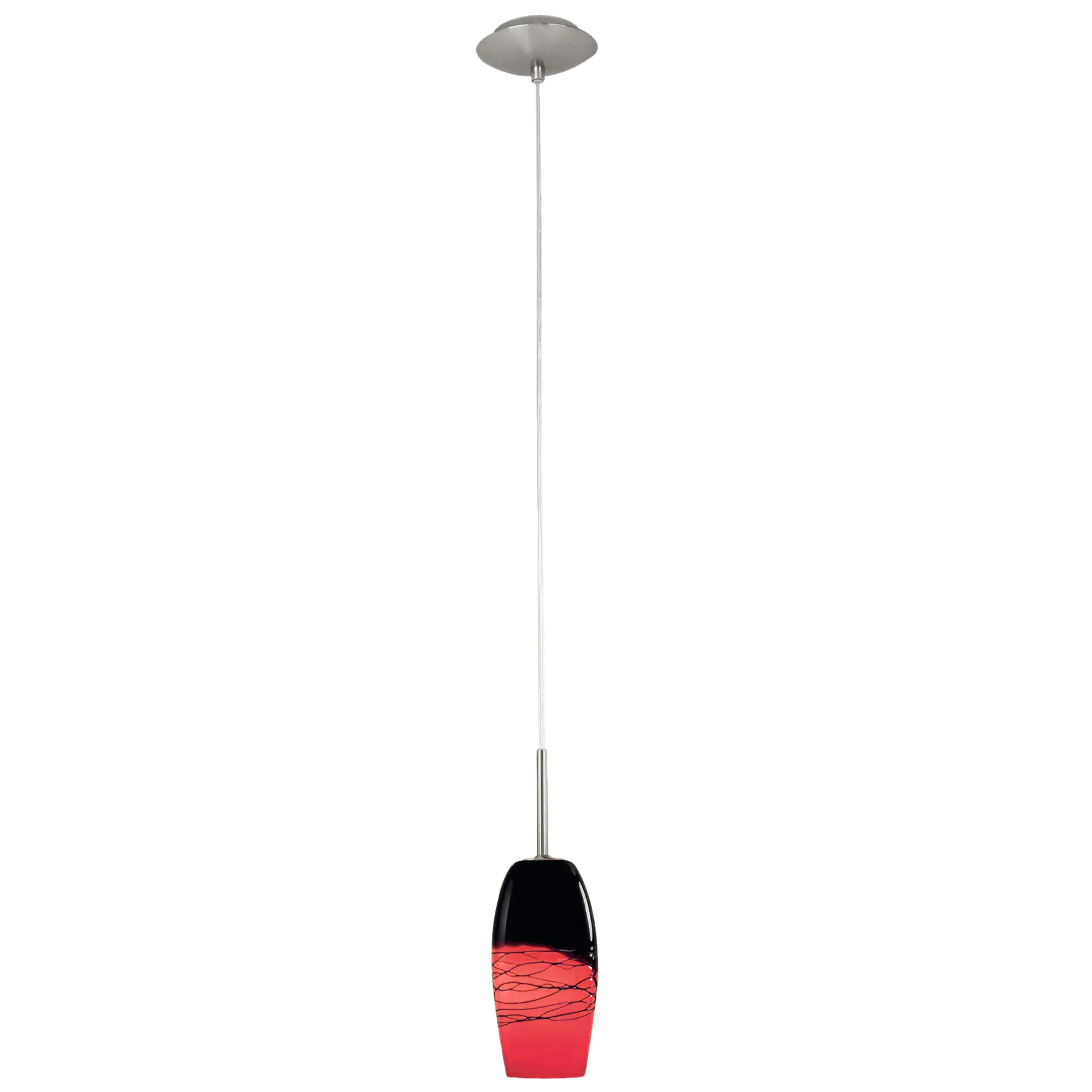 The 87802 RIBERA ROSSO pendant light combines a satin nickel steel enclosure with a handcrafted glass shade featuring an elegant black and red finish. It measures 1100 mm in height and 90 mm in diameter, weighing 0.91 kg. This indoor light fixture supports one 40W AGL illuminant with an E14 lamp socket. Designed for indoor use with an IP20 protection rating, the RIBERA ROSSO delivers warm, focused lighting with a modern aesthetic, perfect for enhancing contemporary interior spaces.