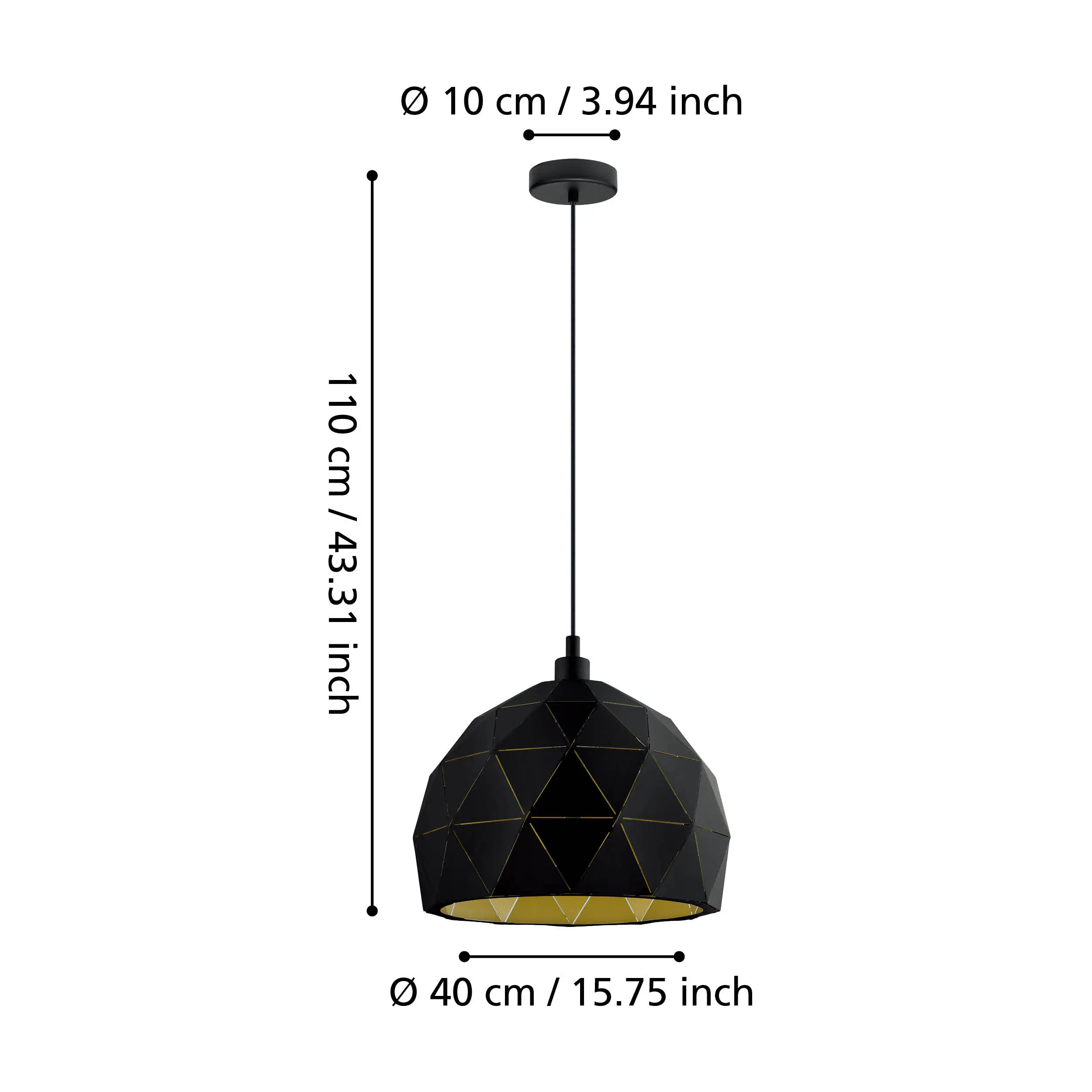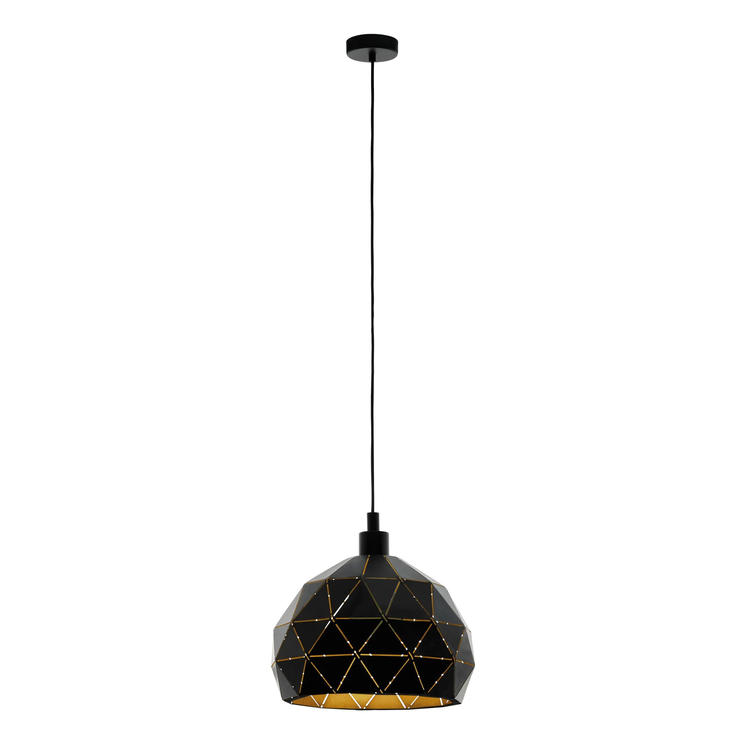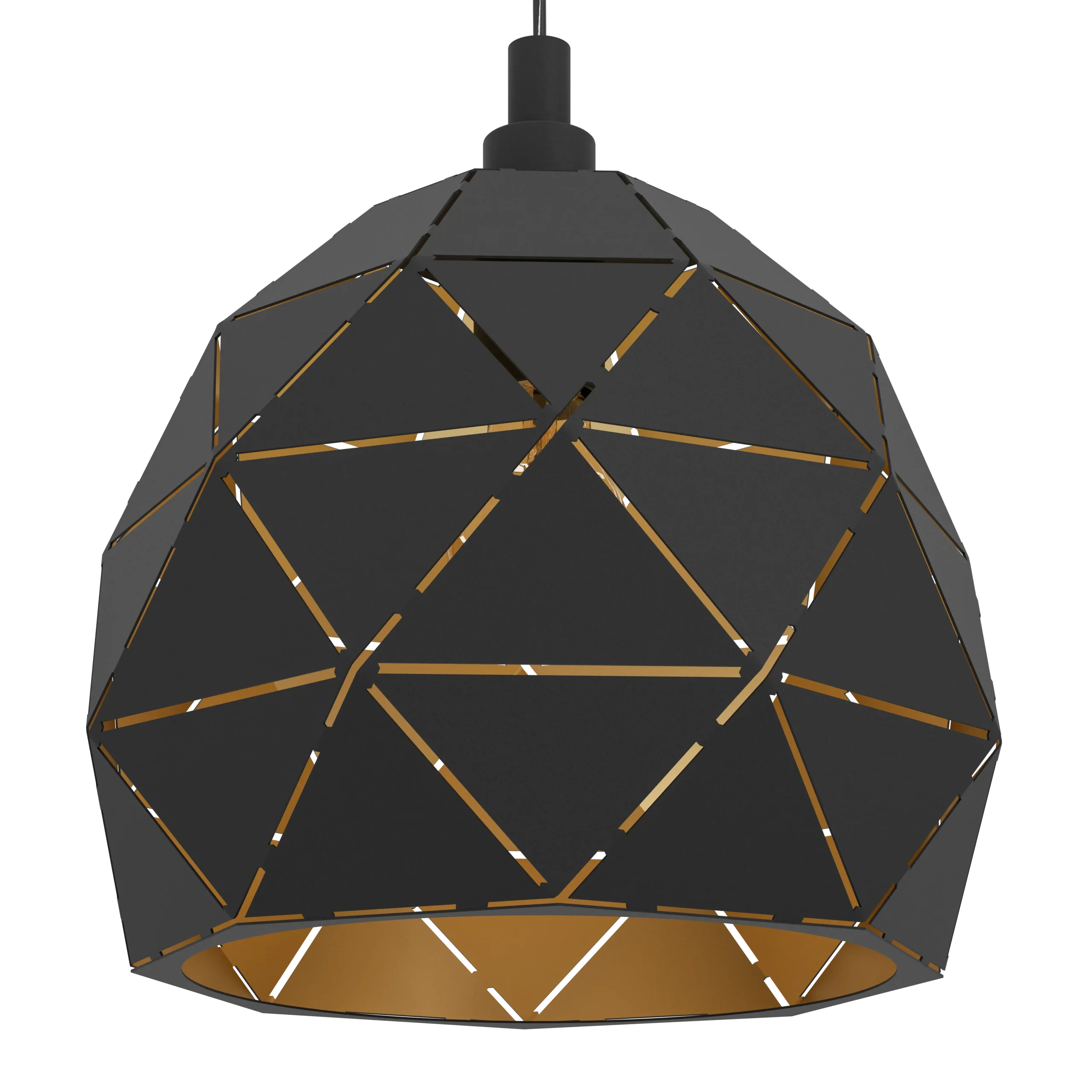 Striking Black & Gold Design – The 40cm diameter black steel lampshade features striking triangular cut-outs that reveal a warm gold interior, casting dynamic light and shadows to elevate any modern or Scandinavian décor.