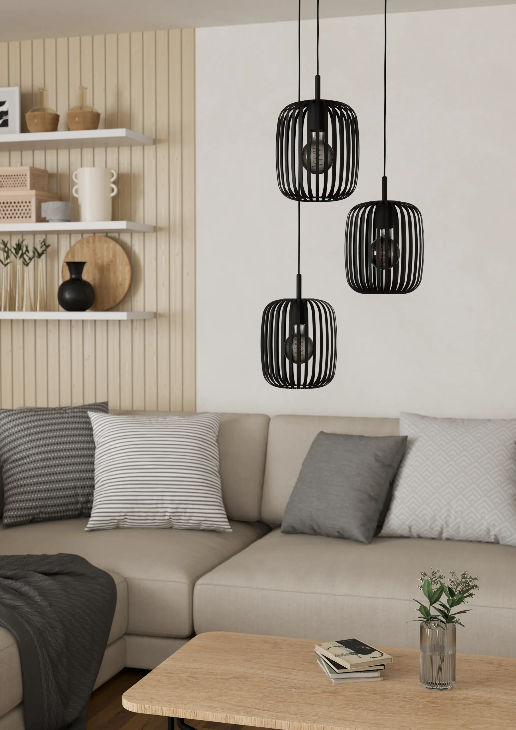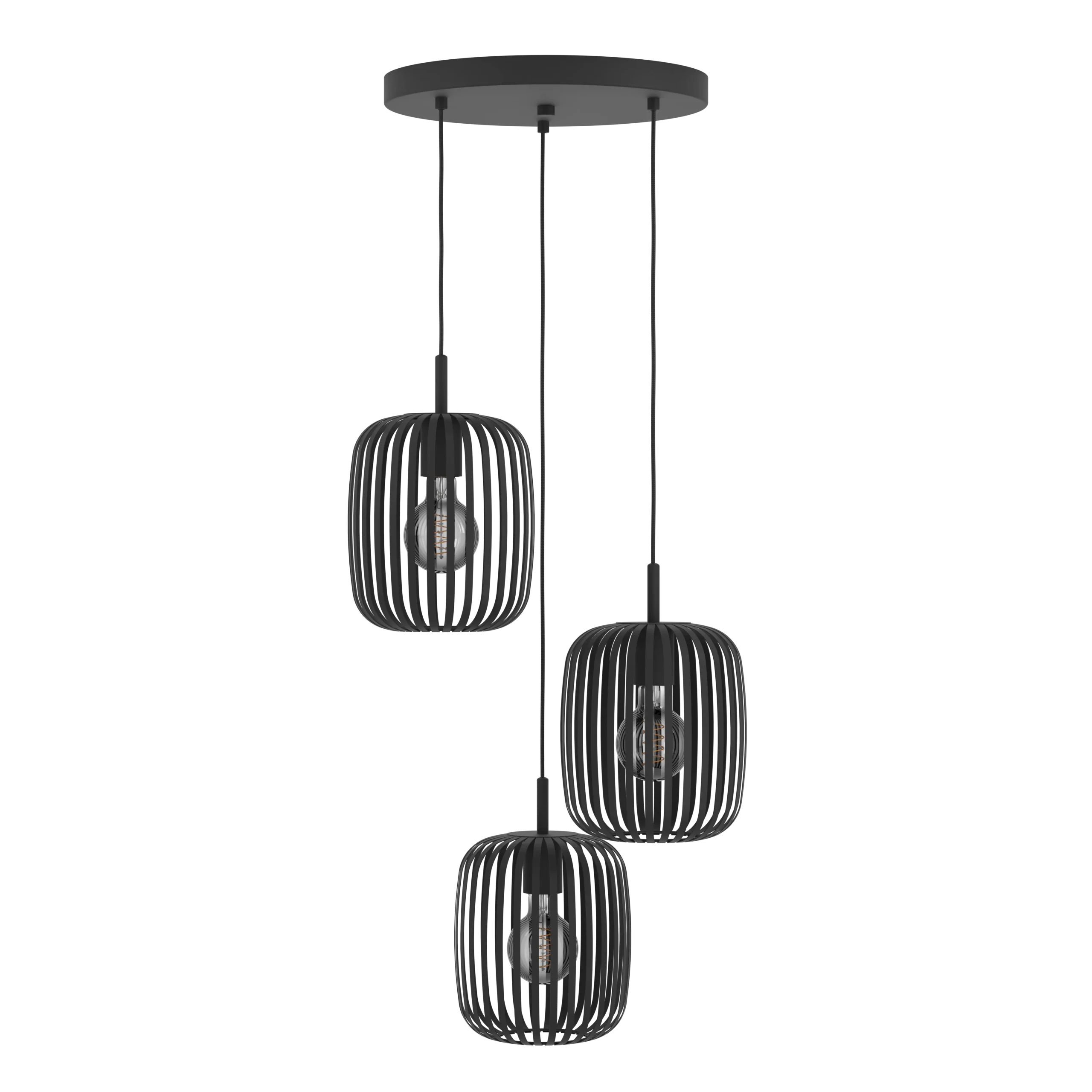 Eye-catching triple-cage design – Features three oval-shaped shades made from black metal strips that cast dramatic Lamp and shadow patterns, lending an industrial-chic touch to any space .