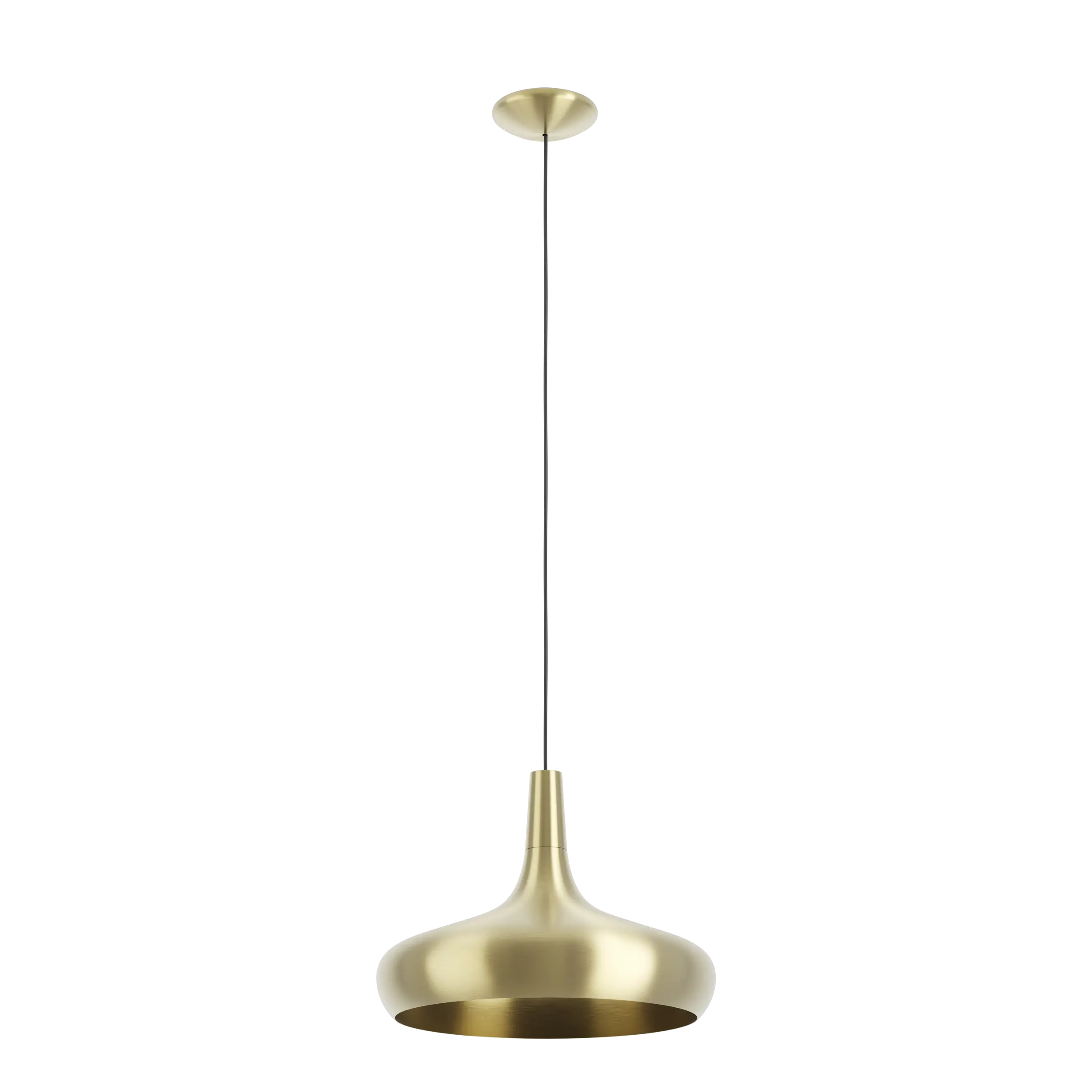 Statement-style EGLO SABINAR pendant light crafted from brushed brass–finished steel, featuring a large diameter design for bold and elegant interior lighting.