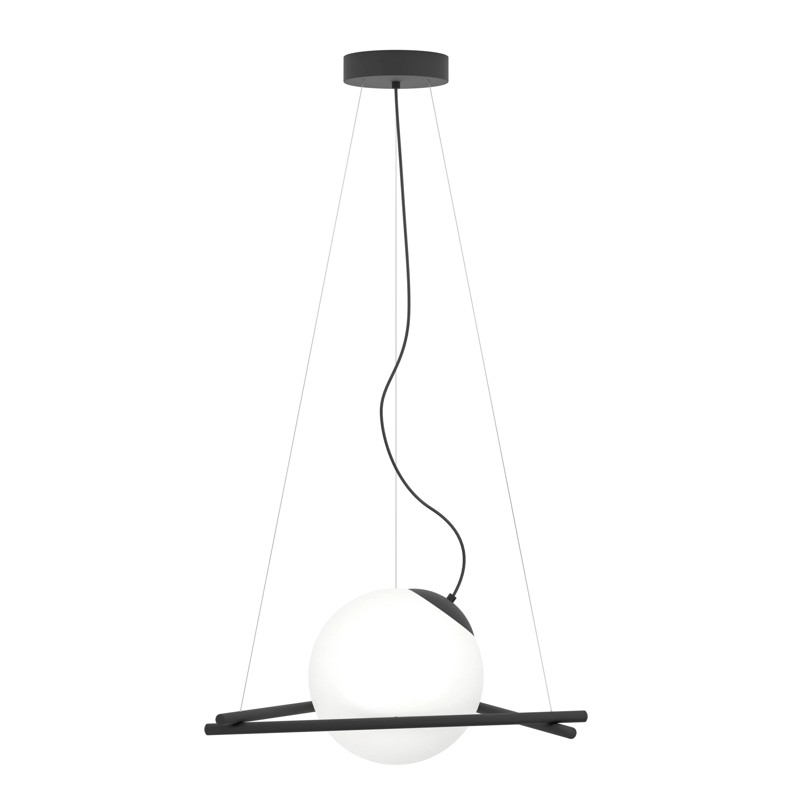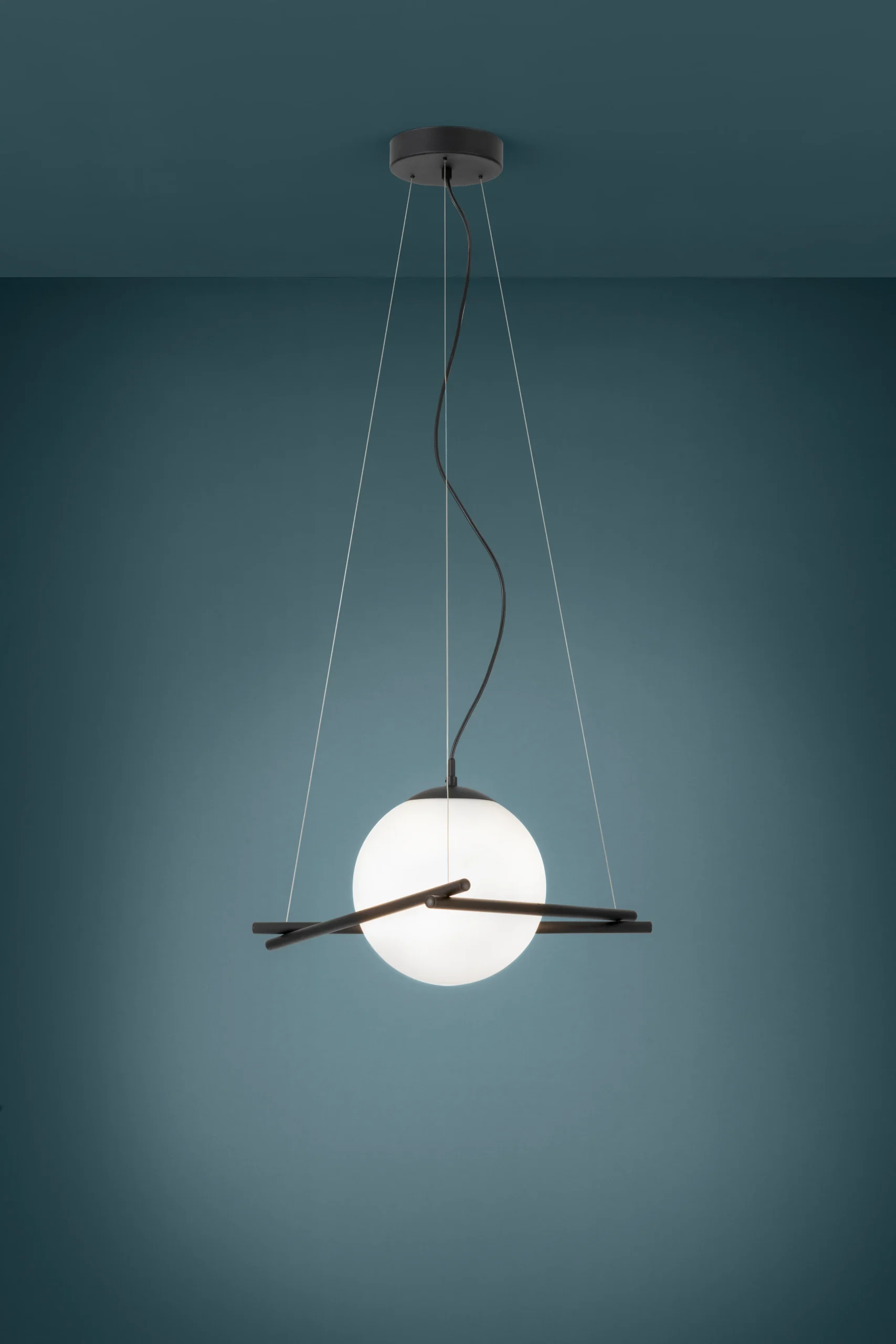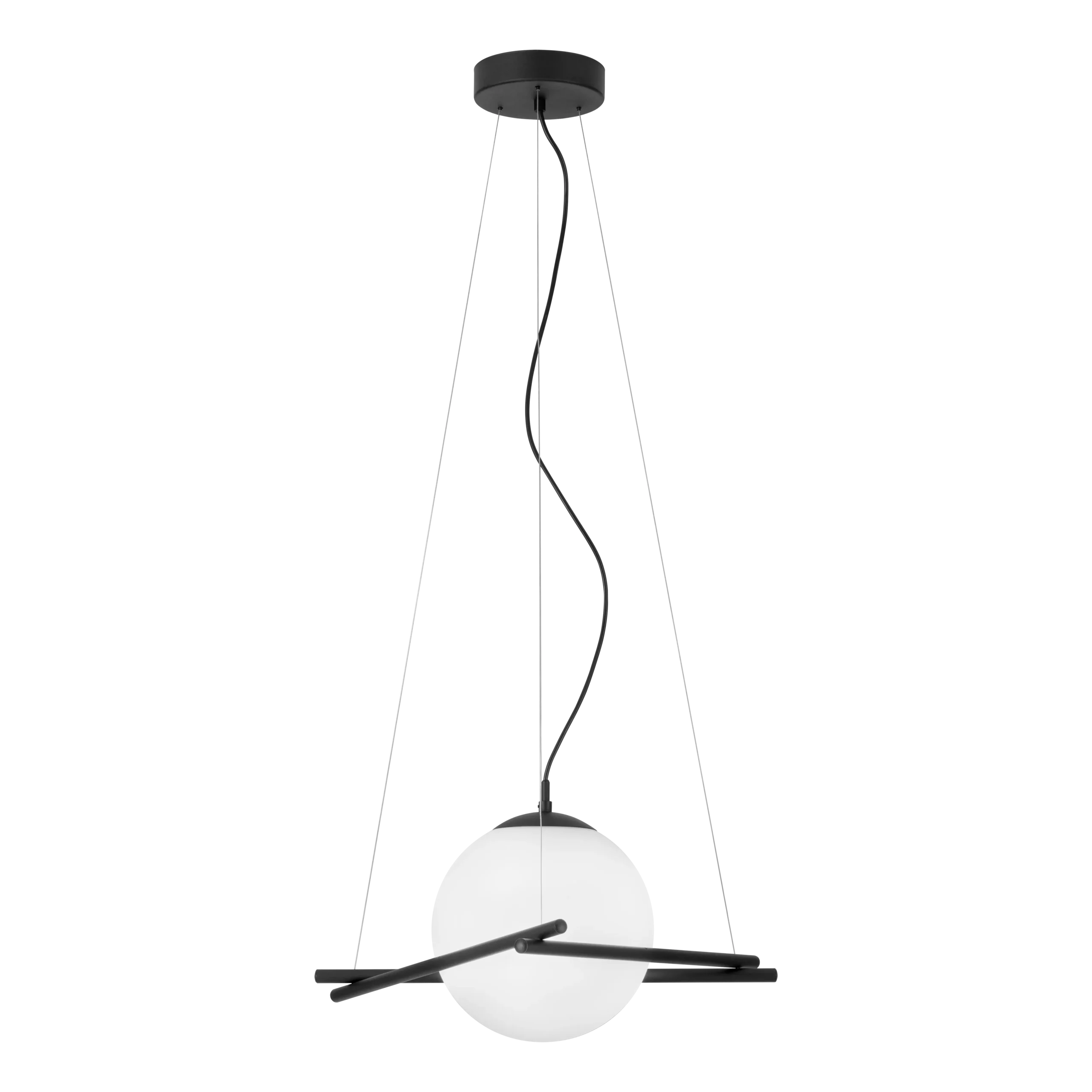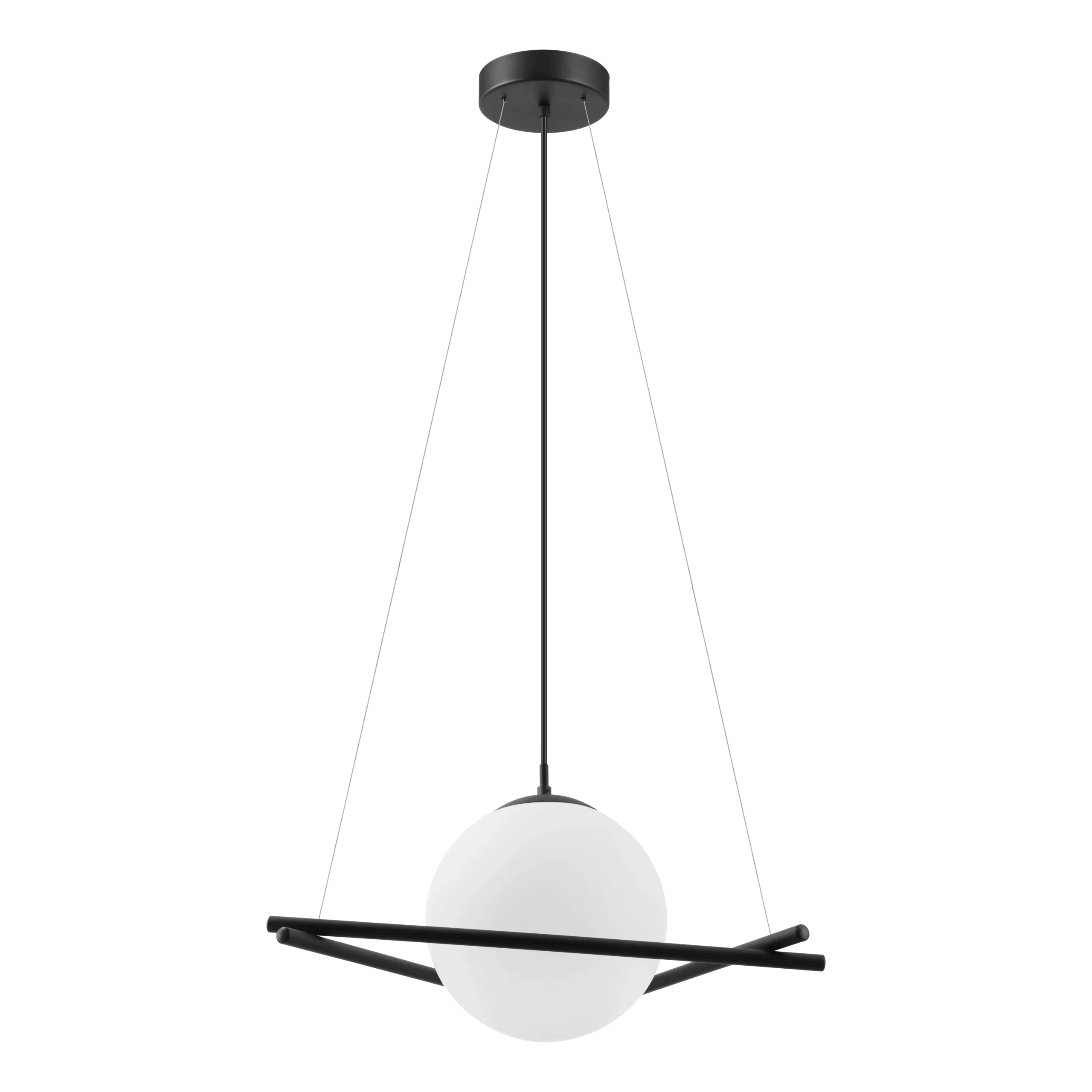 Contemporary Matte-Opal Shade: Features a round matte-opal glass globe encased within an elegant black steel frame, offering a soft, ambient glow that complements modern interiors.
