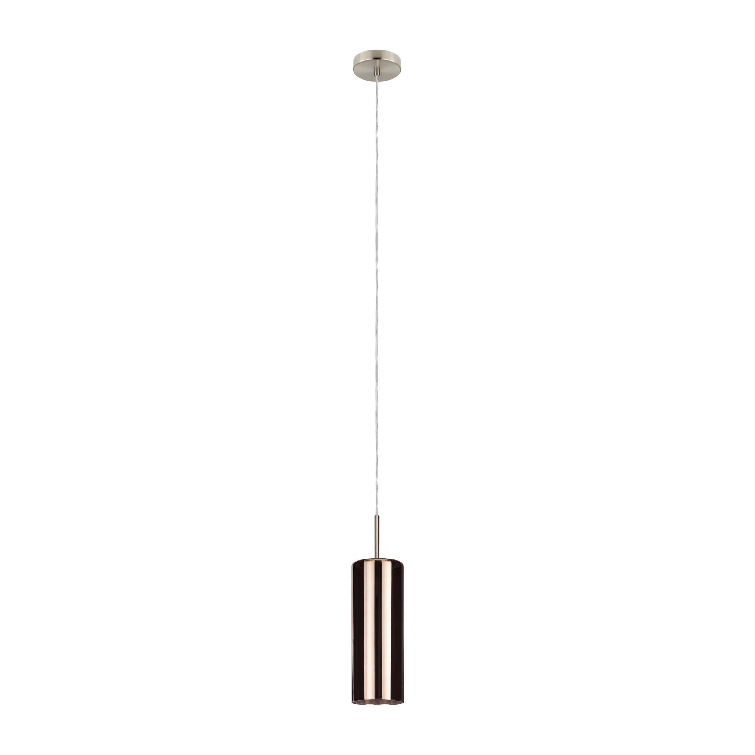 SELVINO 1-Light Pendant – Satin Nickel Steel & Copper-Vaporized Glass Cylinder, Ø100mm × H1,100mm, E27 LED Ready (15W), Non‑Dimmable – 2‑Year Warranty