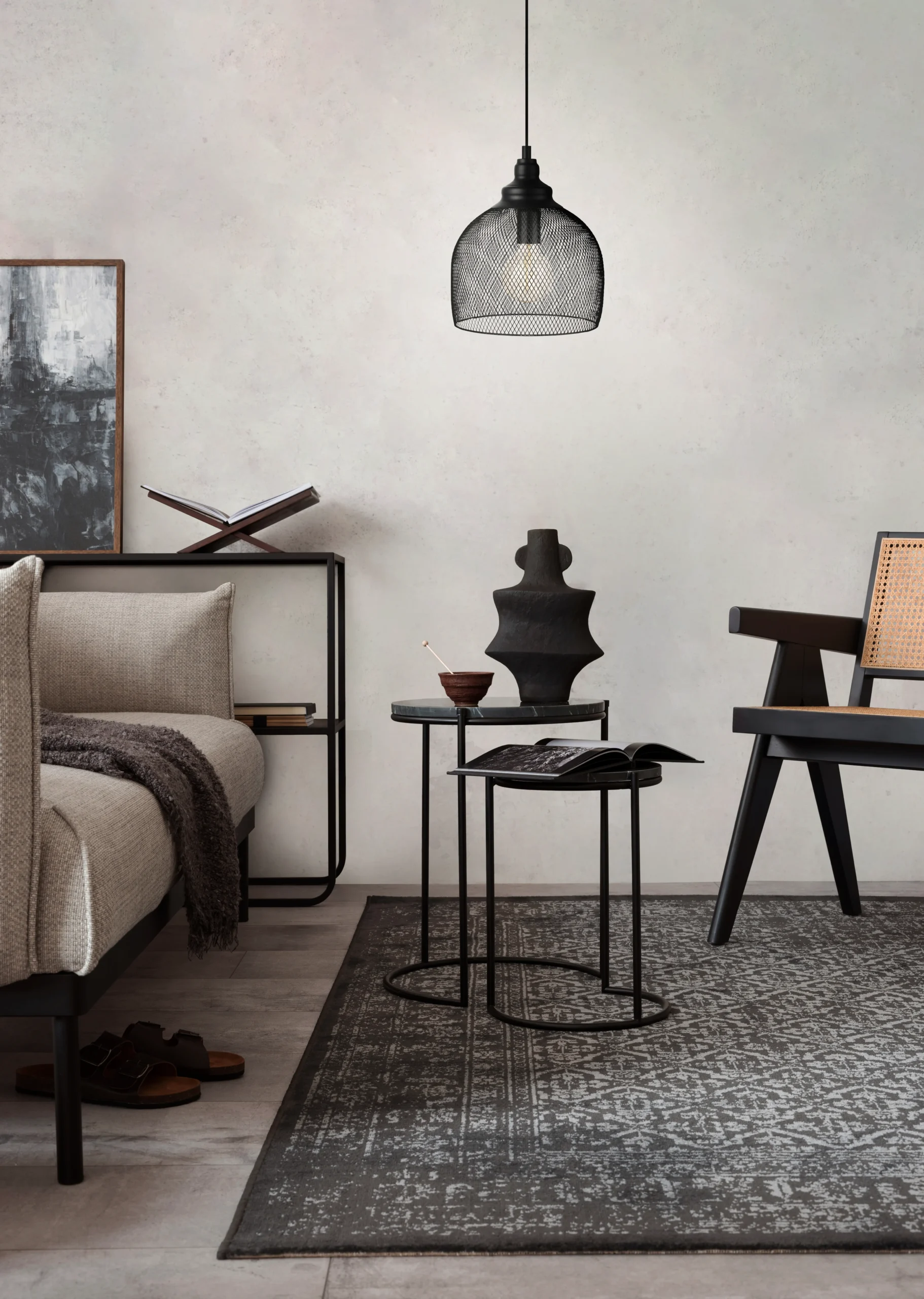 Vintage‑Industrial Mesh Shade: The round steel dome features a fine black mesh design that casts captivating light-and-shadow patterns—perfect for kitchens, dining spaces, hallways, or living rooms.