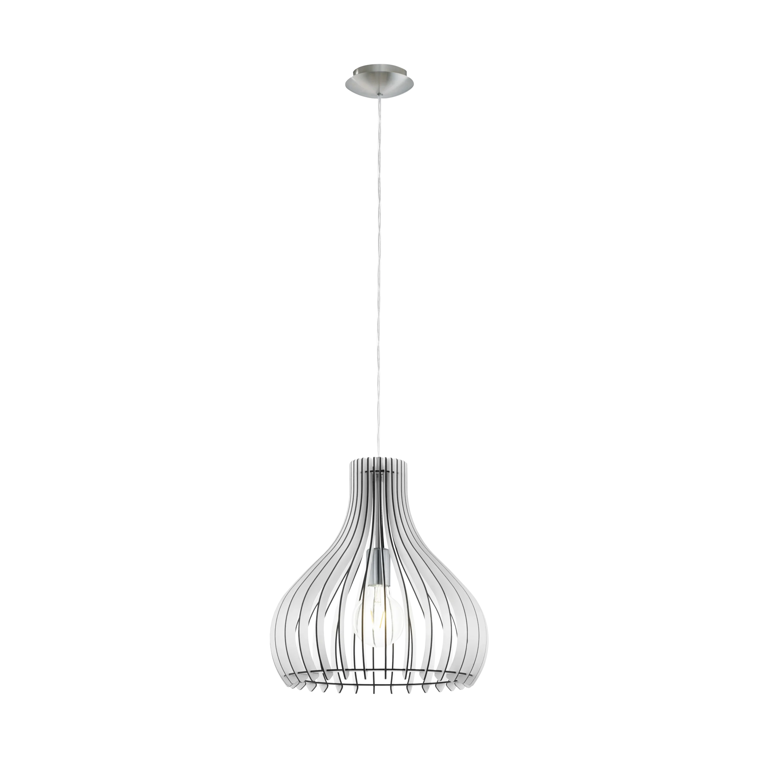 Tindori 1‑Lamp E27 Pendant – Satin‑Nickel Steel Canopy with White Wood-Slat Shade, Ø38cm × 1.3m Drop, E27 Socket (Bulb Not Included), 2‑Year Warranty