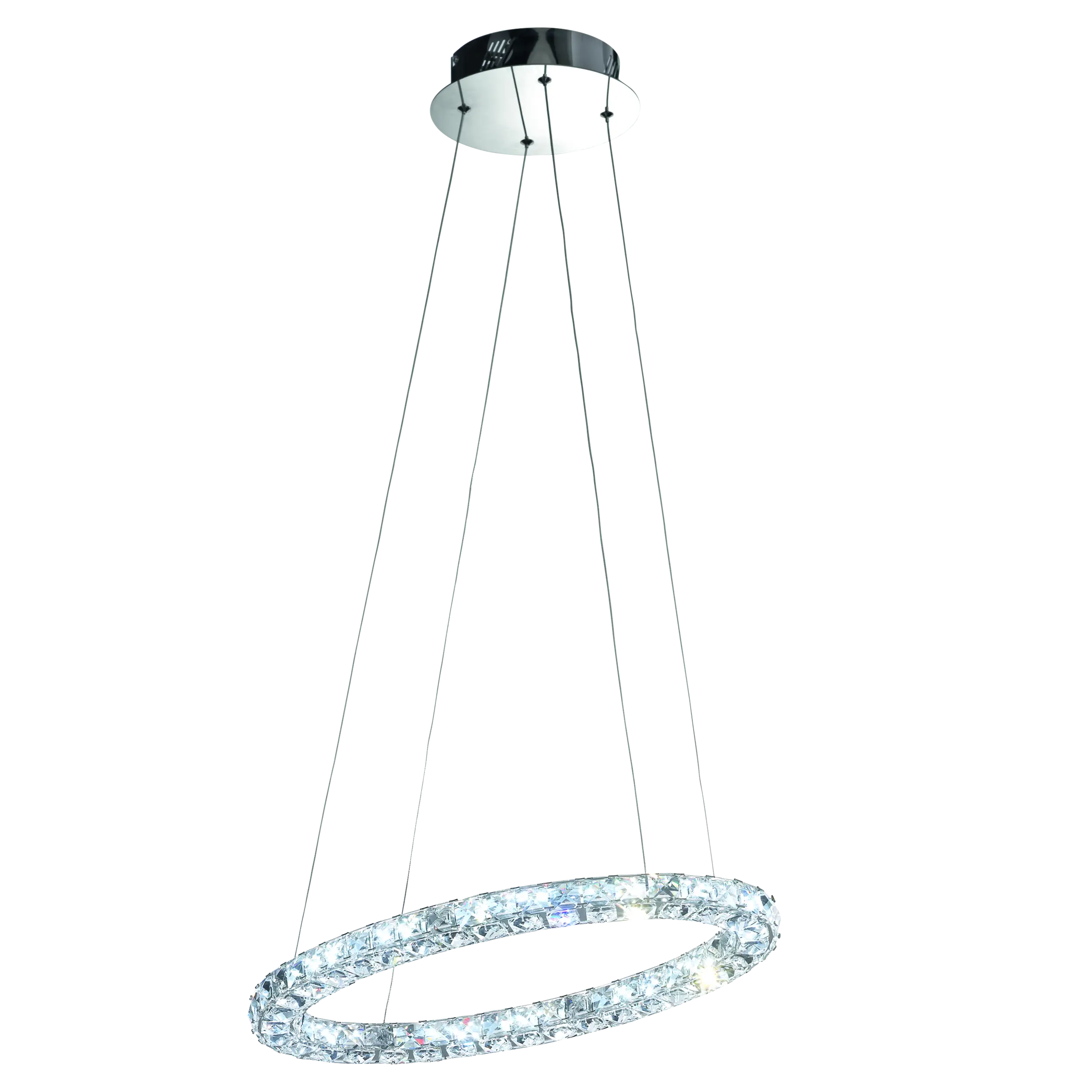 TONERIA 39001 LED Pendant Lamp – Chrome & Crystal Ring, 12 V Transformer, 7,400 lm, 4,000 K Neutral White
