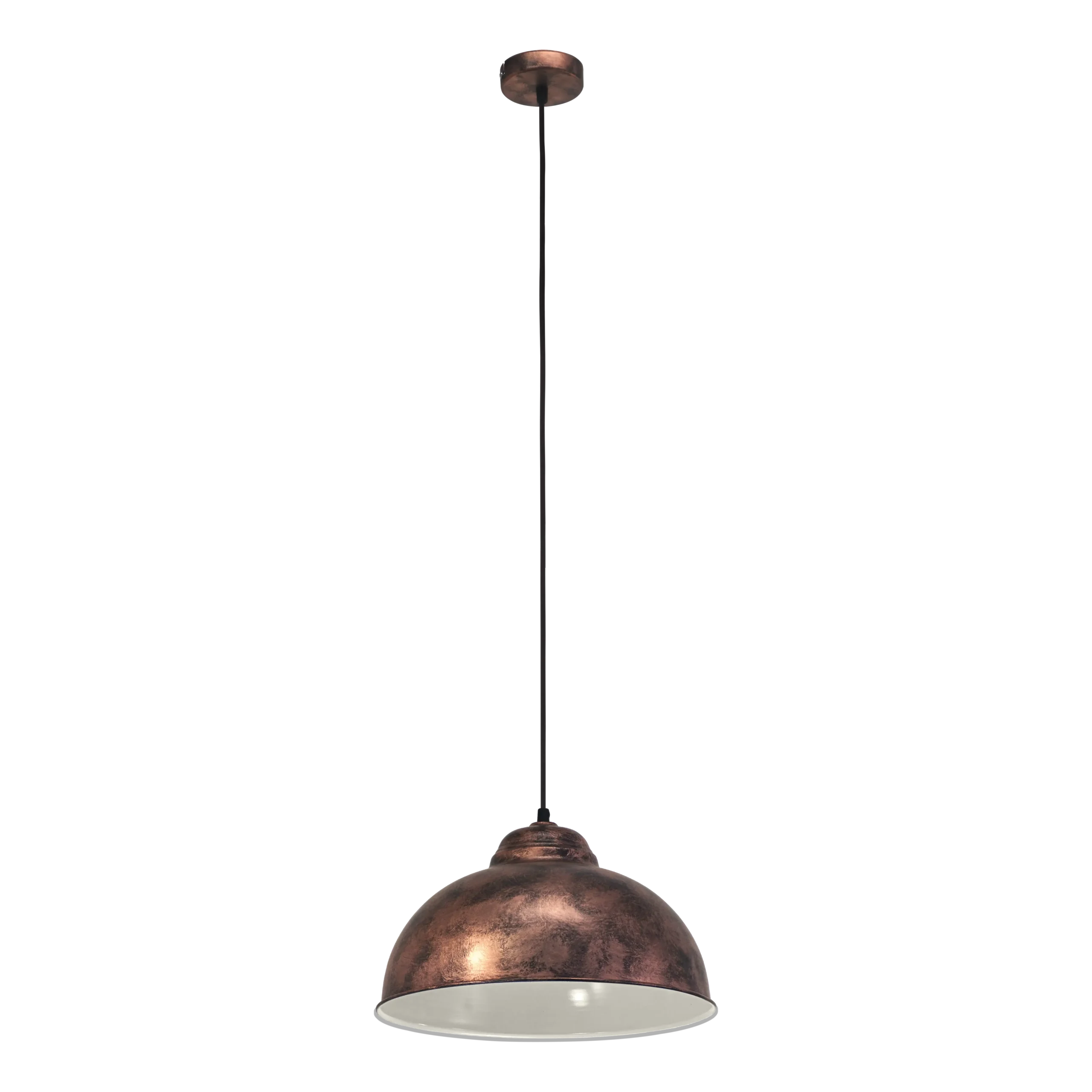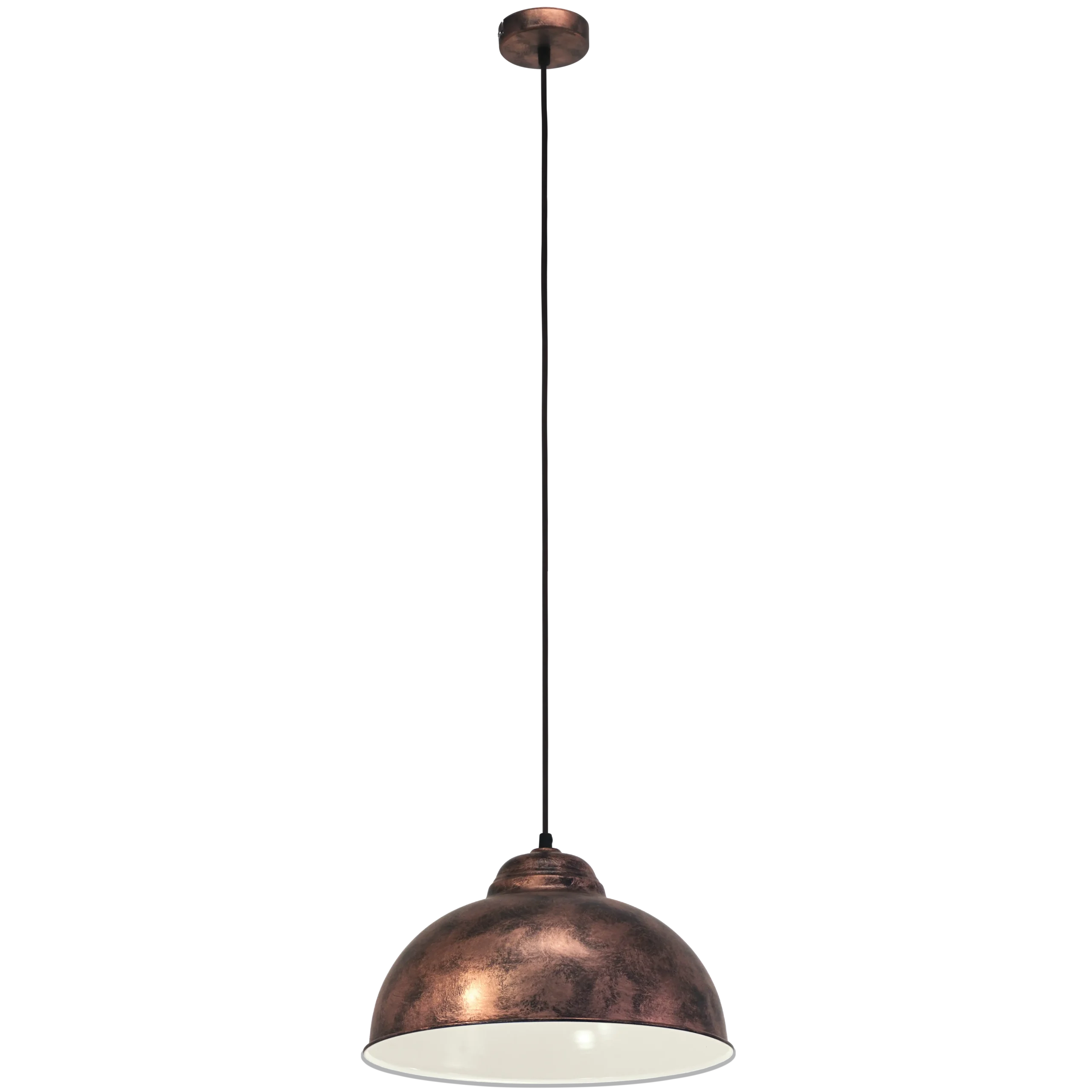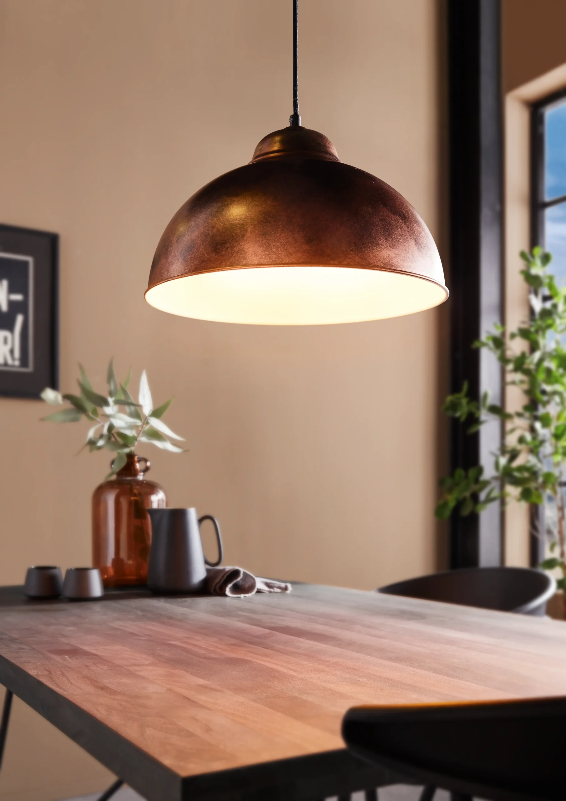 Warm Vintage Industrial Design: Showcases a dome-shaped steel shade with an attractive antique copper finish and cream-toned interior, radiating a cozy, vintage industrial charm ideal for dining areas, kitchens, or living rooms.