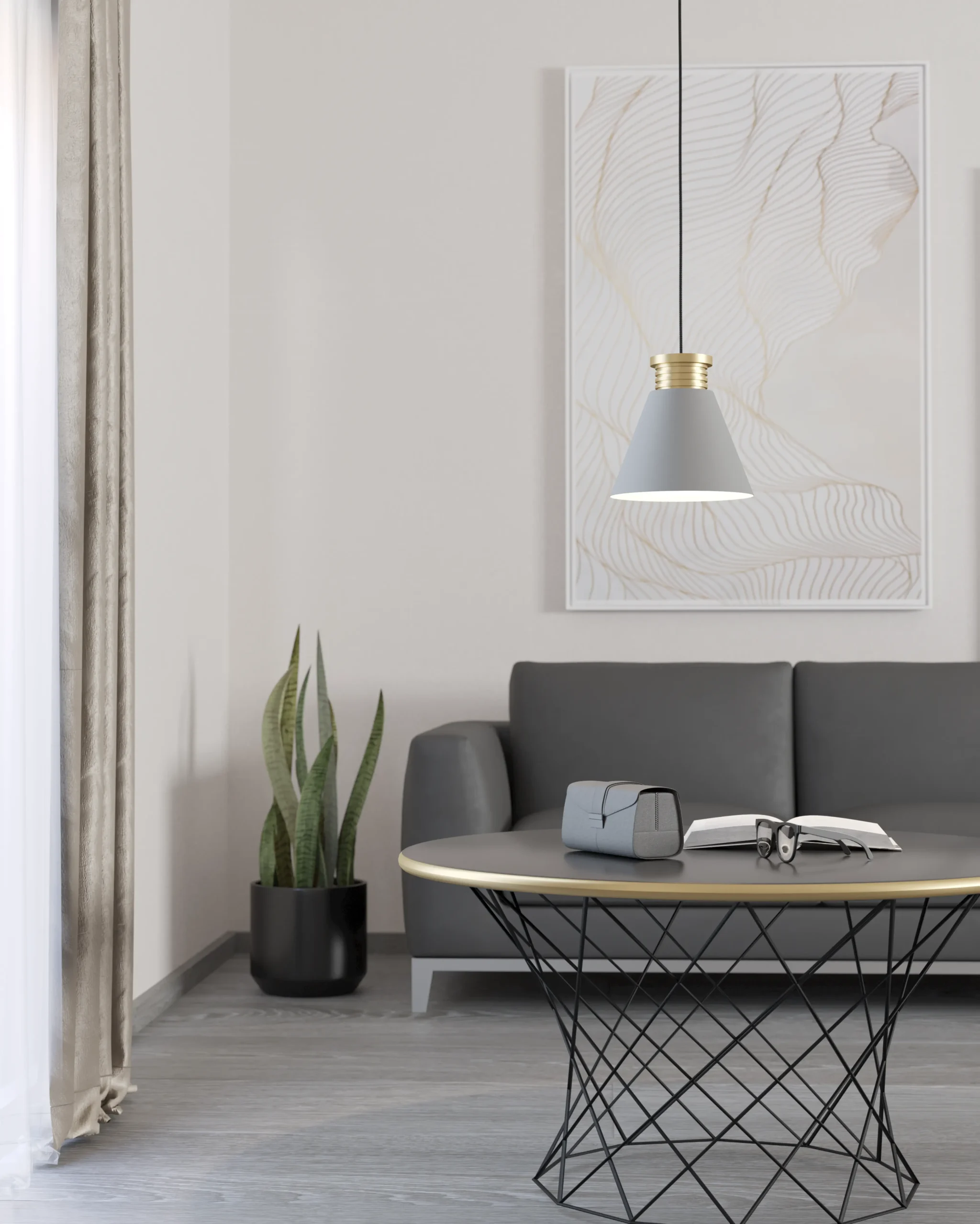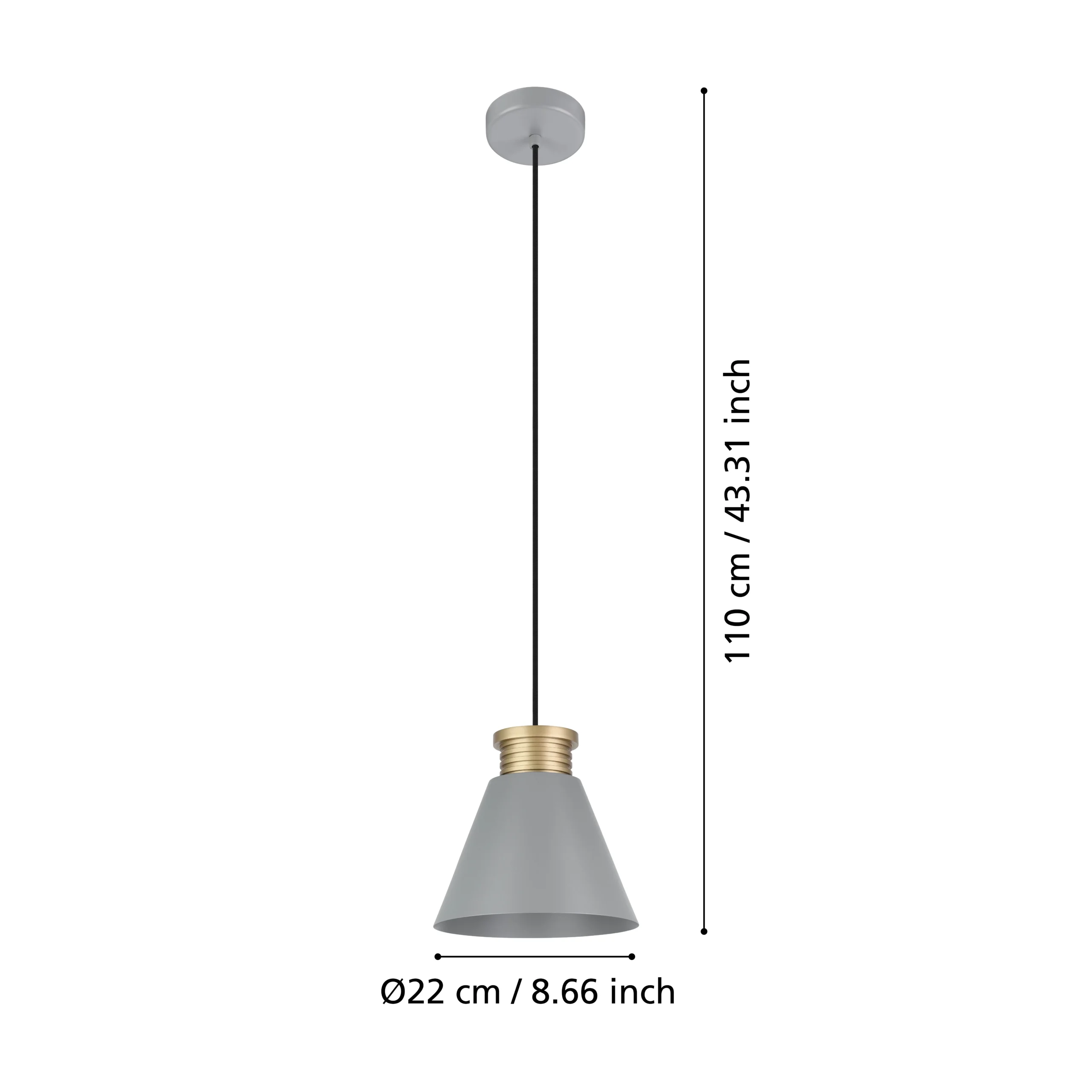 Vintage Industrial Aesthetic: Features a grey steel conical shade with gold-toned details and a black textile cable, perfect for adding character to kitchens, dining spaces, or living rooms.
