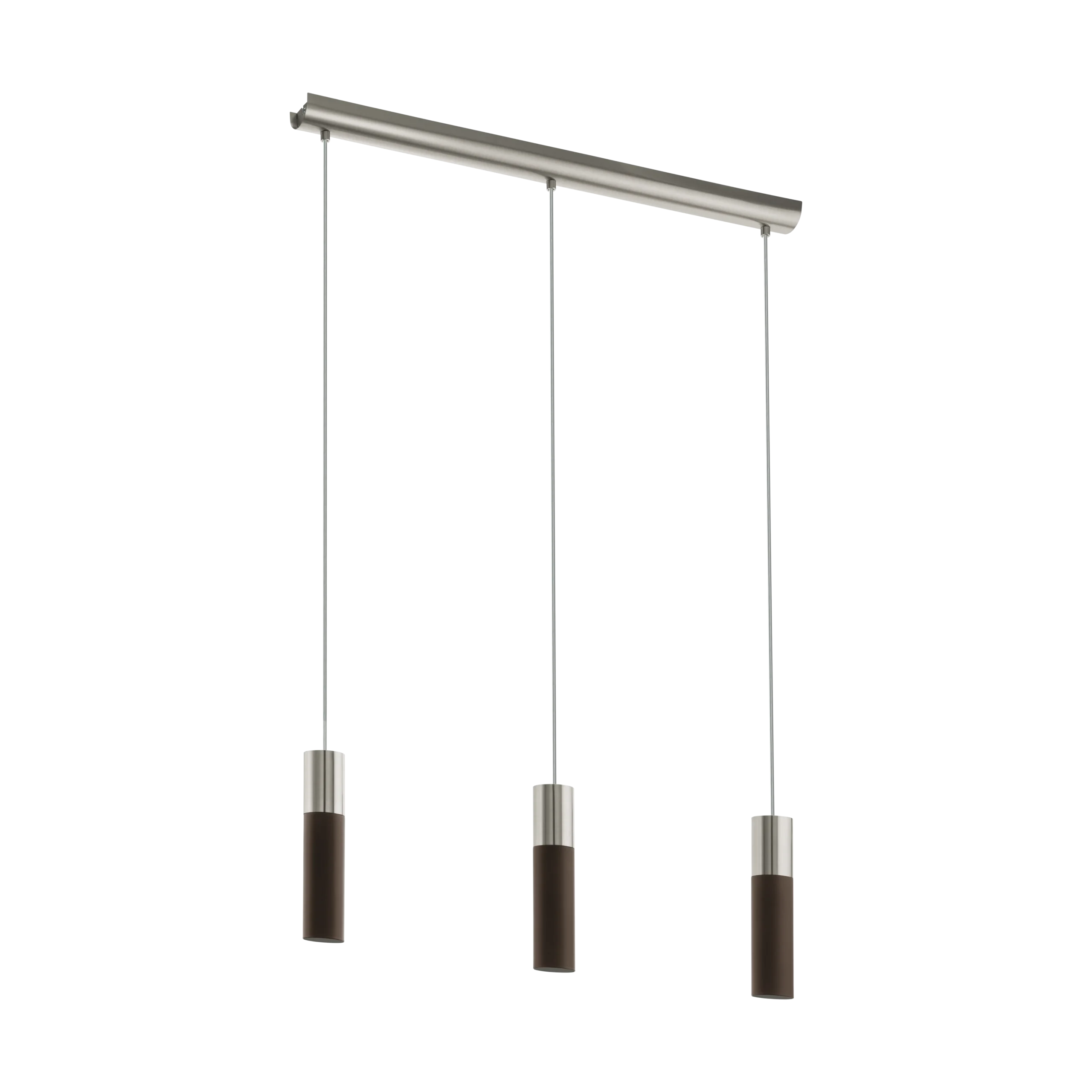 Modern Slimline Design: Elegant satin-nickel steel bar with warm brown accents, housing three integrated GU10 LED modules—perfect for kitchen, dining, or hallway Lamping.