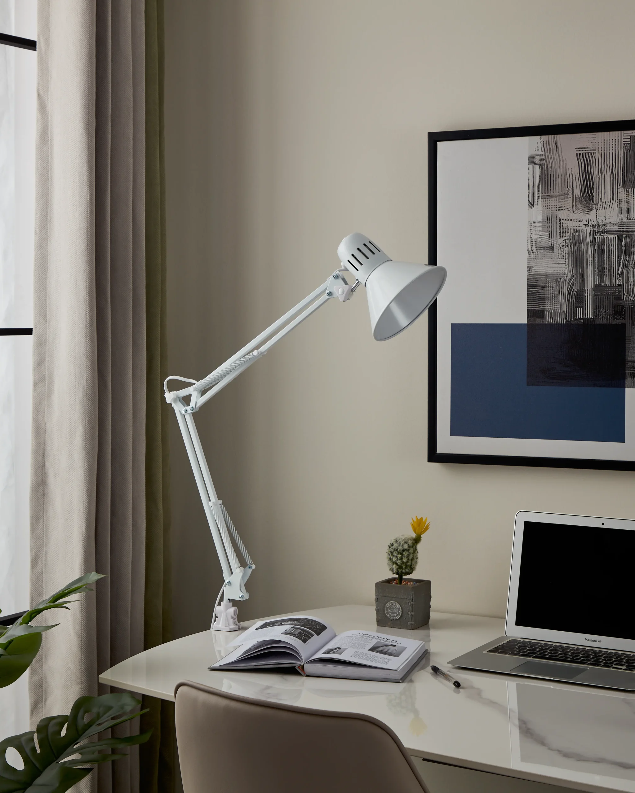 Adjustable Arm: Equipped with a flexible arm that allows for precise positioning, making it ideal for tasks requiring focused lighting, such as reading, drawing, or working at a desk.