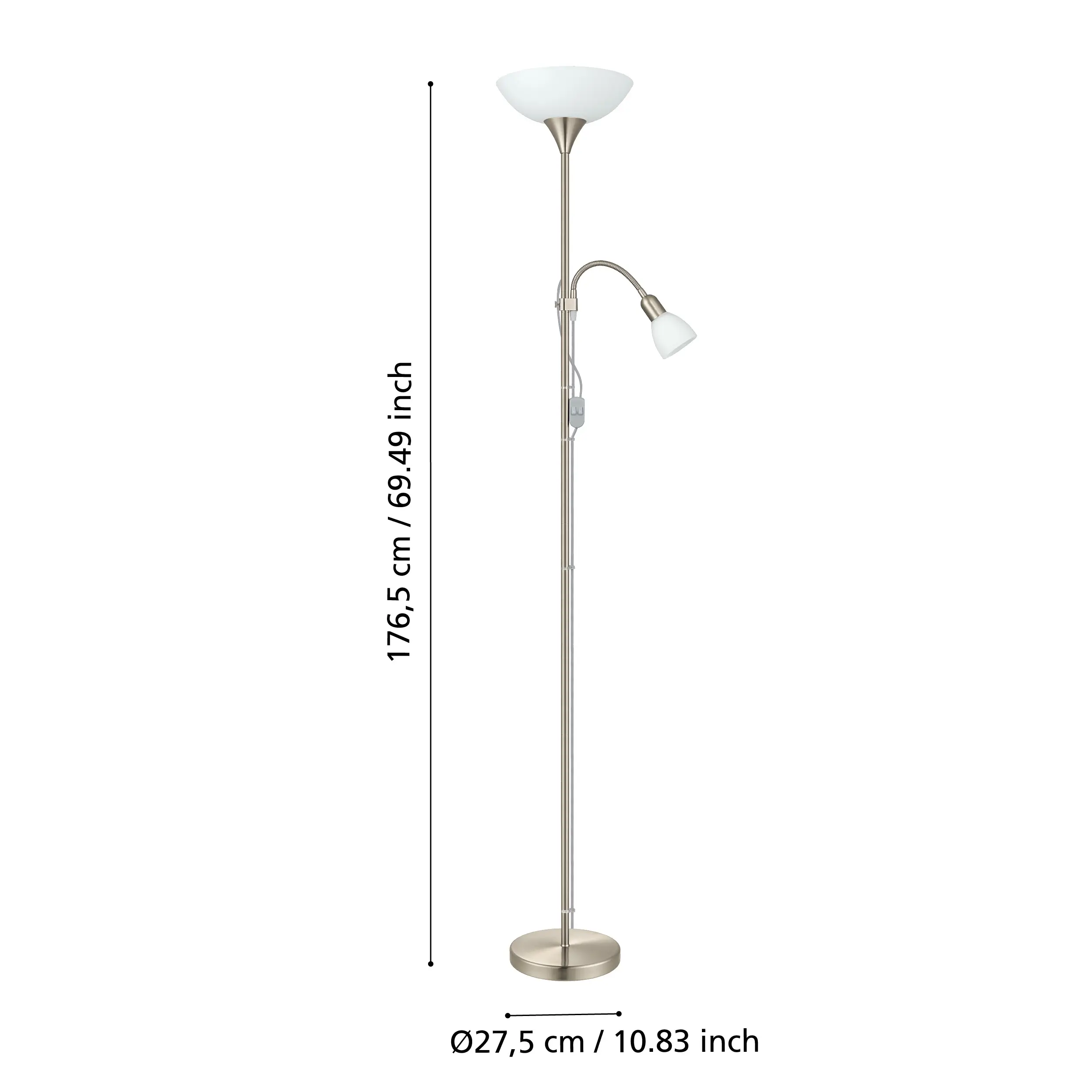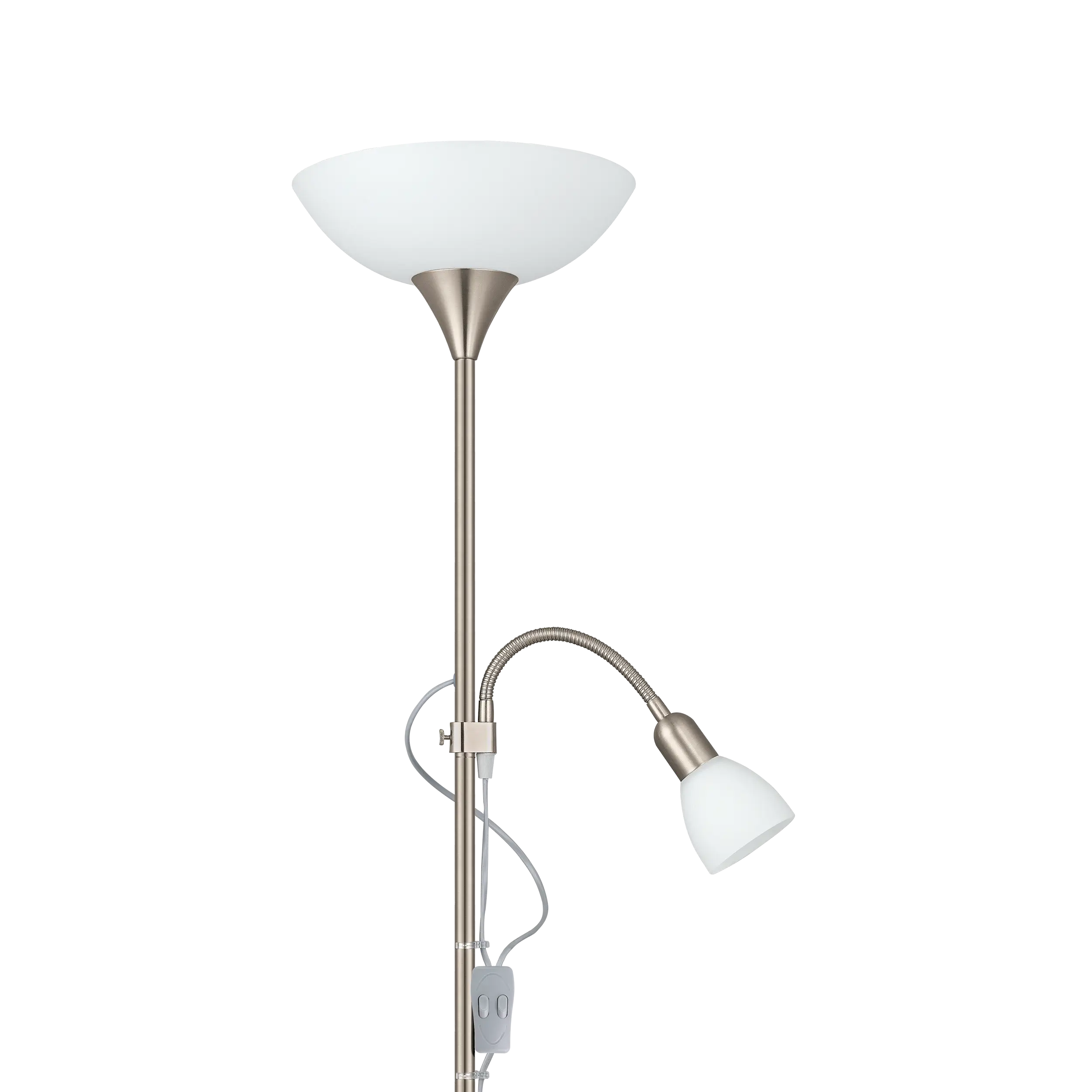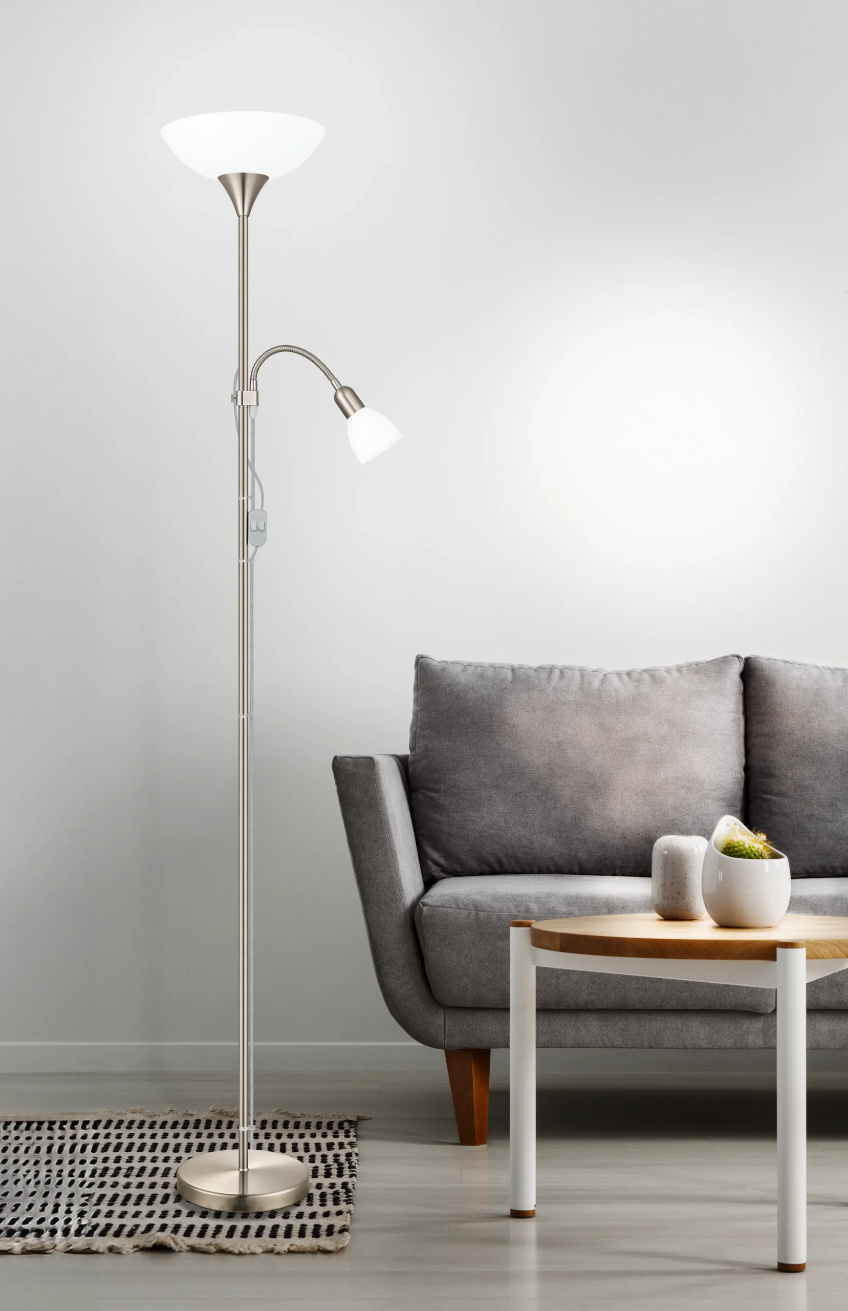 Dual Light Functionality: Features an uplighter with an E27 socket and a flexible reading light with an E14 socket, allowing for versatile lighting options.