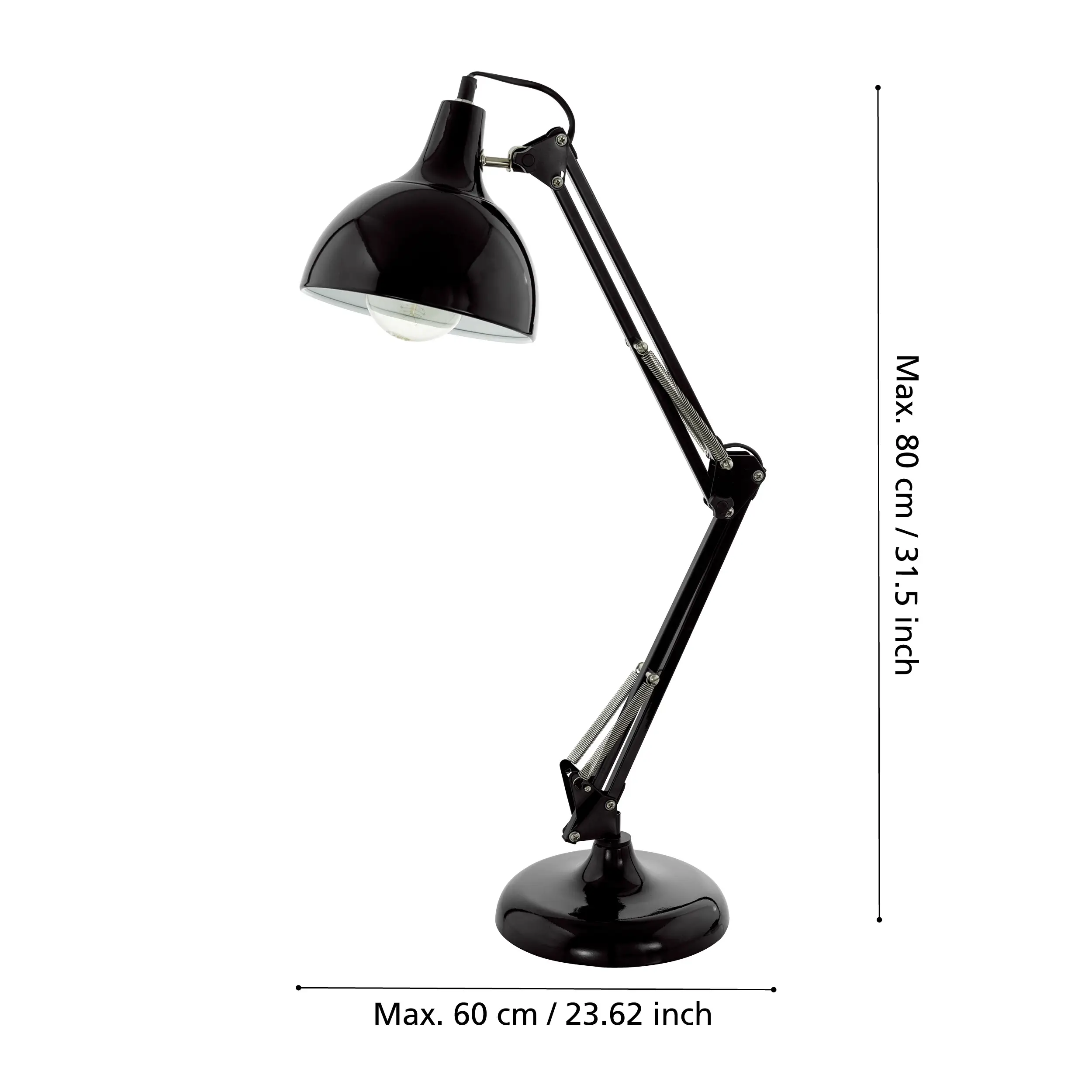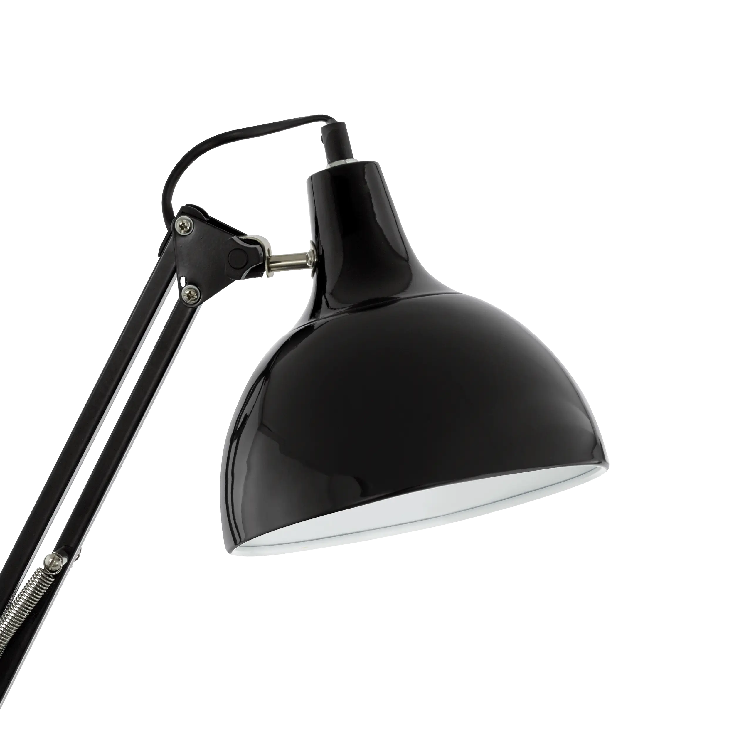 Modern, Adjustable Design: Black steel body with movable arm, perfect for versatile desk or task lighting.