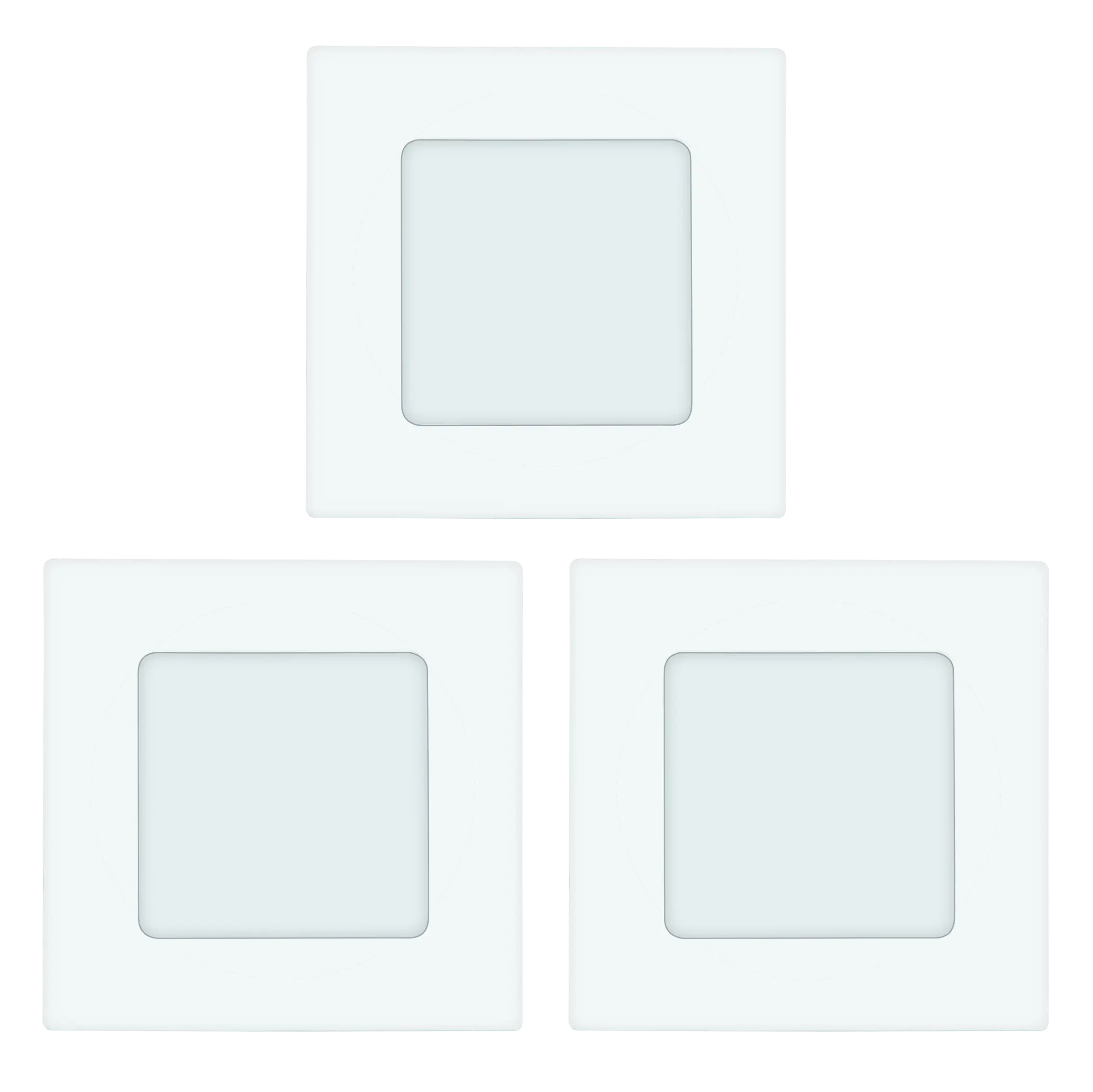 Slim square recessed LED downlight in white cast metal with integrated non‑replaceable LEDs, 3×2.7 W delivering 3×300 lm at 3000 K, IP20, 75×75 mm cutout and just 30 mm installation depth.