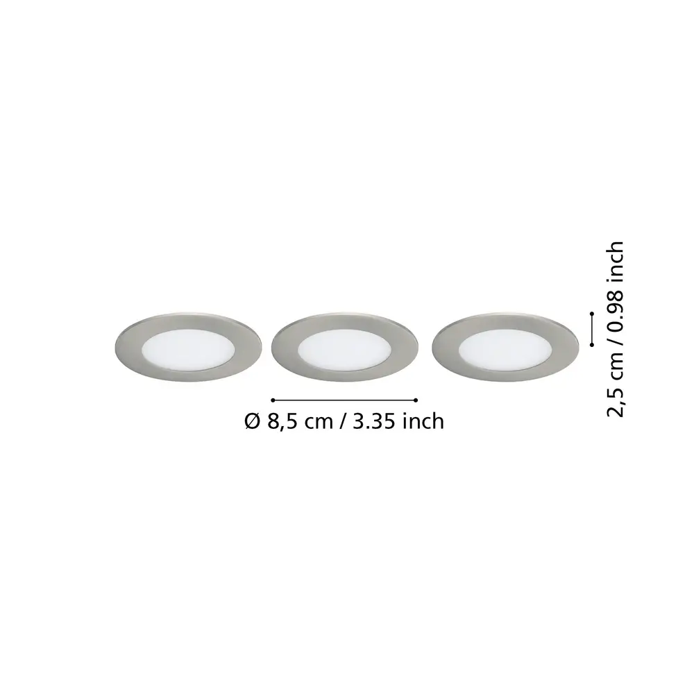 Compact & Elegant Design: Satin nickel cast‑metal trim and white diffuser frame a neat 85mm (3.35″) fixture depth, fitting into only 30mm (1.18″) ceiling cavities with a 73mm (2.87″) cut‑out.