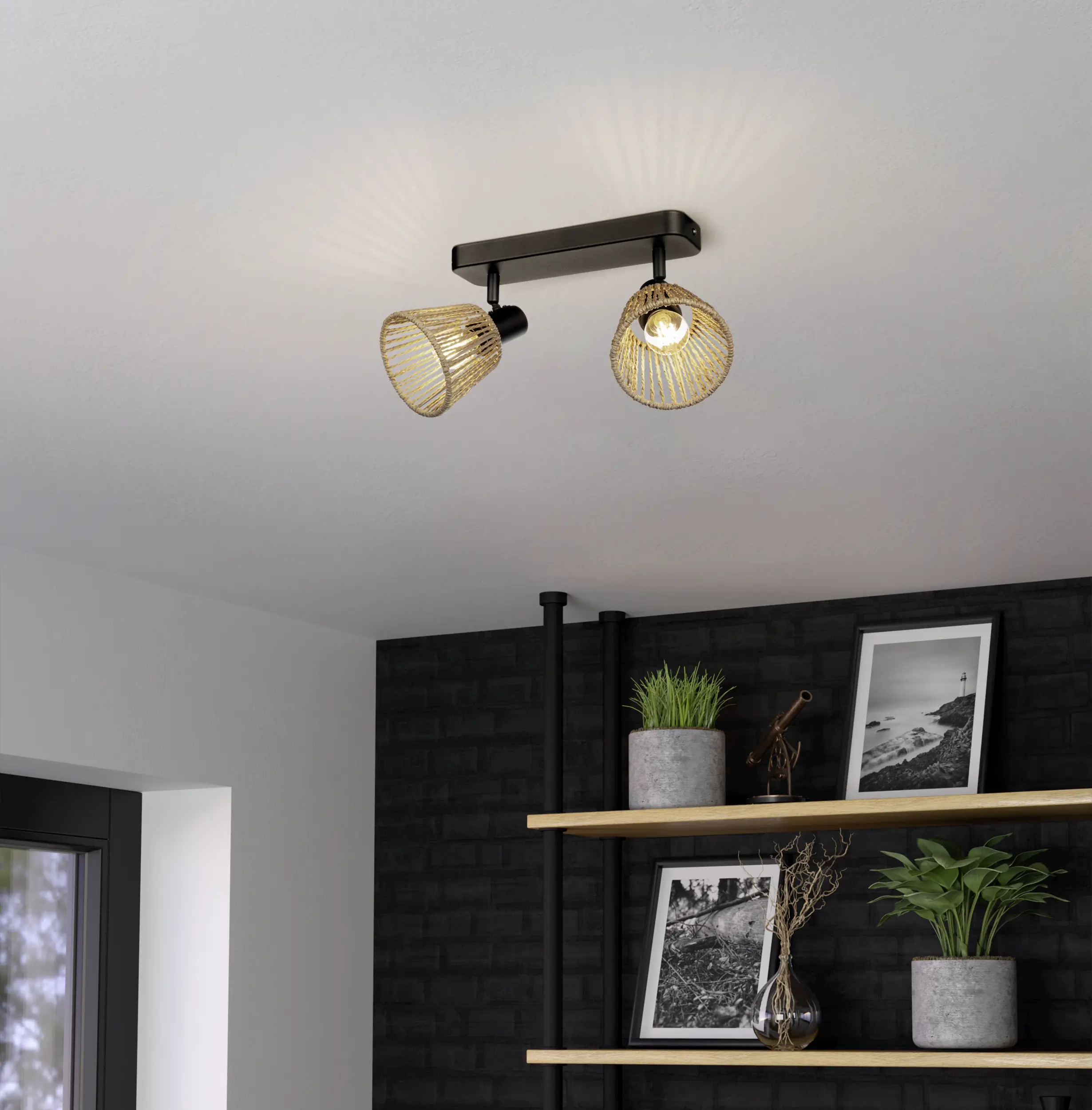 The ALMENDROS spot light features an elongated black steel design, ideal for directional and accent lighting in modern interiors such as hallways, bedrooms, or display areas.