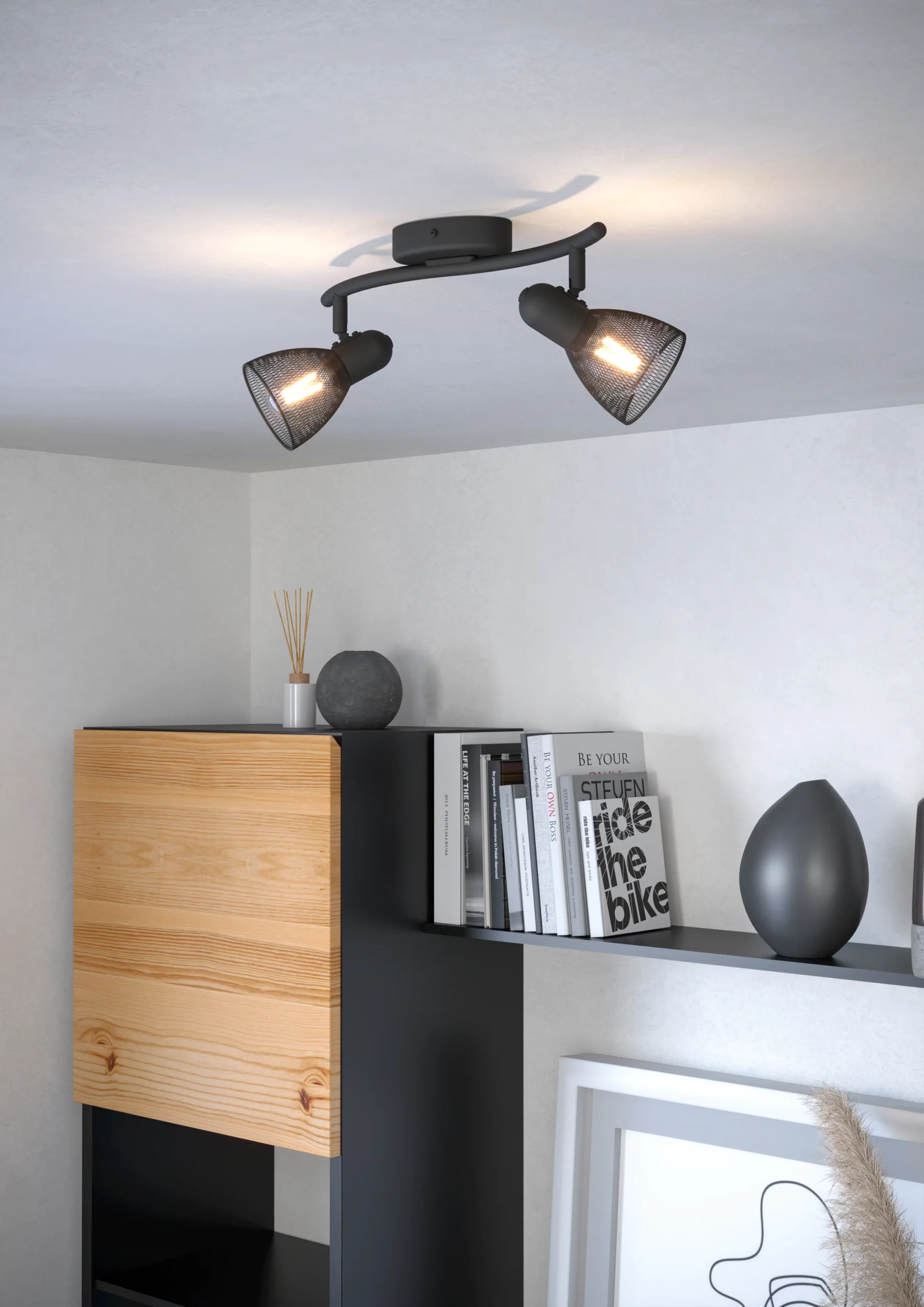 Contemporary Industrial Look: Featuring a sleek black steel bar with two adjustable spotLamps in a grid-style shade for modern homes.