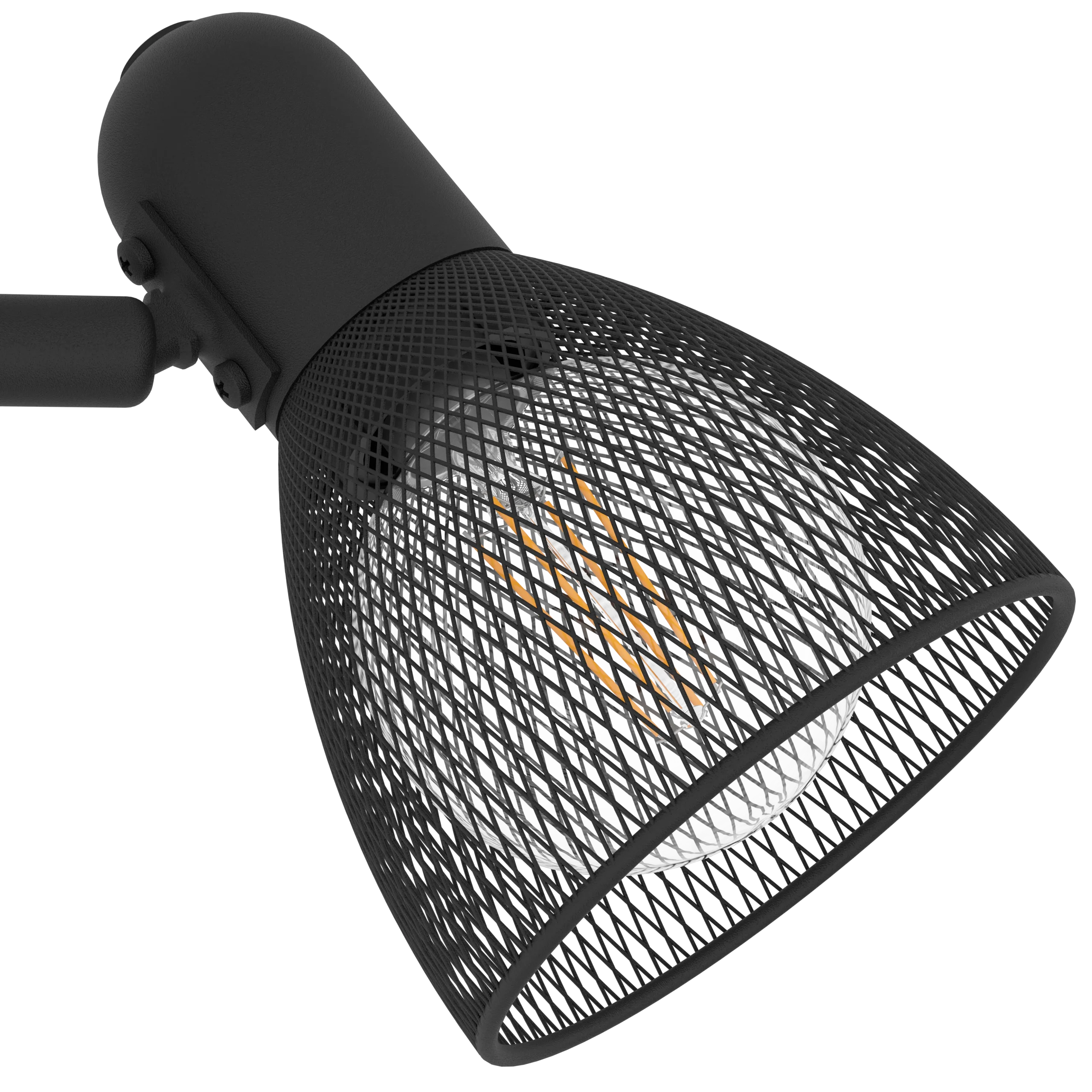 Industrial-Inspired Design: Features a black steel frame with a wire mesh shade, offering a modern aesthetic suitable for various interiors.