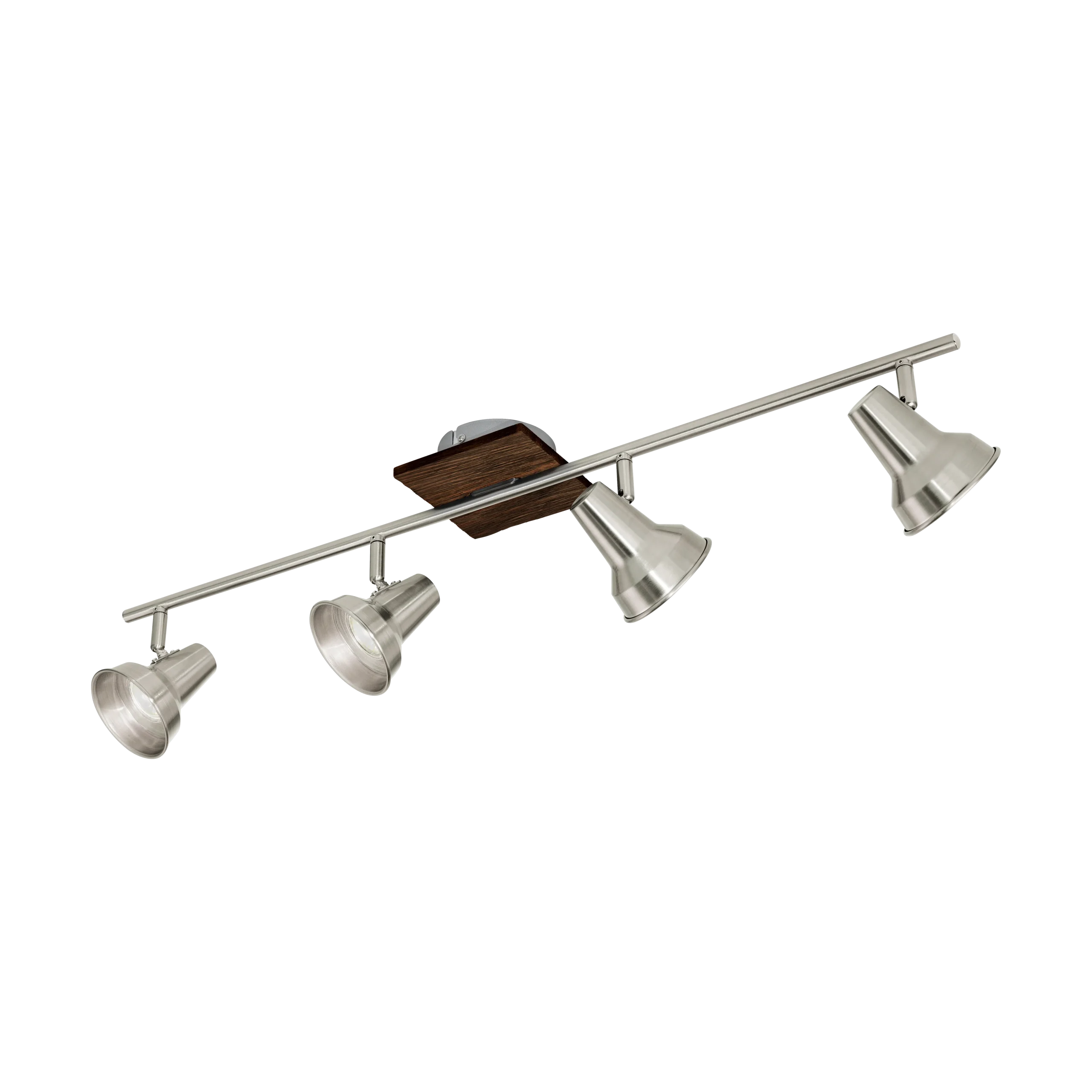 Filipina 95649 Brown Wood & Satin-Nickel 4‑Spot LED Bar Light – 78cm, GU10 LED Included, 960lm Total, Adjustable Heads