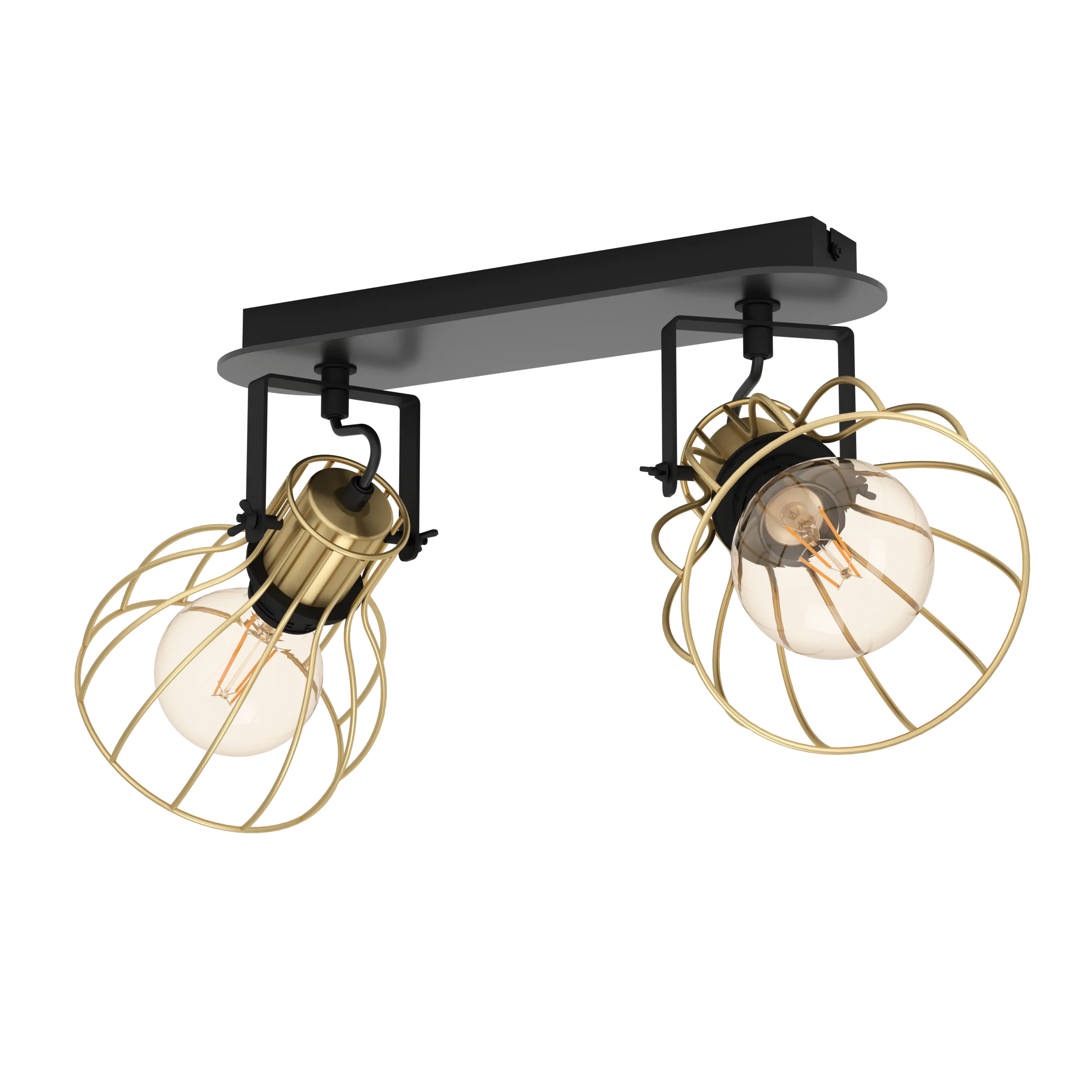 SAMBATELLO 900383 Ceiling Spotlight, 2‑Light Adjustable Bar, Black & Brushed Brass Cage, E27 Vintage Style – Modern Industrial Lighting for Kitchen, Bedroom & Hallway