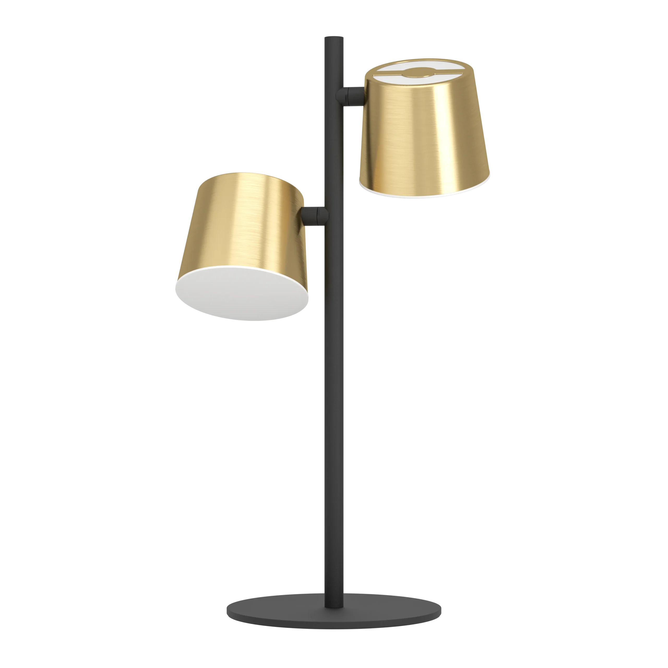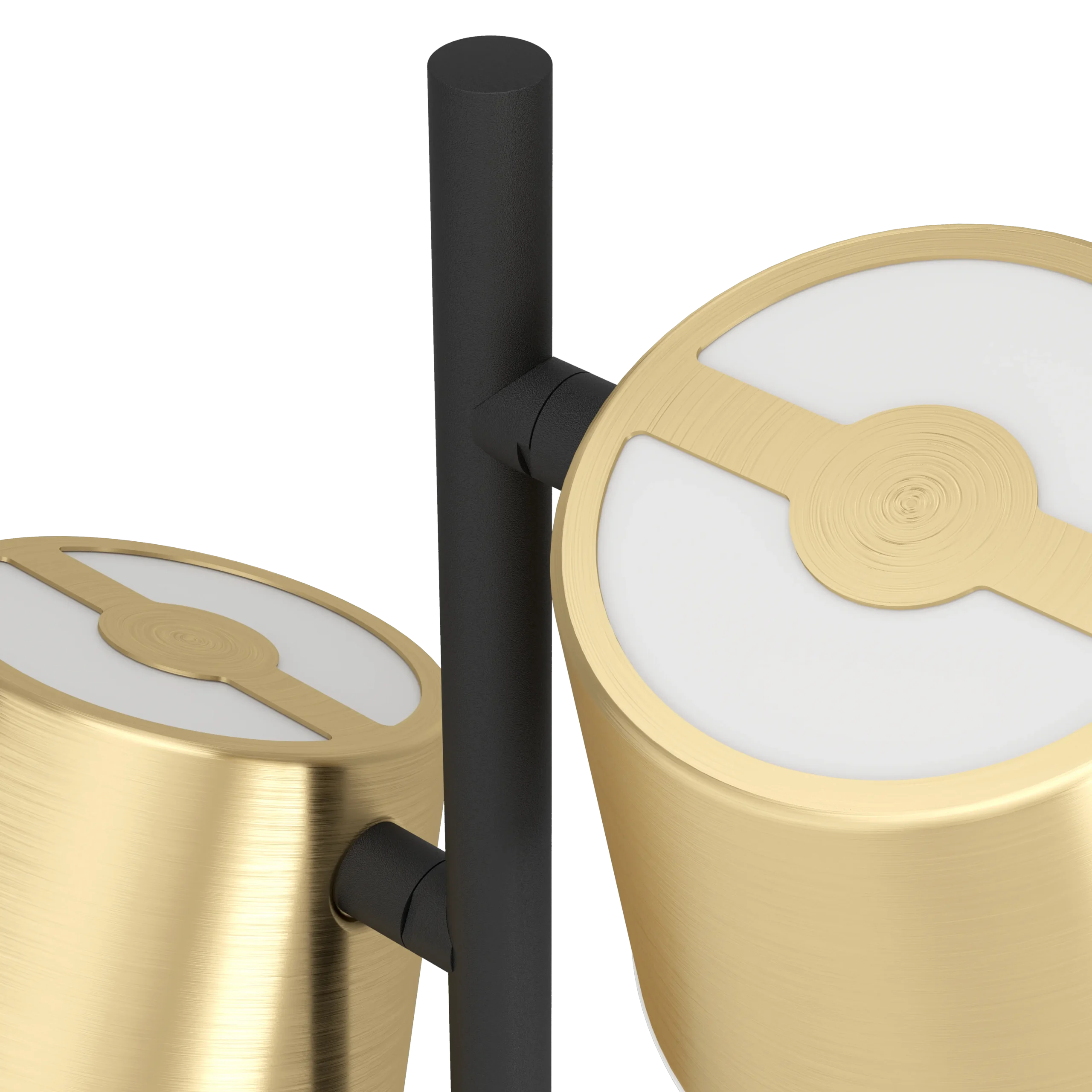 Elegant Design: The EGLO ALTAMIRA Table Lamp features a sleek black steel base complemented by two brushed brass light shades. The white plastic diffusers provide a soft, warm white light, creating a cozy ambiance in any room.