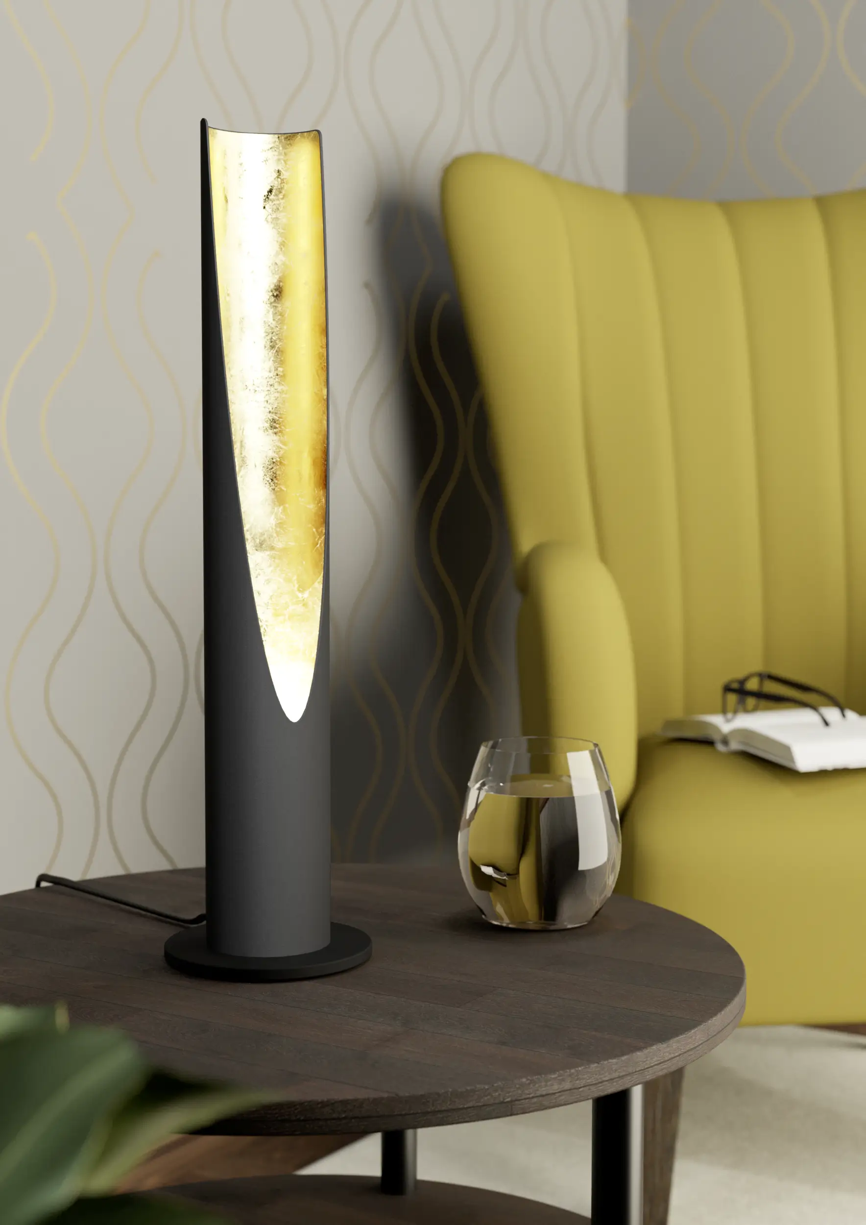 Modern Cylindrical Design: Features a sleek matte black steel exterior with a gold-colored inner surface, offering a contemporary aesthetic that complements various interior styles.