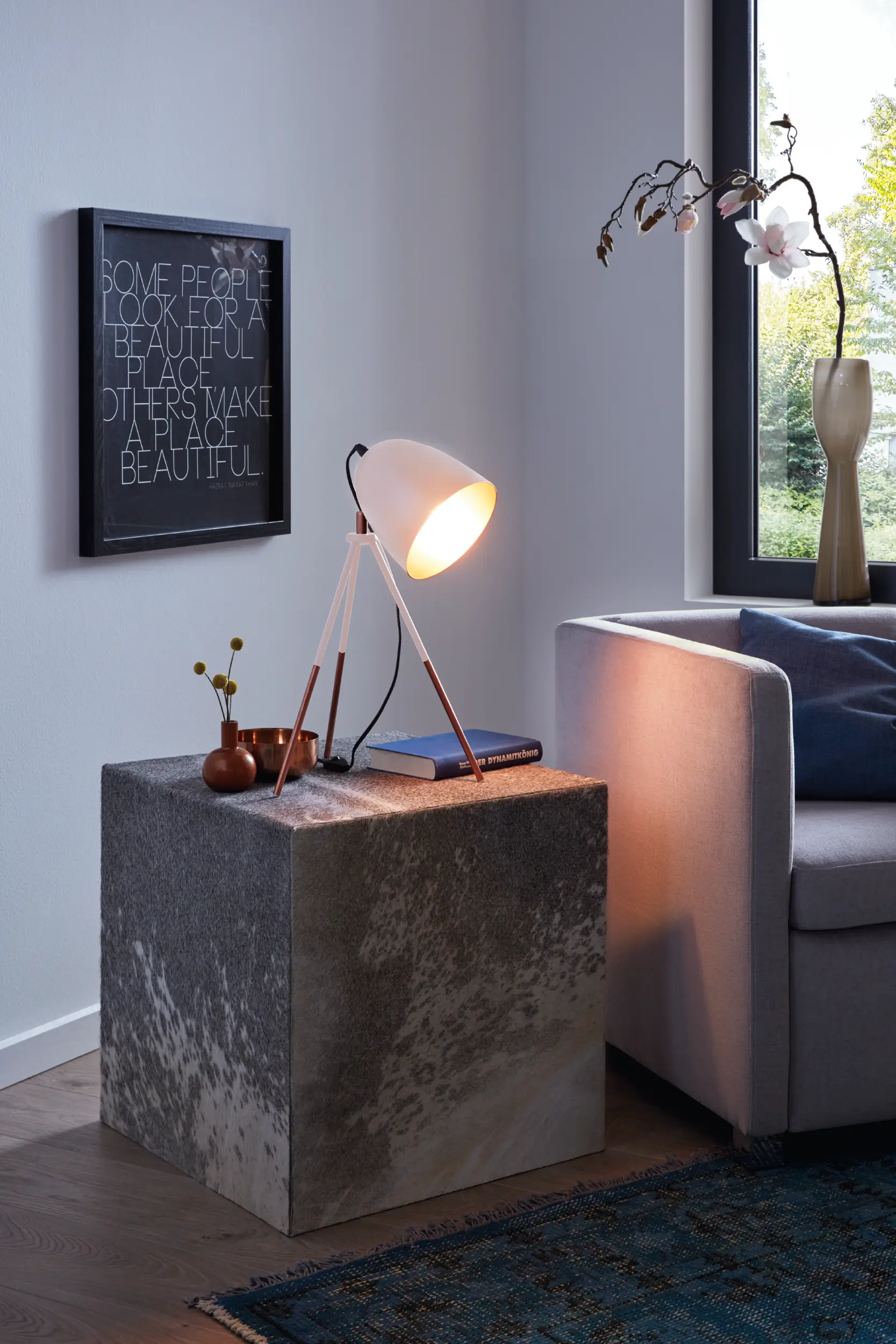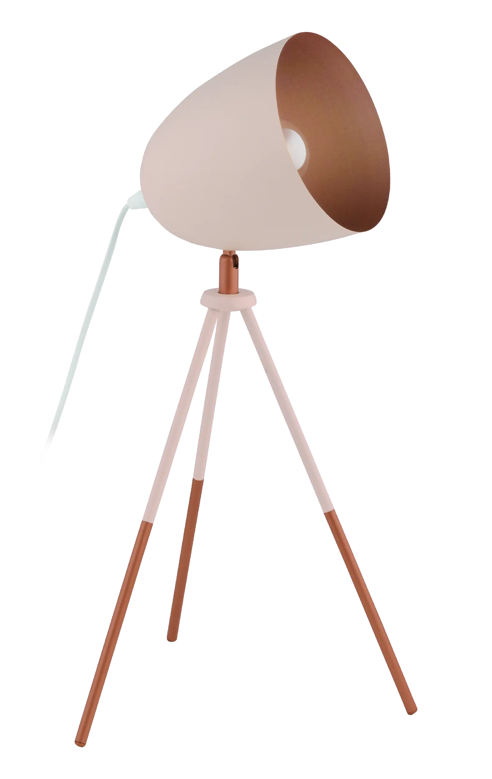 Material & finish – Rugged steel construction in pastel apricot and copper tones; black cable complements the design.