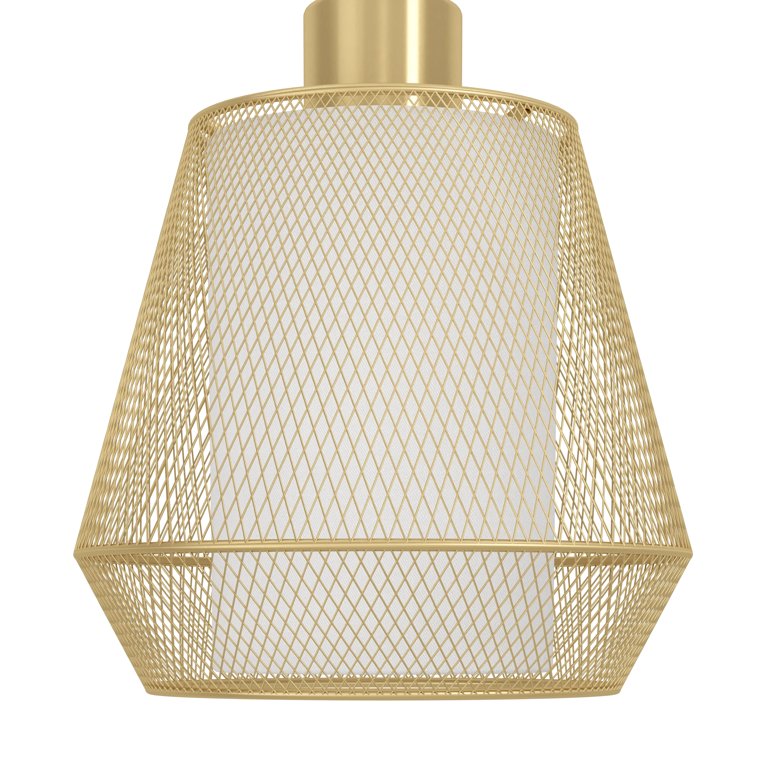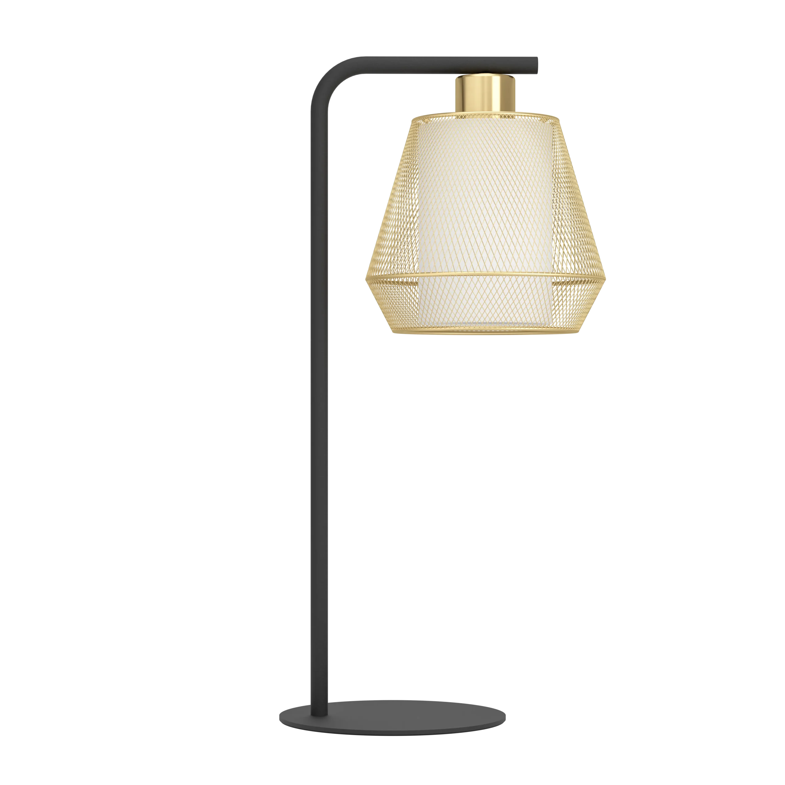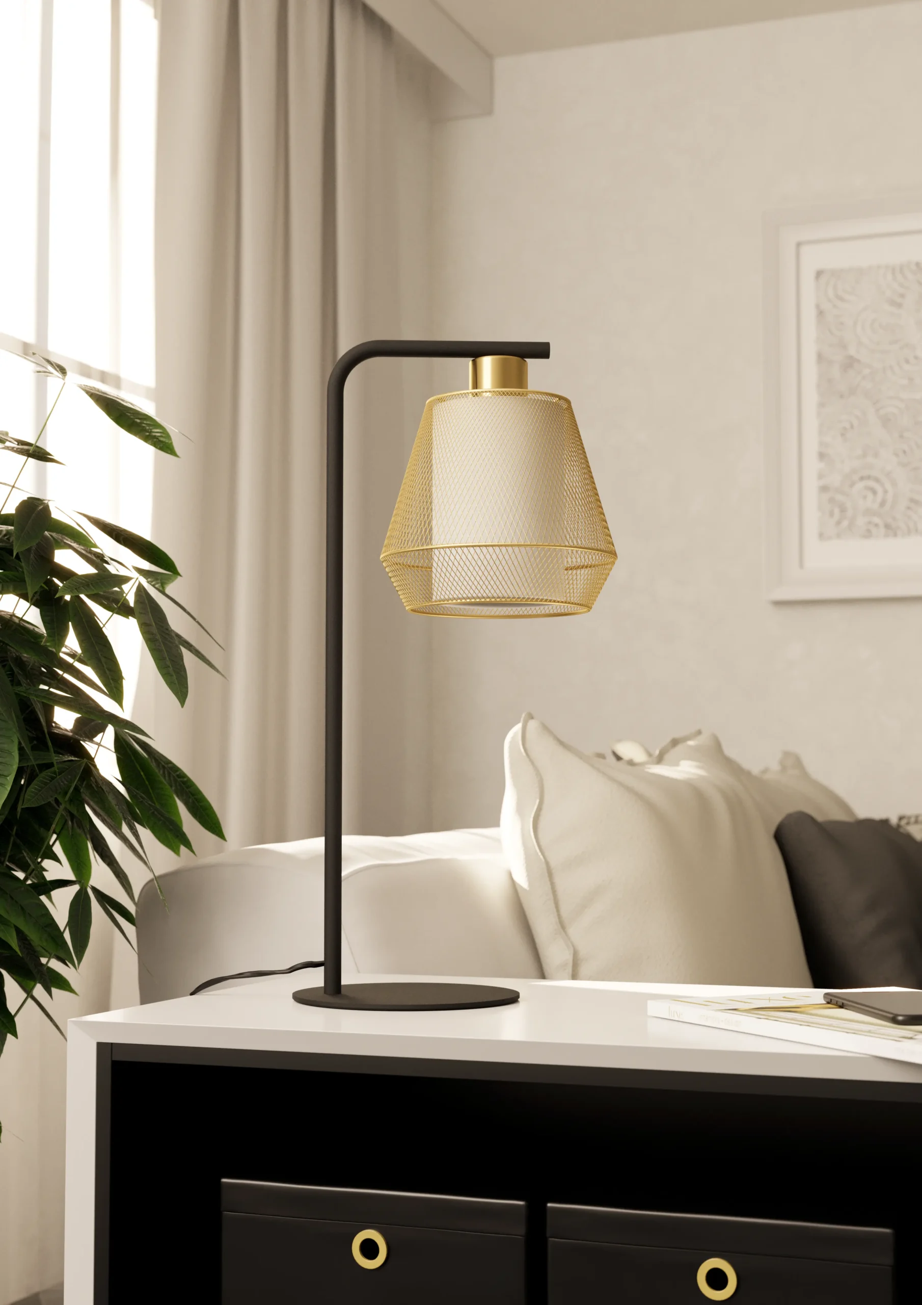 Elegant Industrial Design: Features a black steel base paired with a brushed brass wireframe shade and a white fabric inner cylinder, offering a sophisticated aesthetic that complements various interior styles.