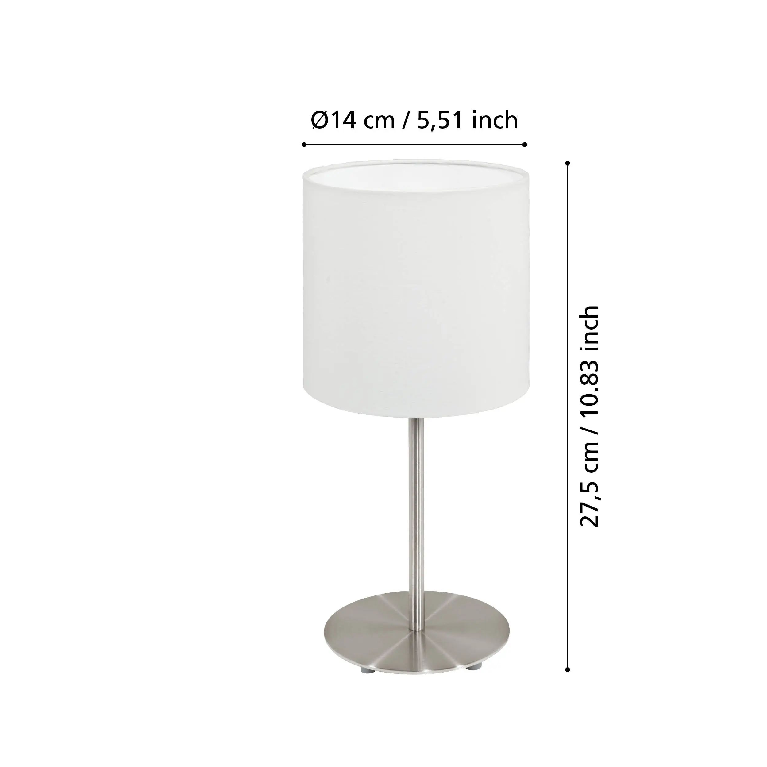 Elegant Modern Design: The EGLO PASTERI Table Lamp features a sleek satin nickel finish paired with a white fabric shade, offering a minimalist aesthetic that complements various interior styles.