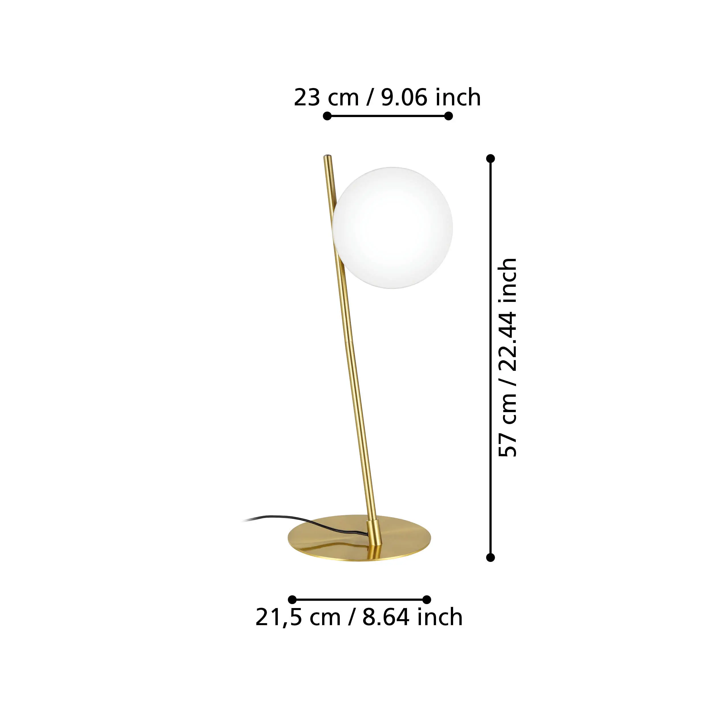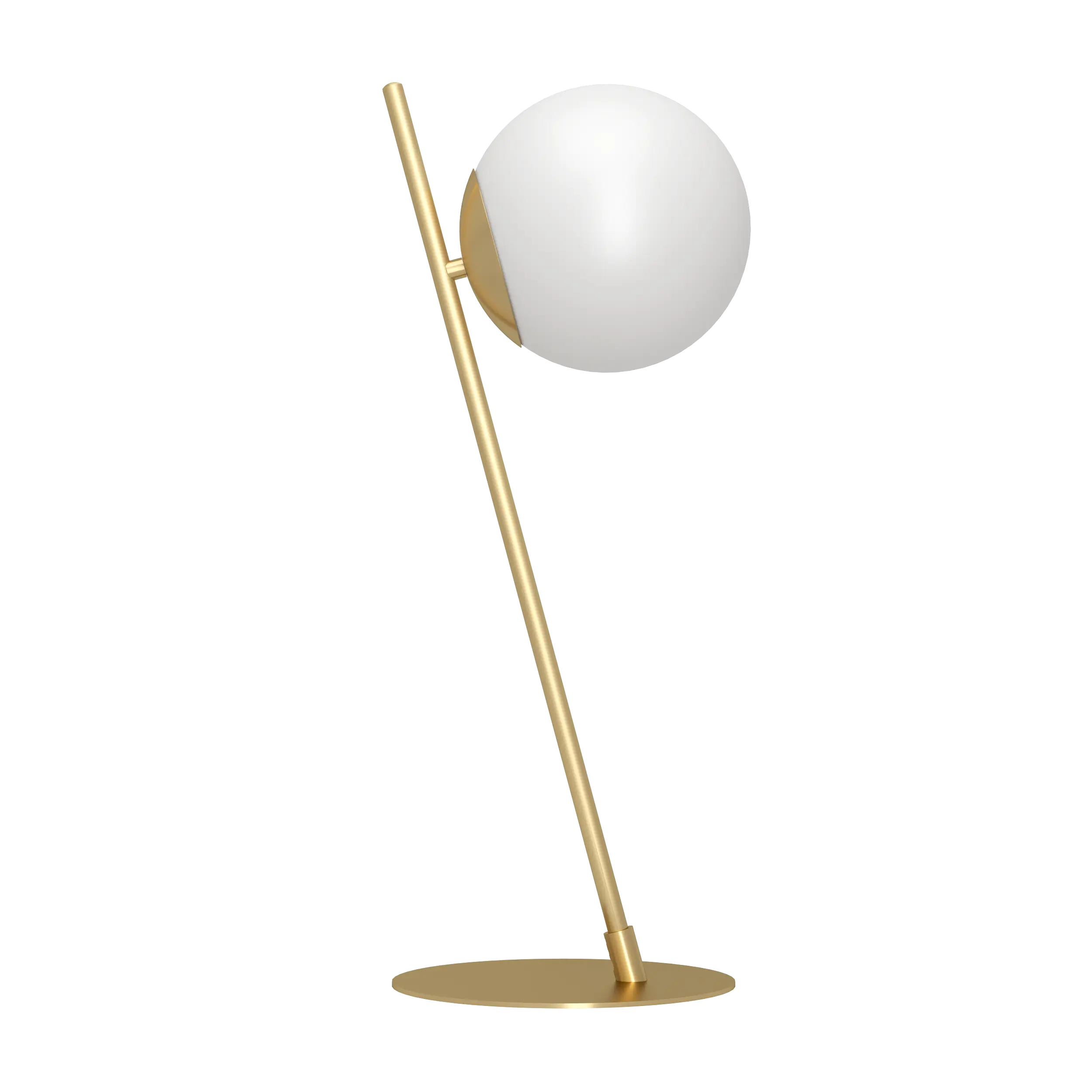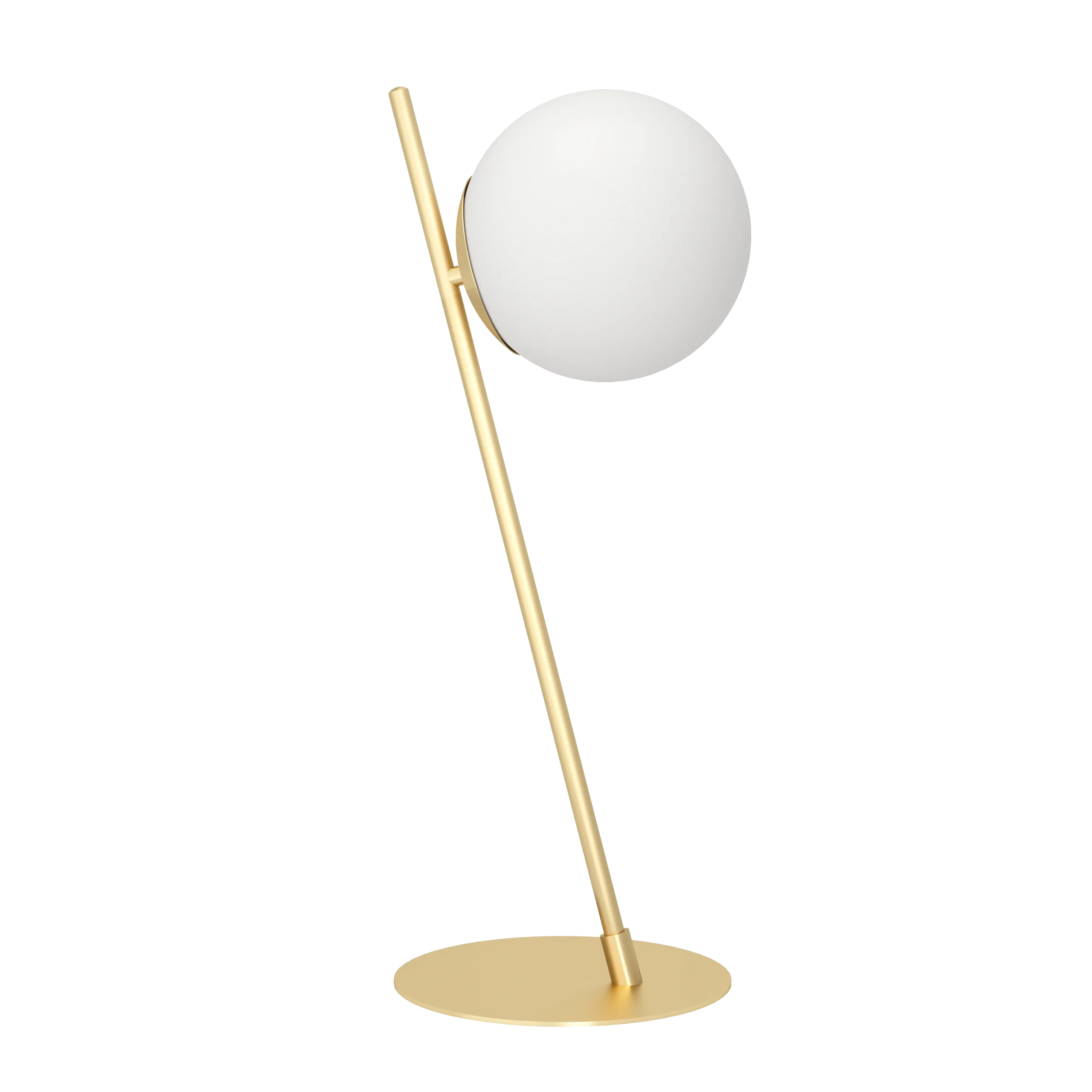 Striking sculptural design – A brushed-brass steel base and angled stem supporting a white matte-opal glass orb creates a stylish, retro-modern look for bedside, desk, or accent use.