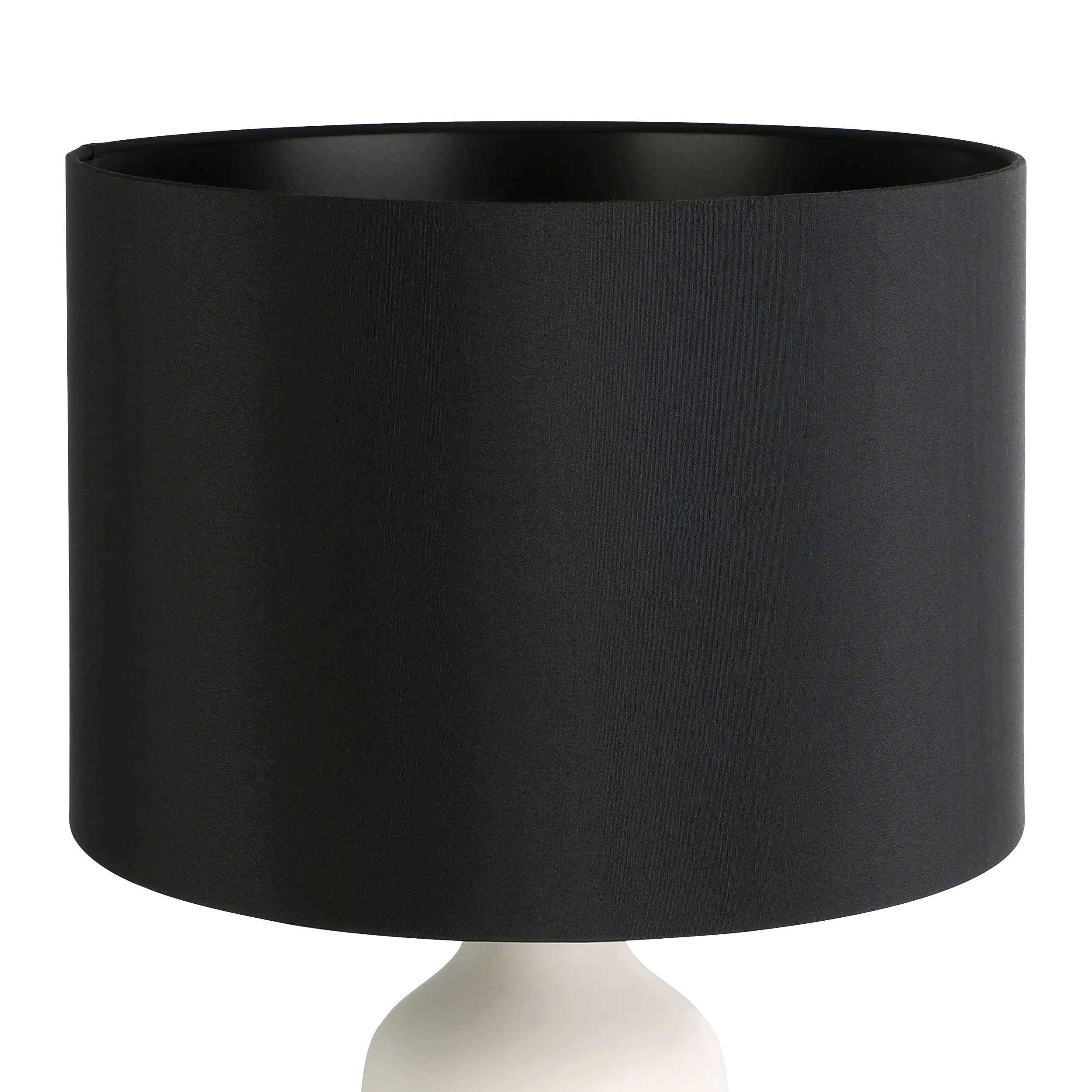 Material & colour scheme – Constructed with white painted ceramic base, contrasted by a black fabric lampshade and matching.