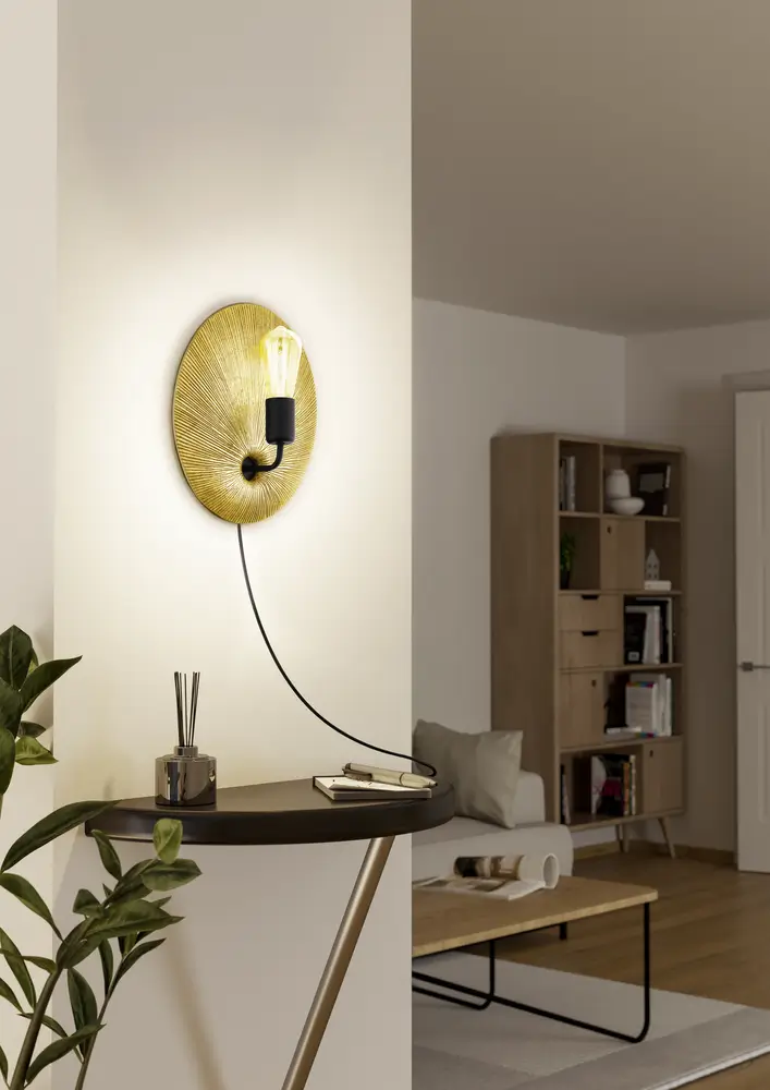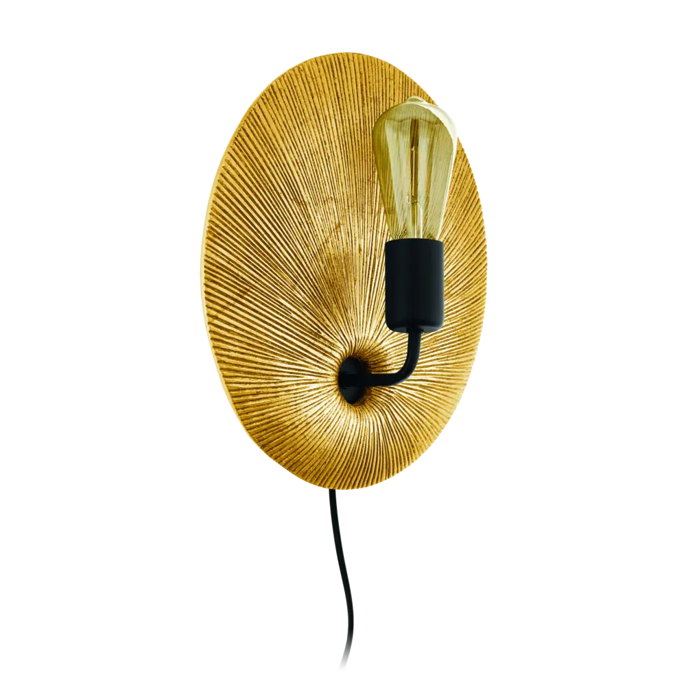 Gascueria98379 1‑Light Wall Light – Gold Plastic & Black Steel, E27 Socket, In-Line Switch Cable, 290×330mm, IP20 Indoor, 2‑Year Warranty