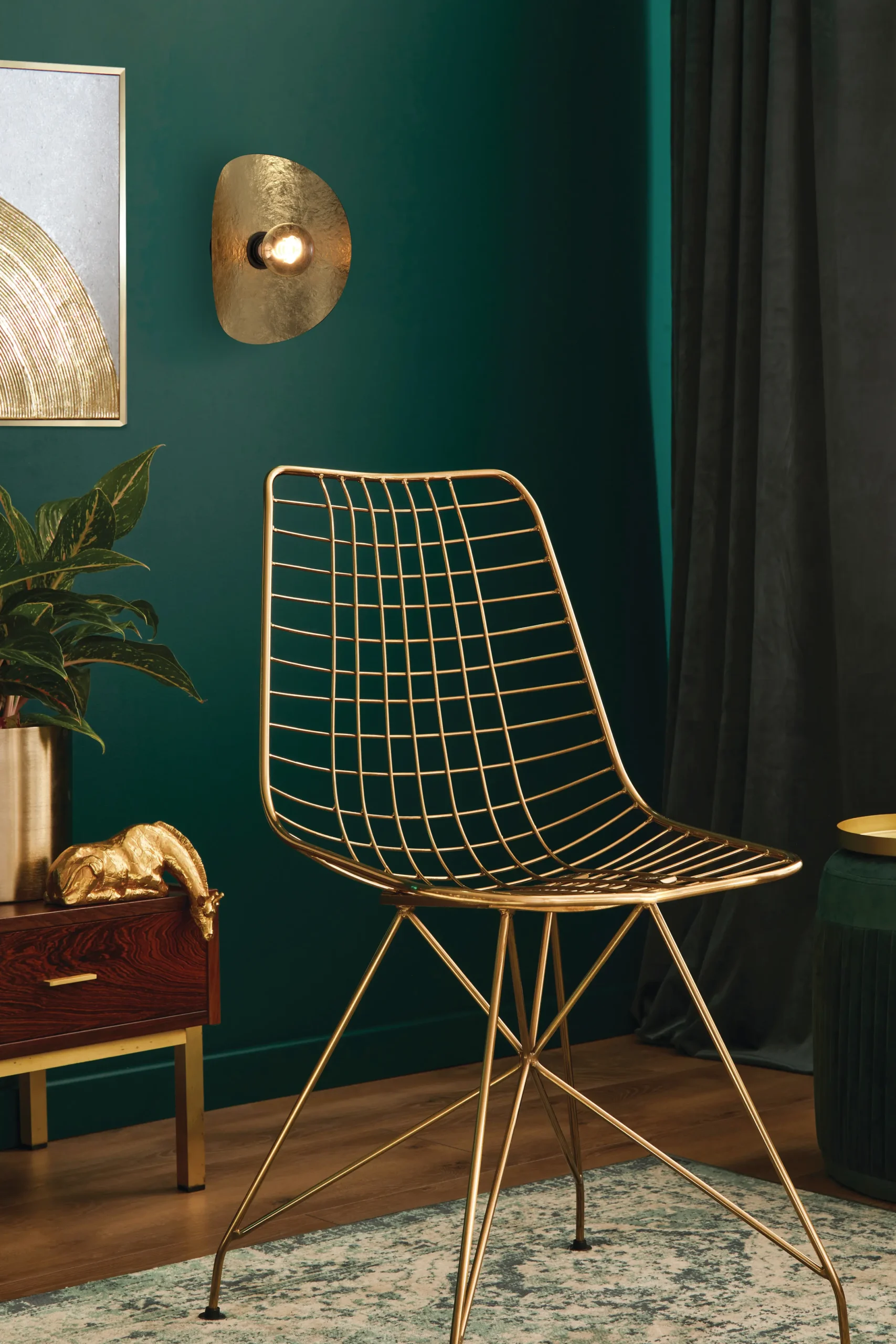 Luxury Crafted Materials: High-quality steel with gold-leaf finishing inside shade for durability and luxe aesthetic.