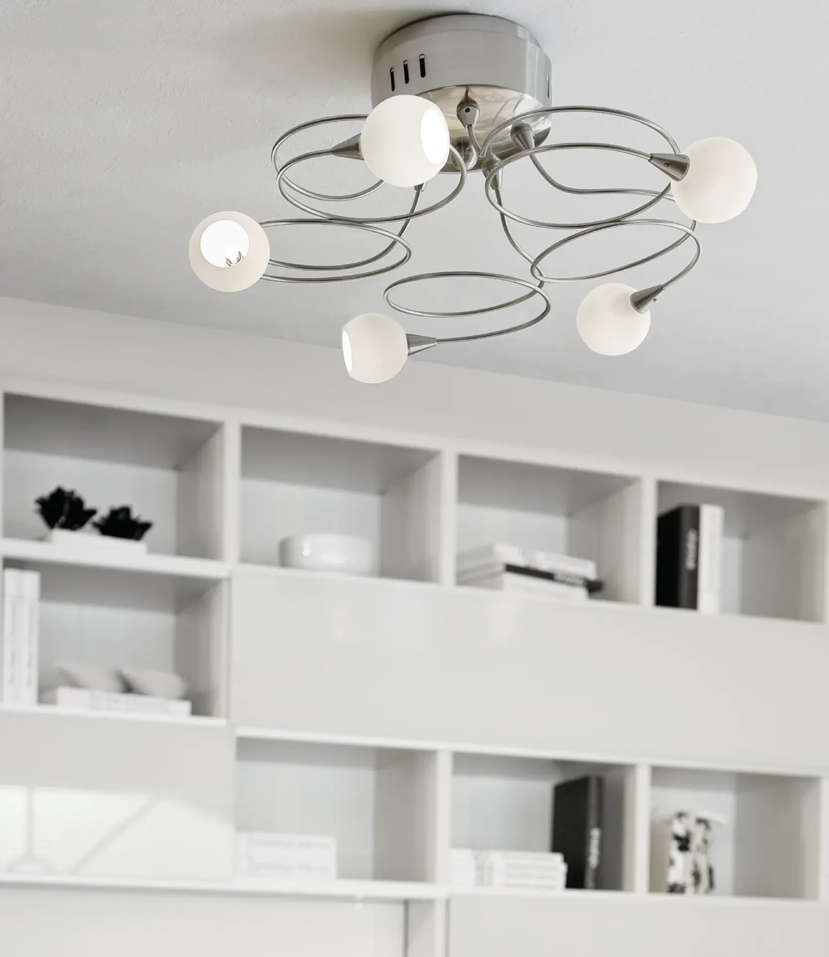 Modern Satin Nickel Design: Crafted with a durable satin nickel steel frame complemented by refined white opal glass shades, adding a stylish and sophisticated touch to any interior décor.