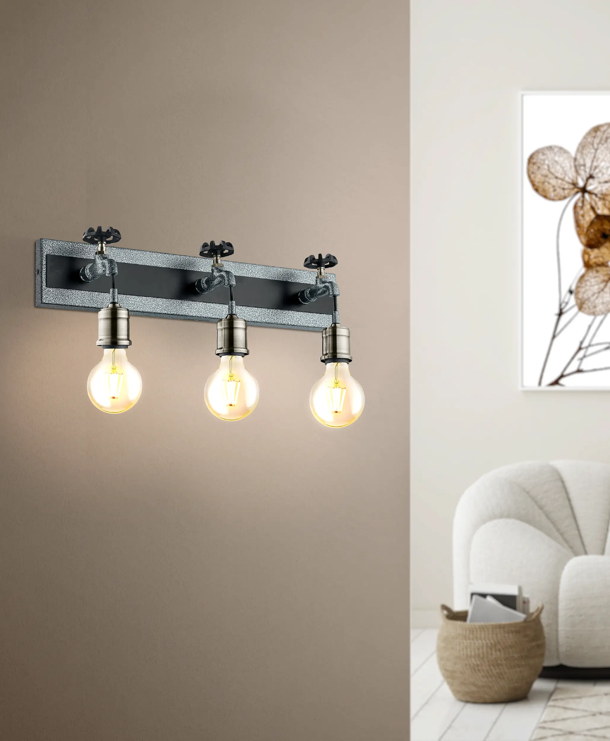 Bulb compatibility – Fitted with 3× E27 sockets, each supporting up to 60W incandescent or LED bulbs (bulbs not included).