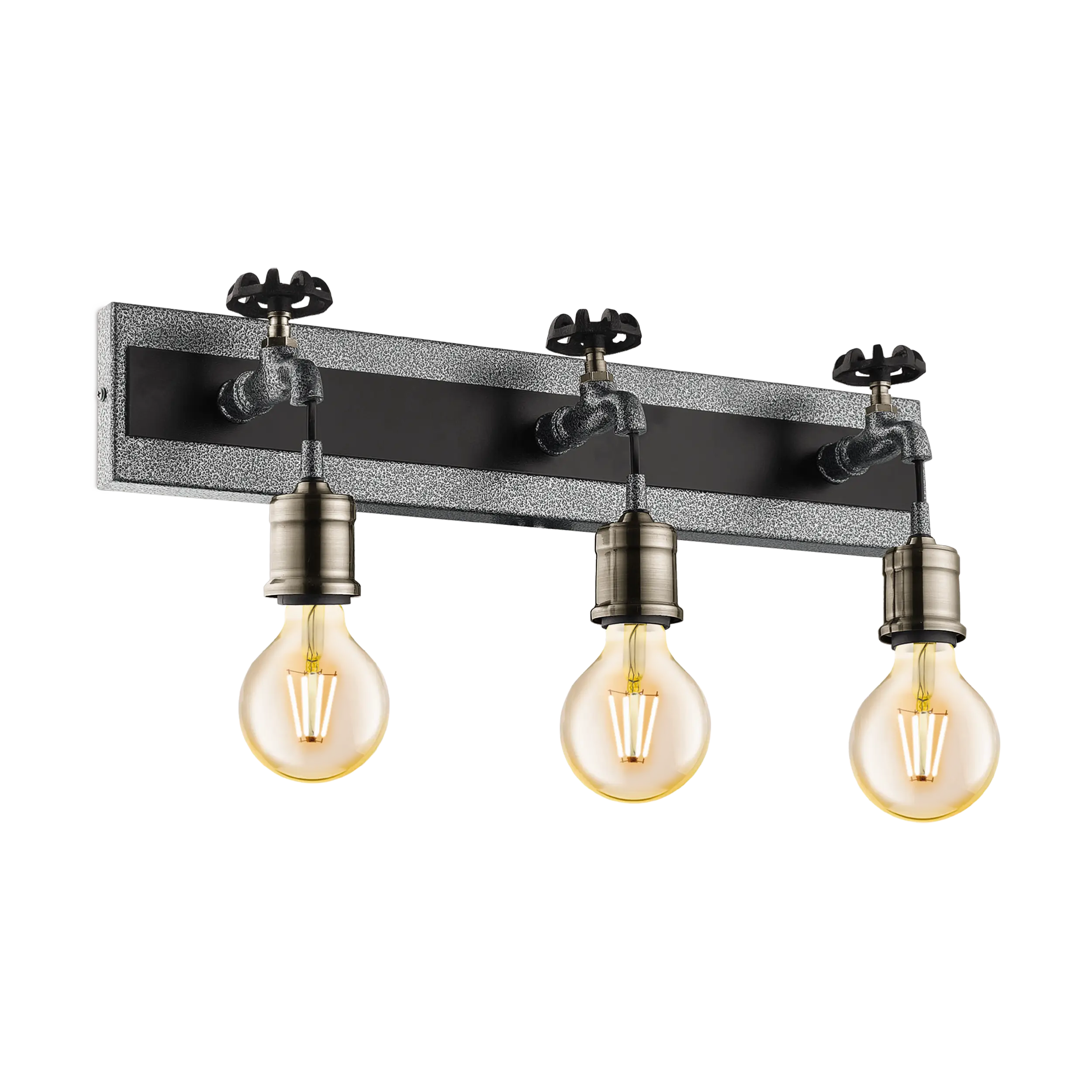 Classic vintage-industrial wall lamp – Combines wood and silver‑antique finish steel in a three‑bulb design (model49103 GOLDCLIFF).