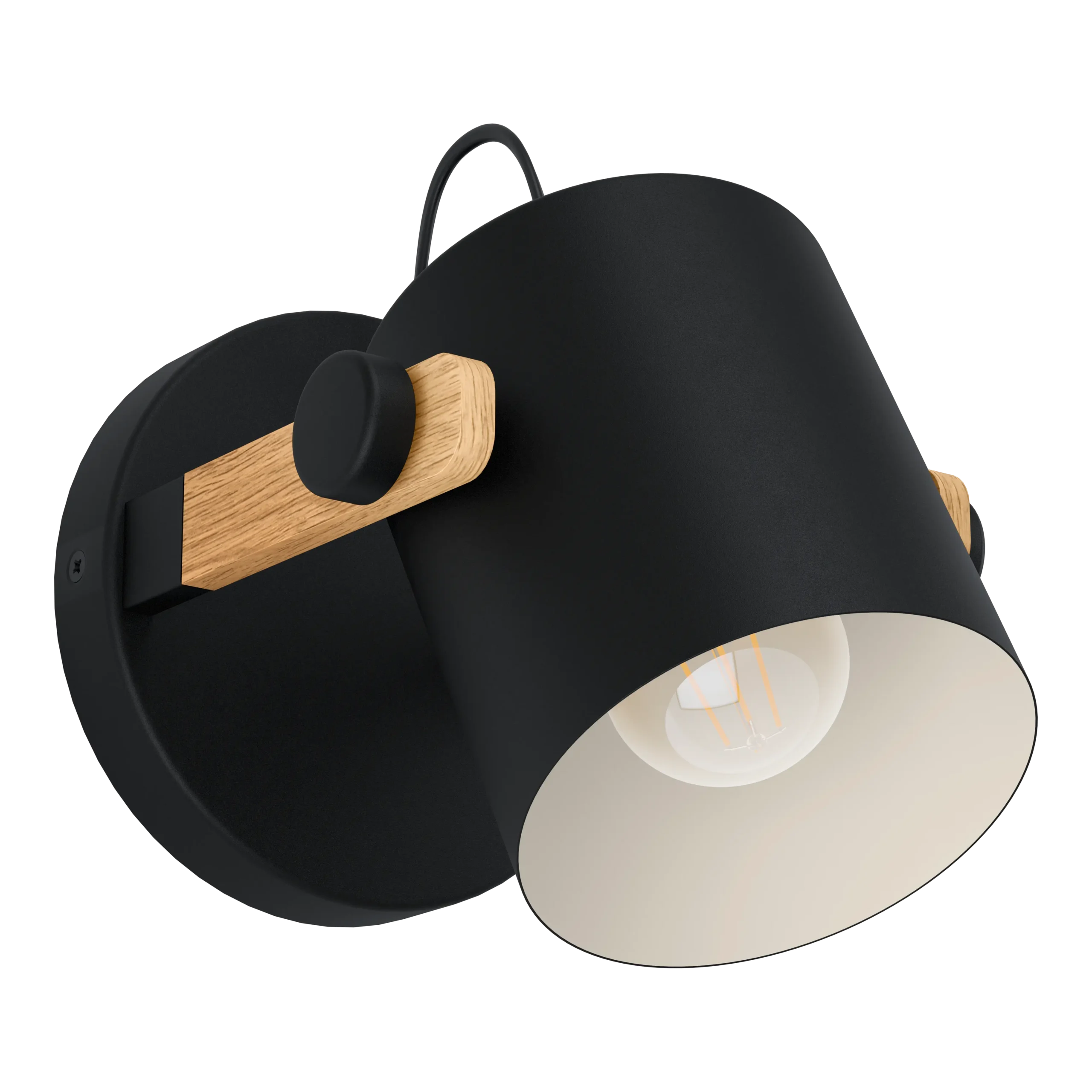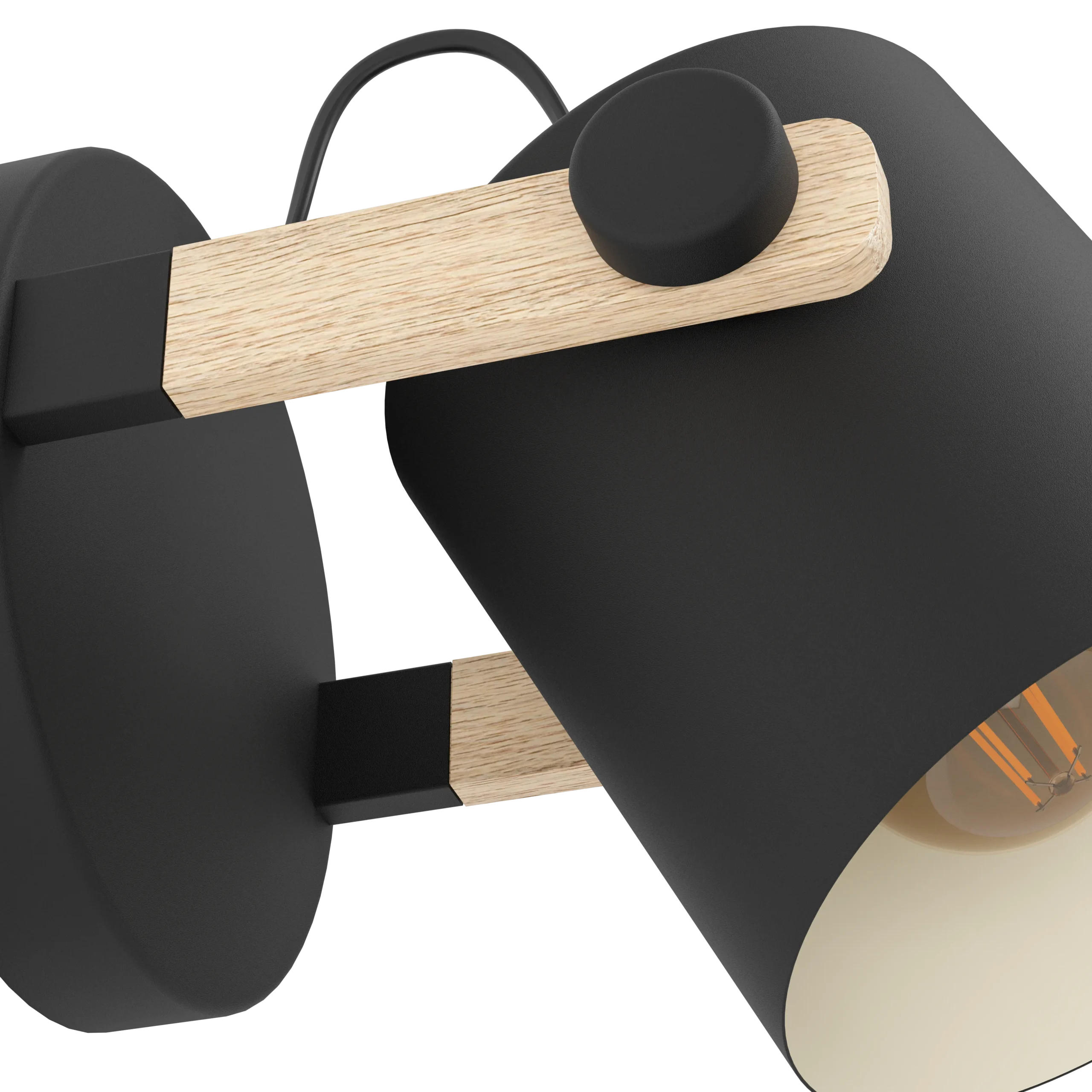 HORNWOOD Wall Light – Black Steel & Wood Shade – 1×E27 Socket – Ø17cm × Height 17cm – IP20 – Vintage Adjustable Accent Light