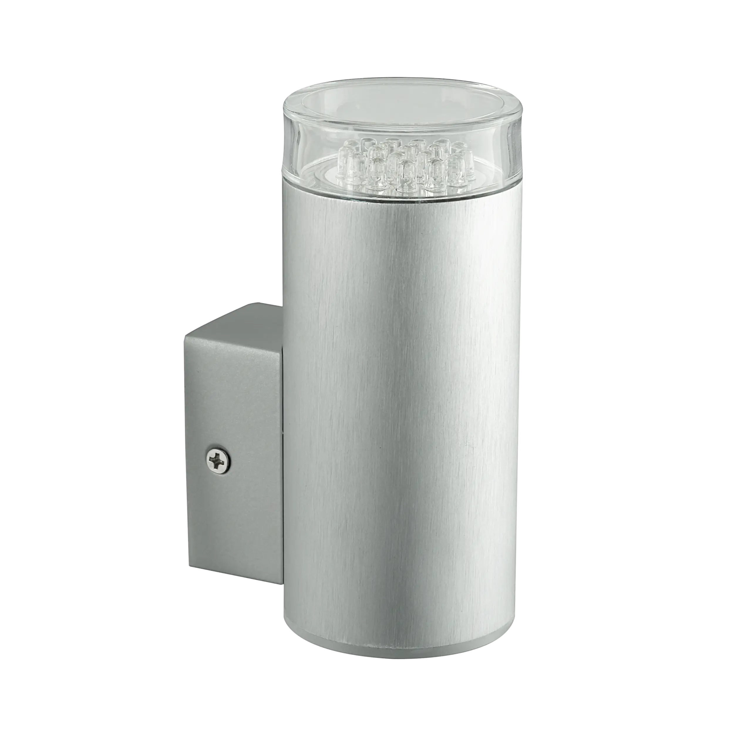 The LOCA wall light showcases a sleek brushed aluminium finish paired with a clear plastic shade, offering a minimalist look that complements contemporary interiors.