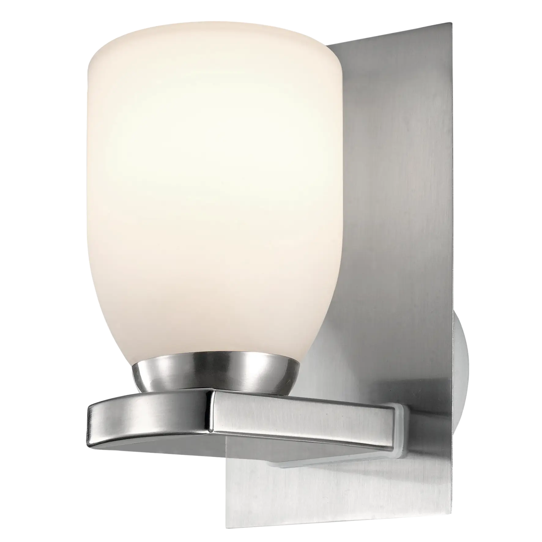 The PALERMO wall light combines a refined satin nickel steel finish with white matte-opal glass, offering a clean and modern design ideal for contemporary bathrooms.